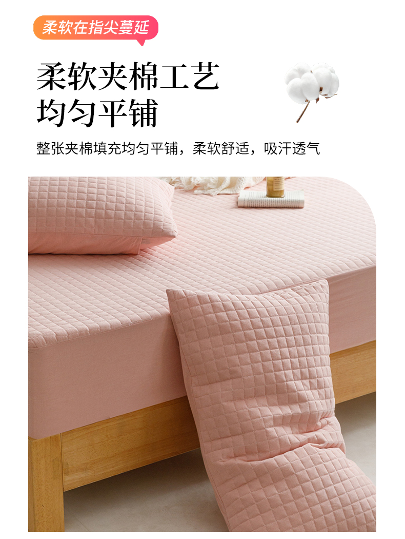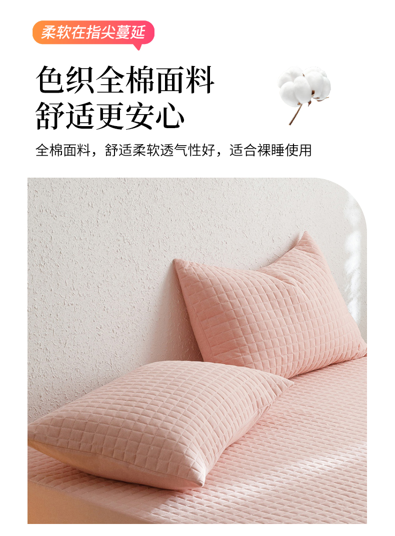 (总)忘忧草 2025新款A类针织棉夹棉防水床笠隔尿垫床罩,淡雅白,豆沙红,翡翠绿,丽人粉,浅米黄,绅士灰