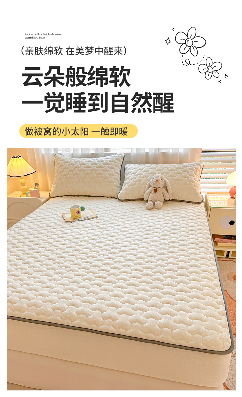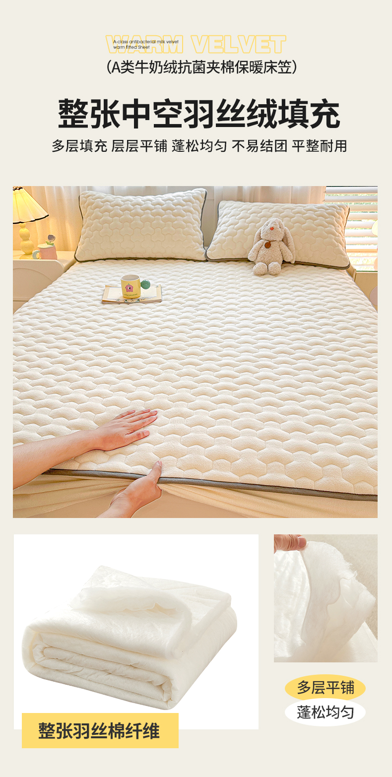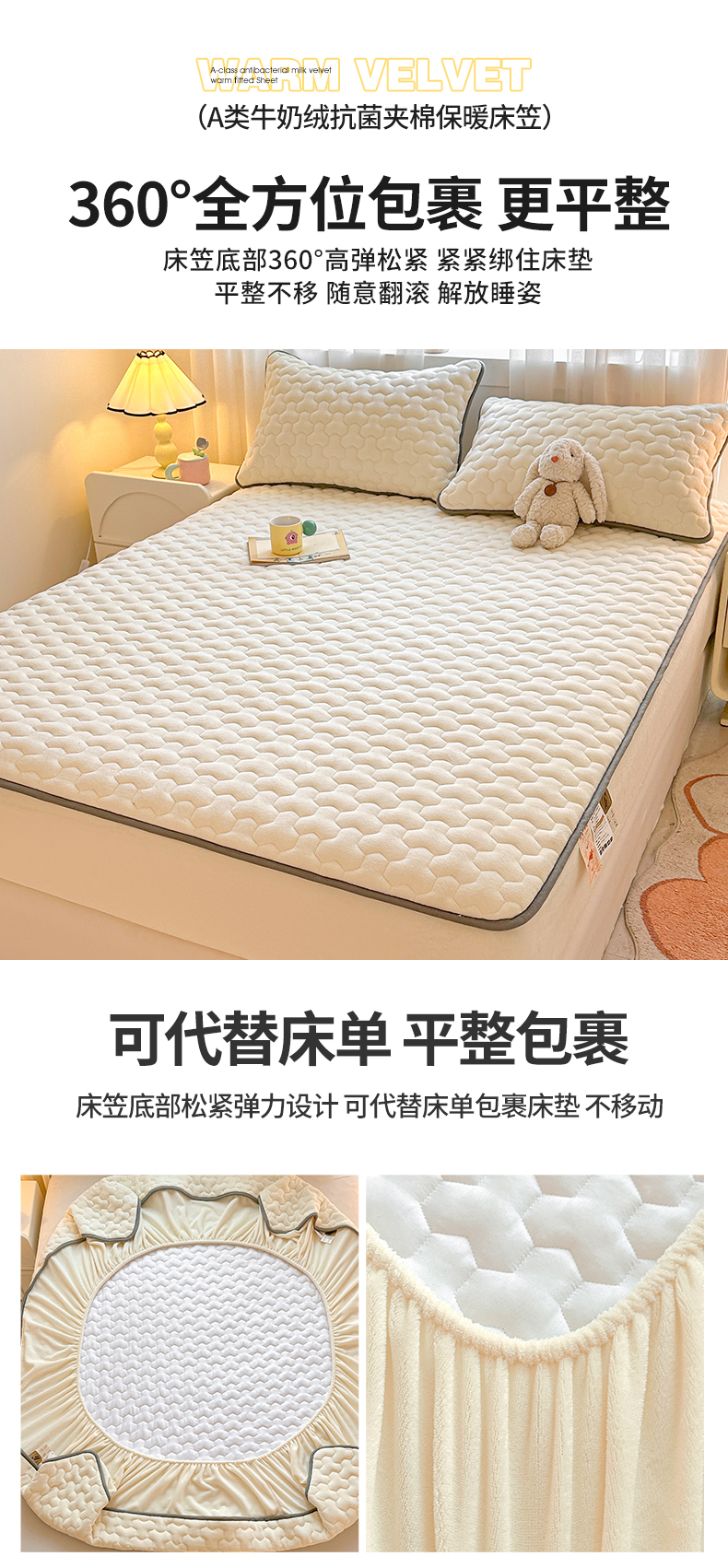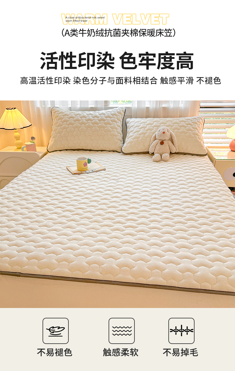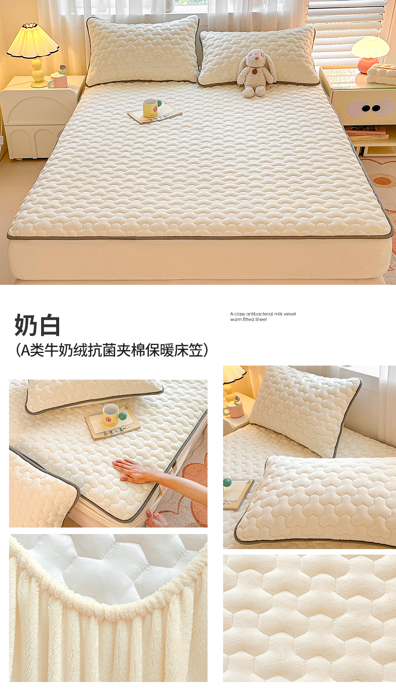 商品名称:曼之夏 2024新款A类牛奶绒抗菌夹棉保暖床笠 奶白