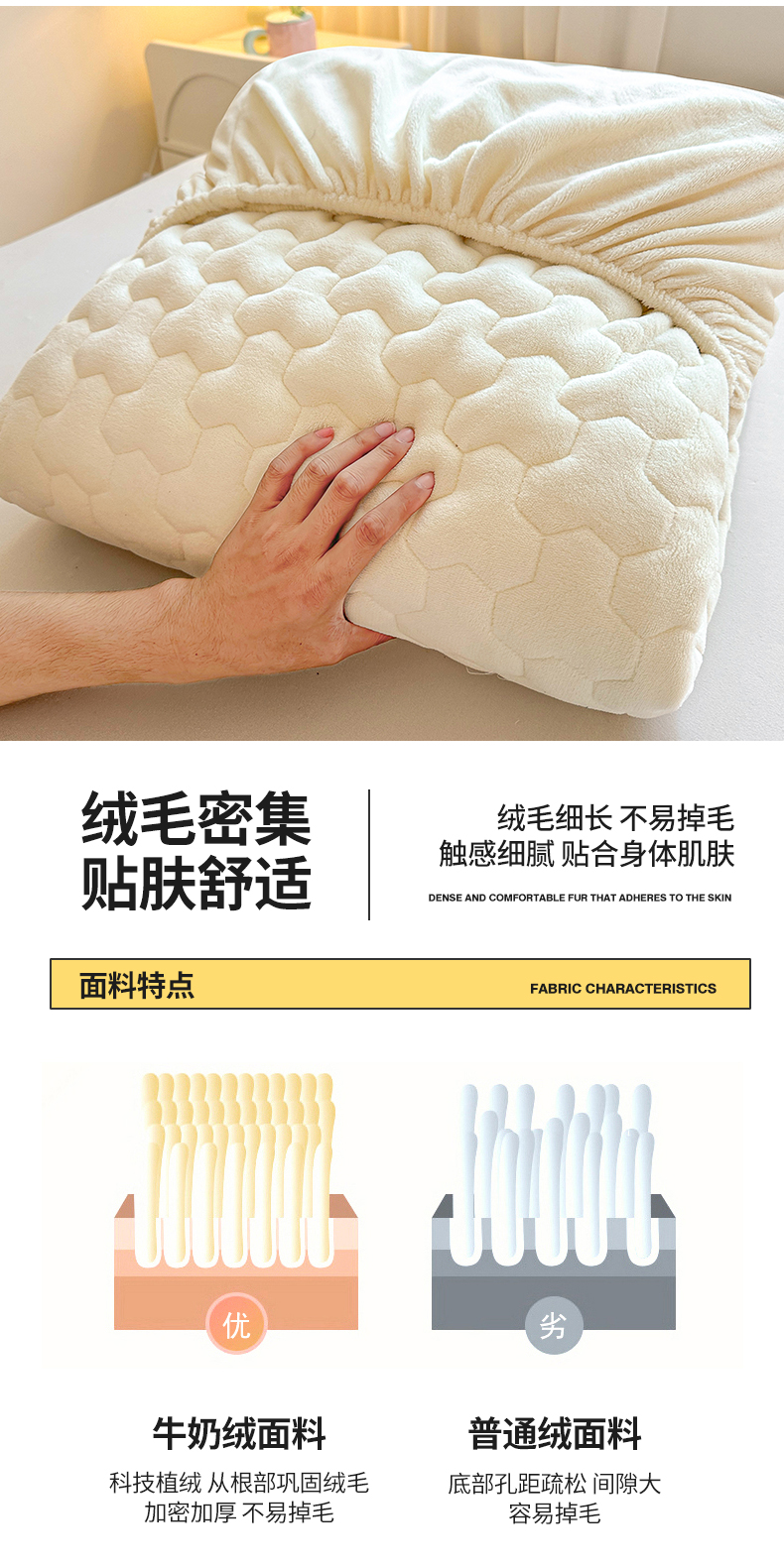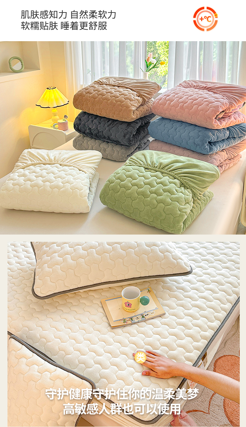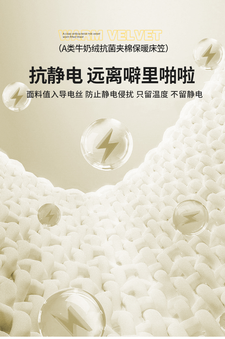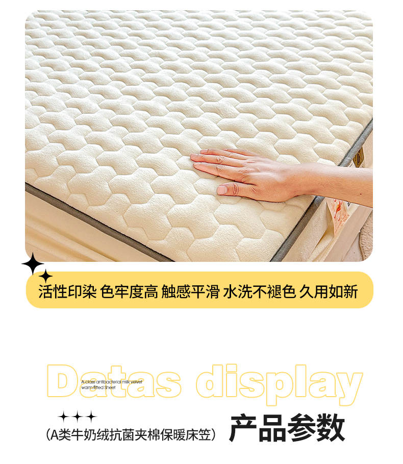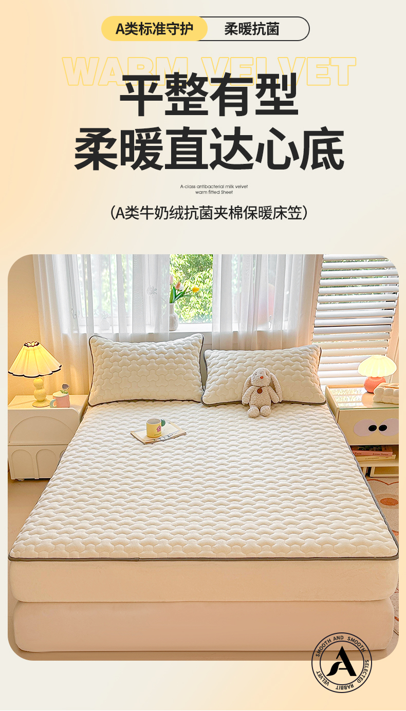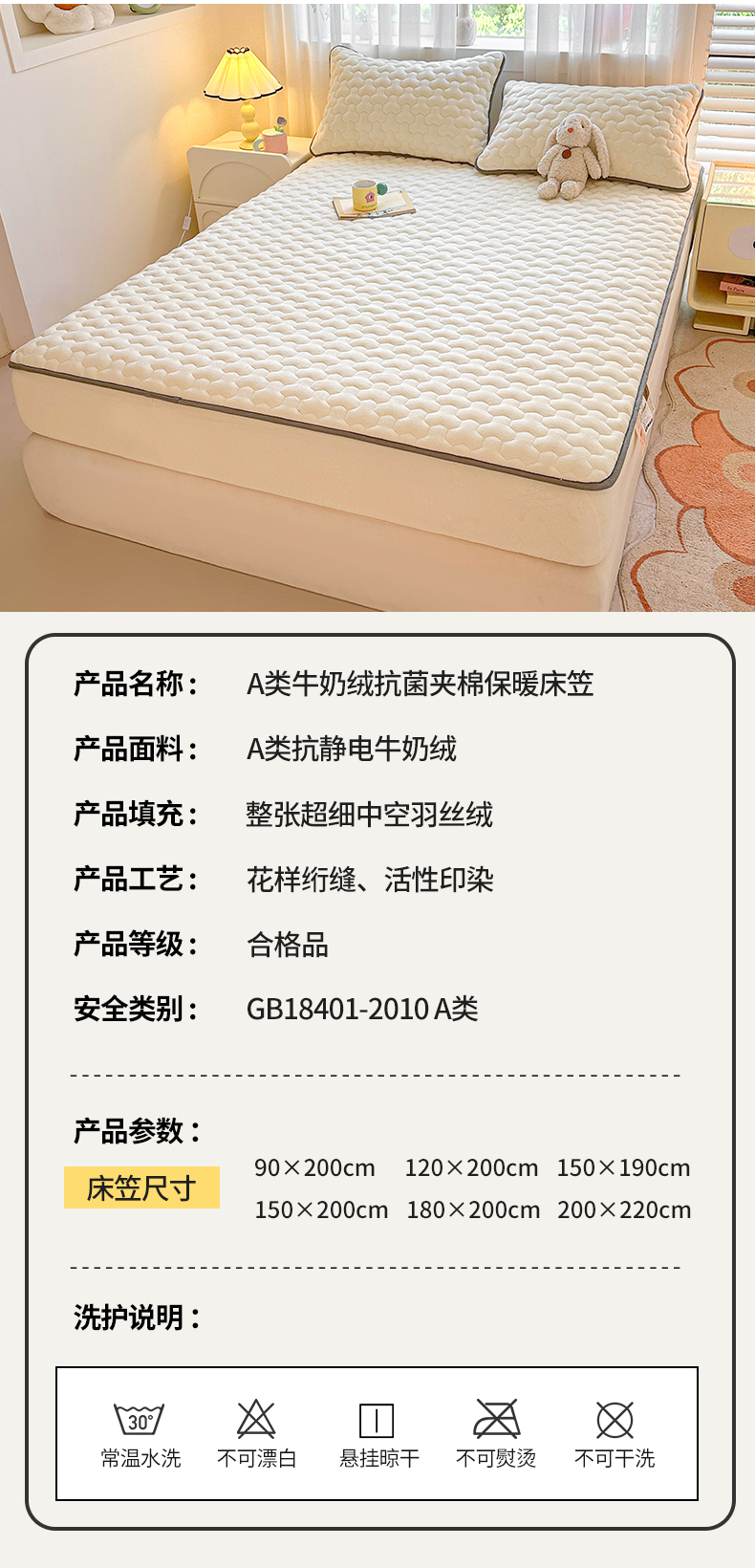 商品名称:曼之夏 2024新款A类牛奶绒抗菌夹棉保暖床笠 奶白