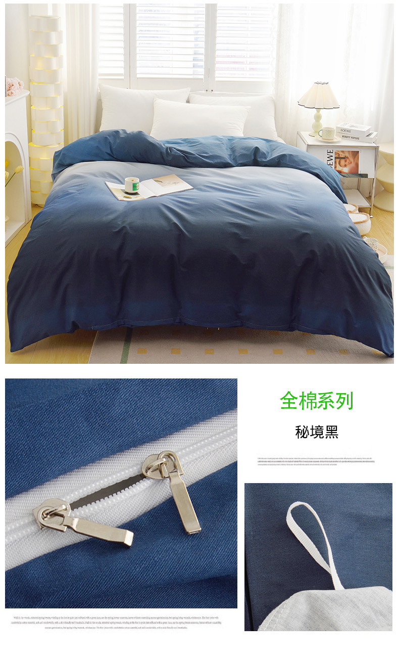(总)启优家纺新款全棉渐变色四件套纯色床笠款四件套,秘境-粉,秘境-黑,秘境-灰,秘境-桔,秘境-绿,星河-绿