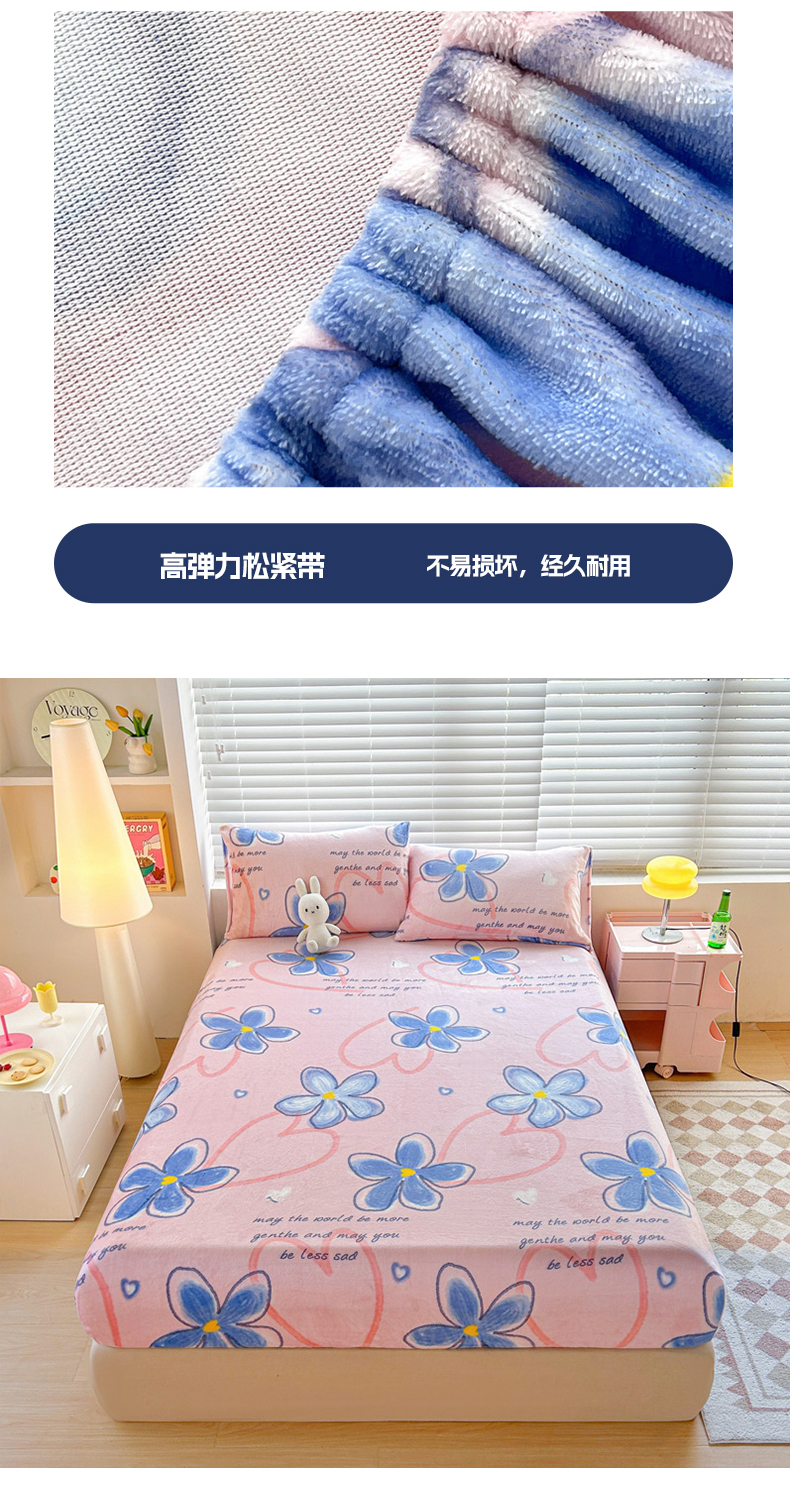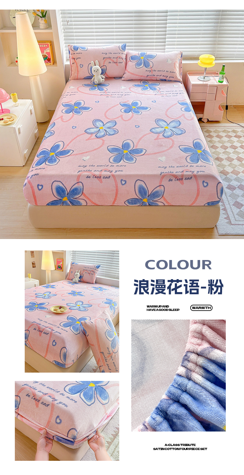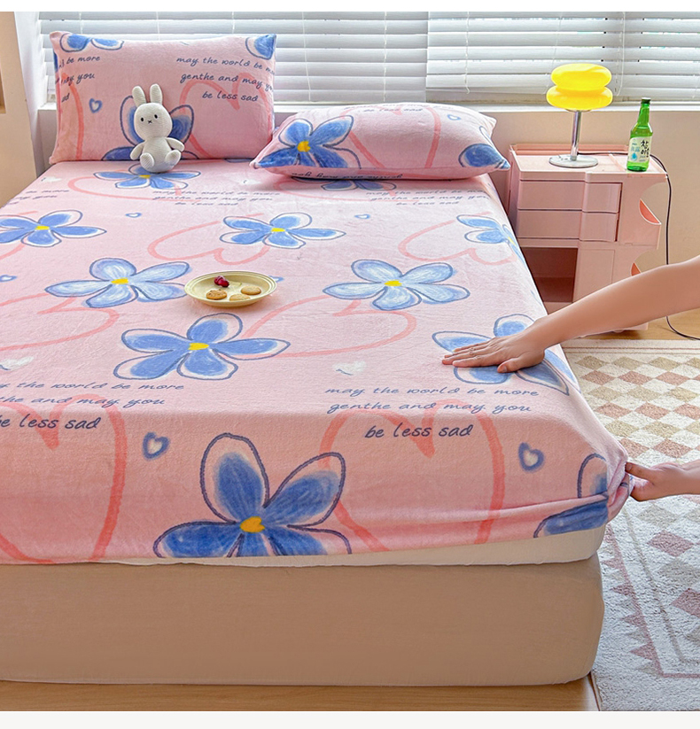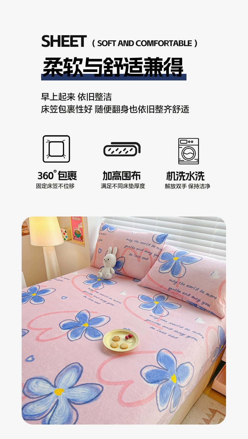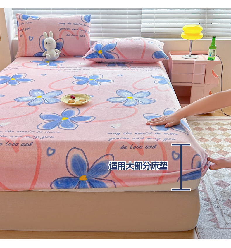 商品名称:芯元素 2024新款牛奶绒印花床笠 浪漫花语-粉