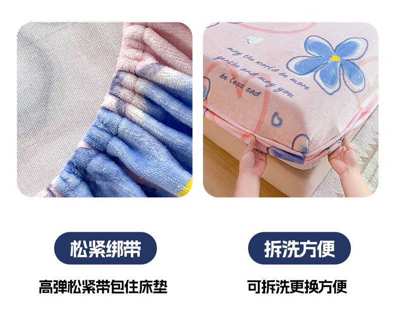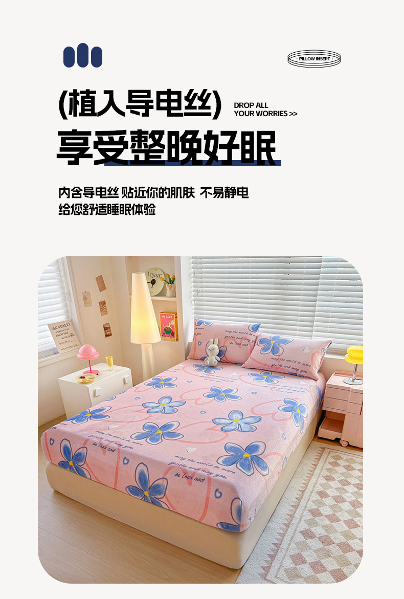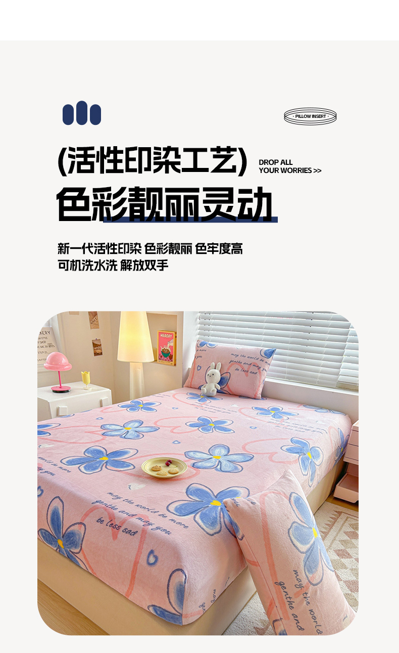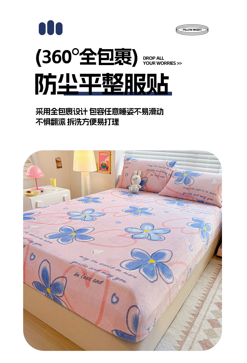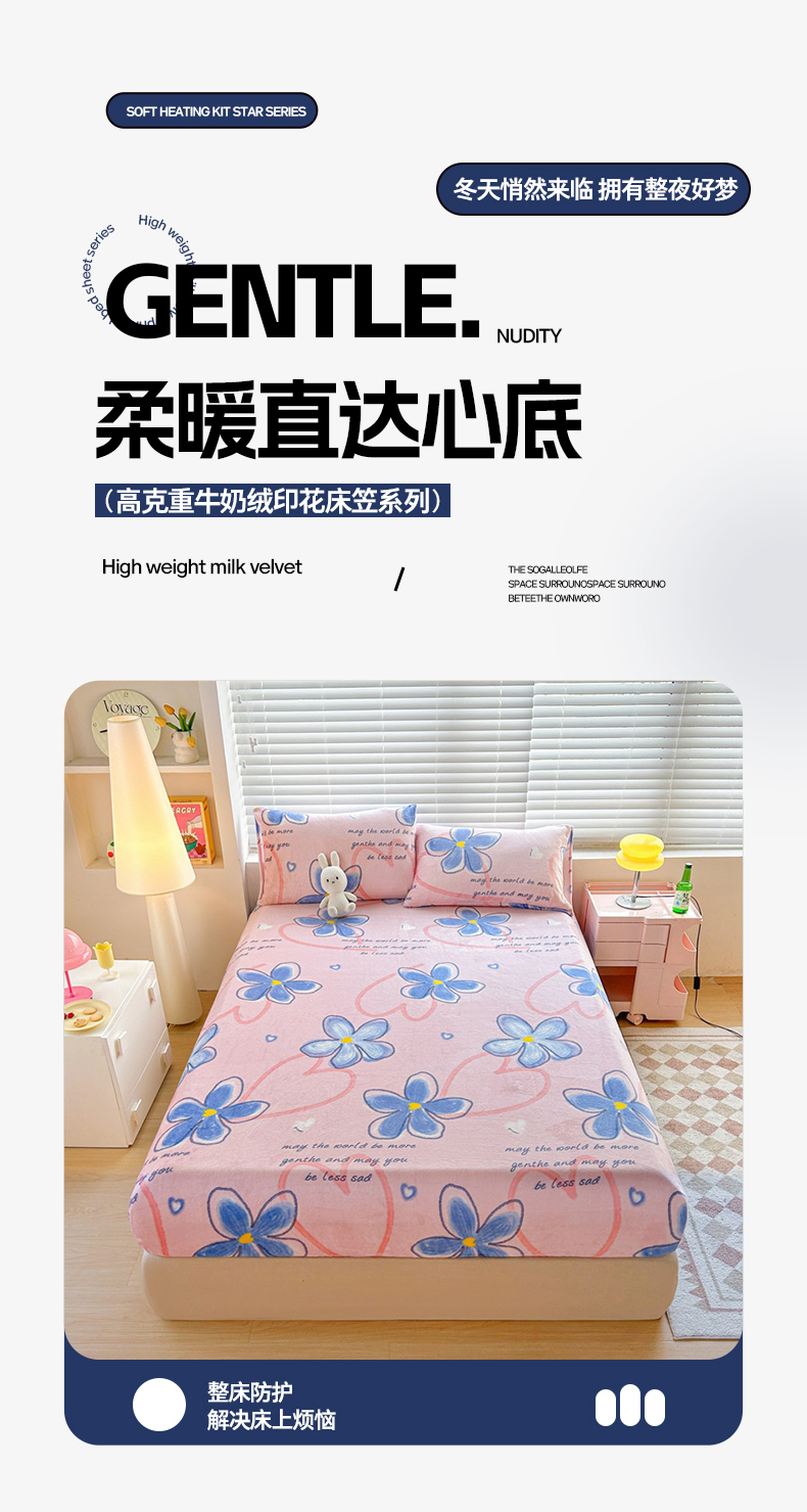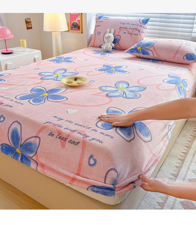 商品名称:芯元素 2024新款牛奶绒印花床笠 浪漫花语-粉