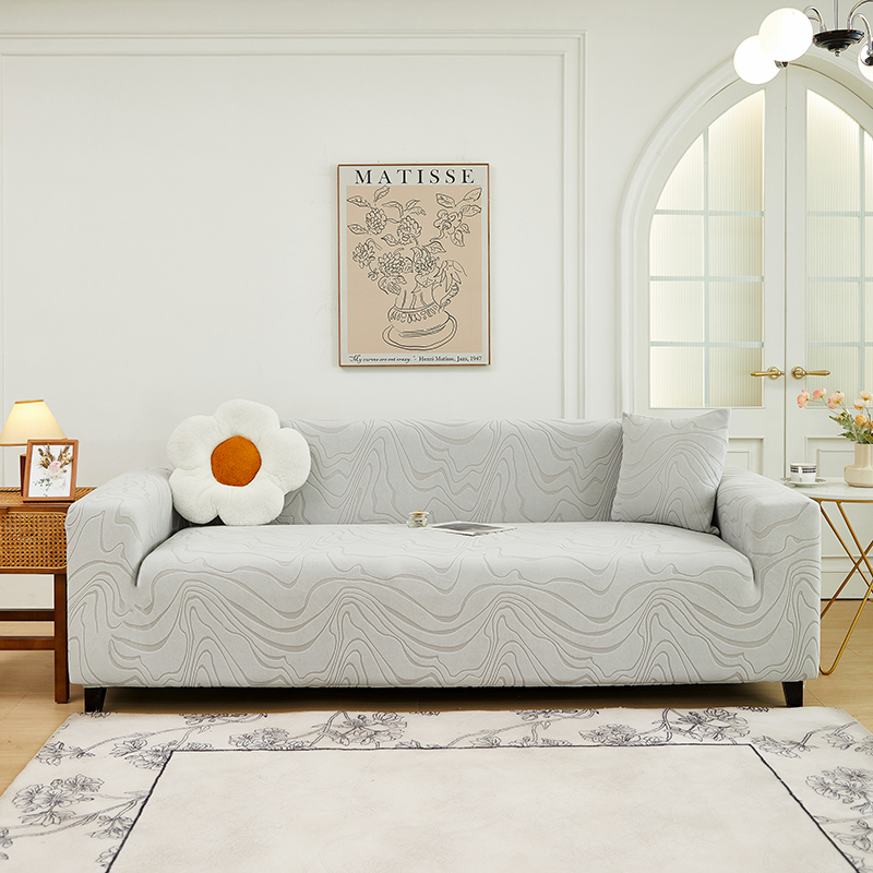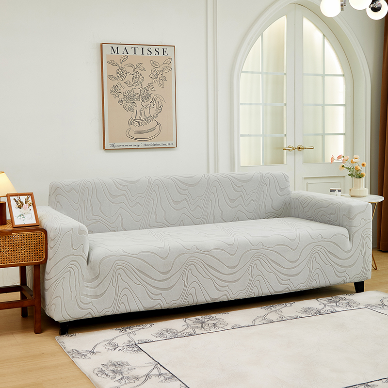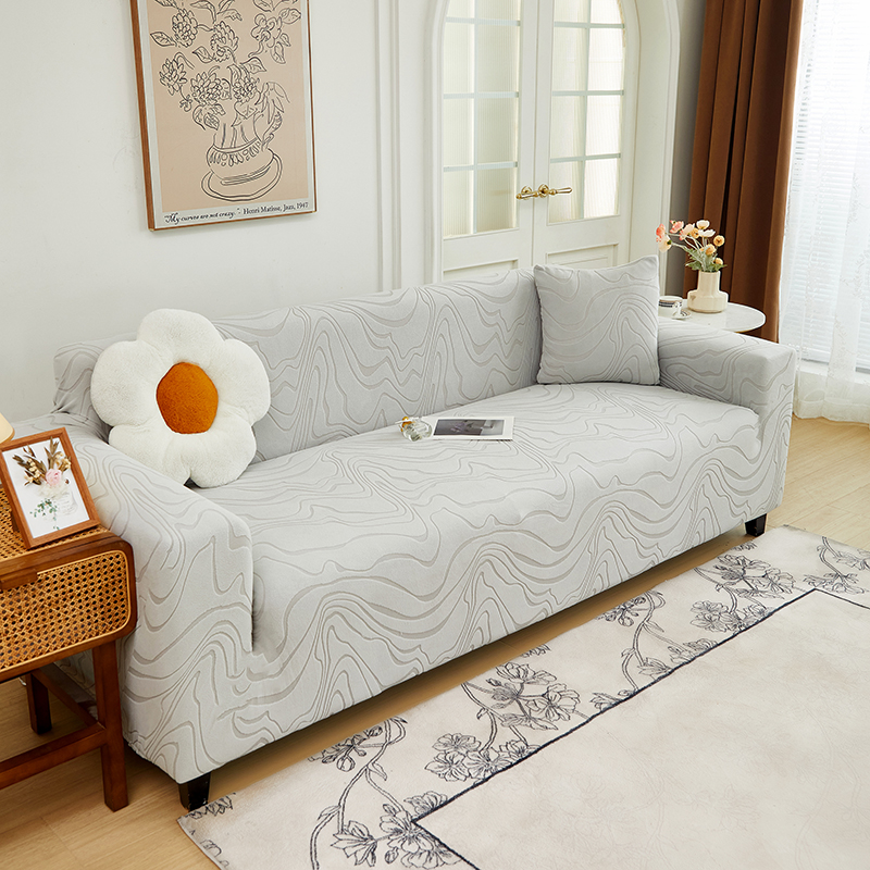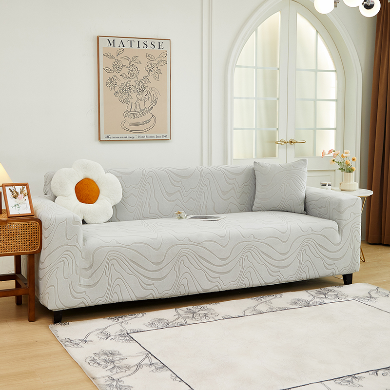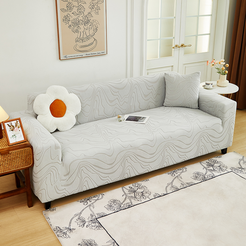 丝绮鹿 2024新款曲意松紧款沙发套(三人图) 浅灰