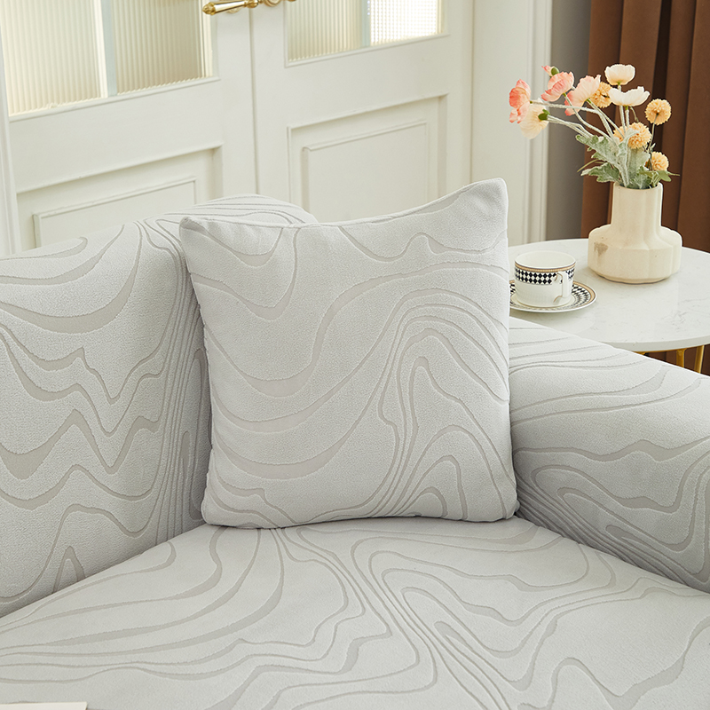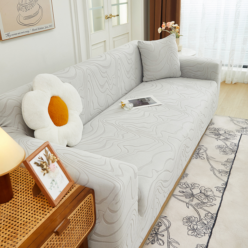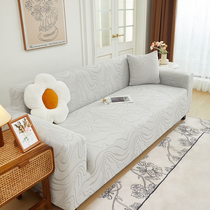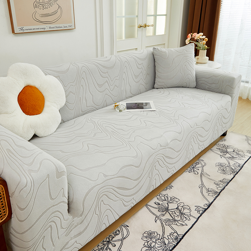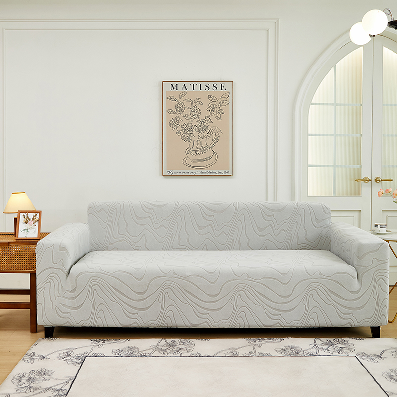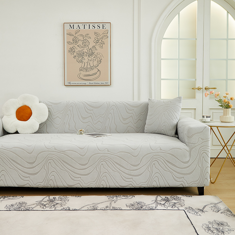 丝绮鹿 2024新款曲意松紧款沙发套(三人图) 浅灰