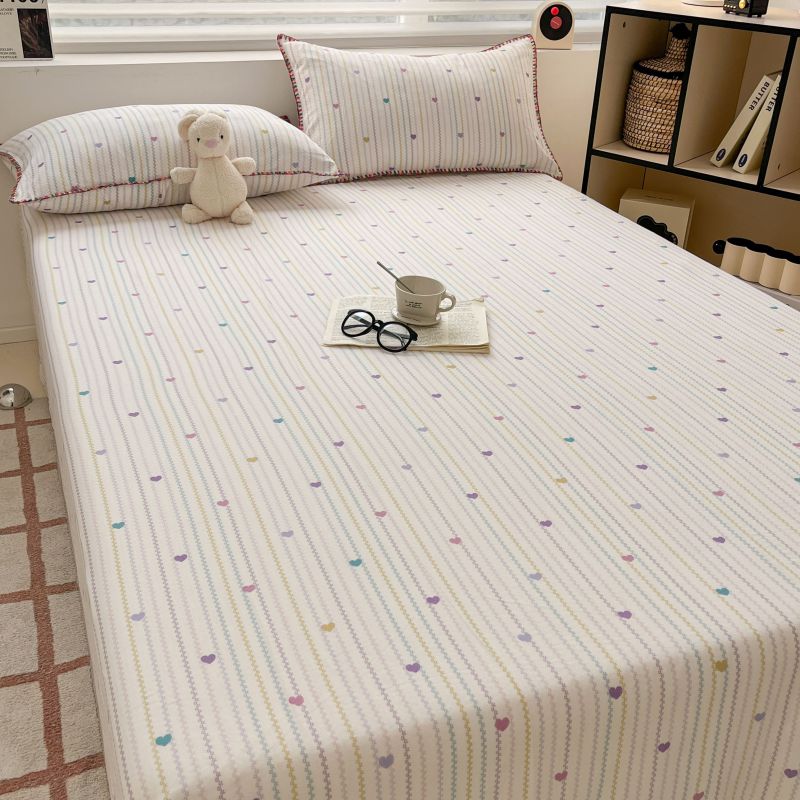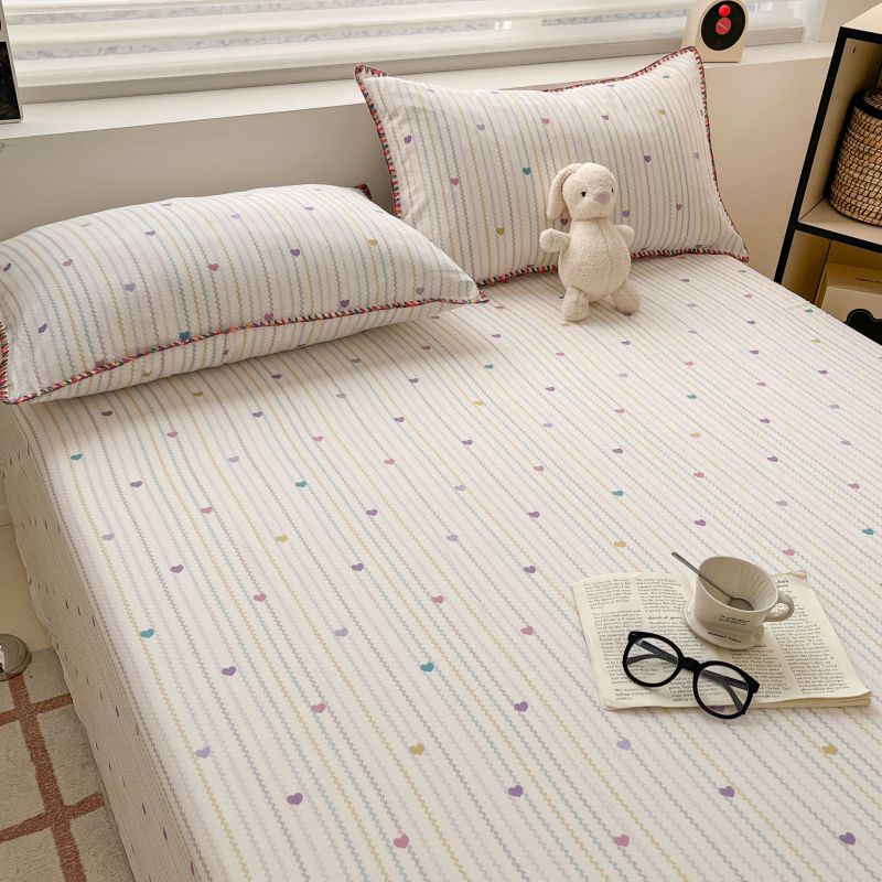 (买家秀 不断货)A类母婴级全棉纯棉床单纯棉全棉床笠双层纱床笠床罩卡通床笠儿童床垫套保护罩--单床笠 彩条爱(床笠)