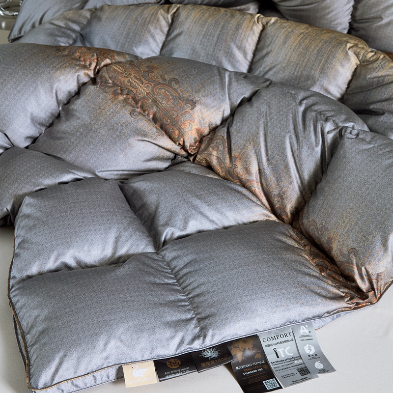 (总)御眠纺羽绒被壳 2024新品高端糯糯棉印花羽绒被鹅绒被冬被春秋被被子被芯,沐浴灰金,沐浴奶白