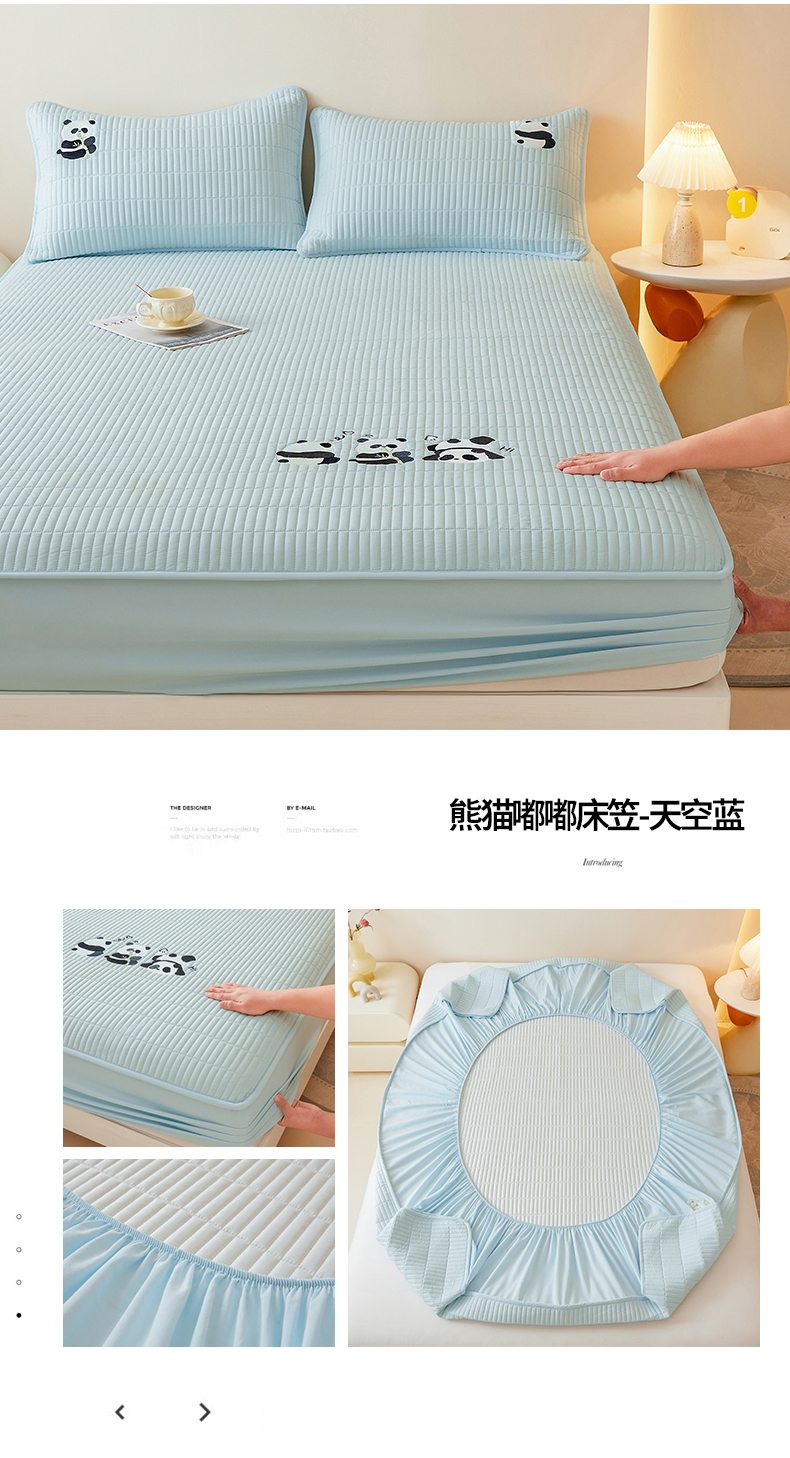 雅萱家纺 2025新款A类亲肤绣花大豆床笠-熊猫嘟嘟 熊猫嘟嘟床笠-天空蓝
