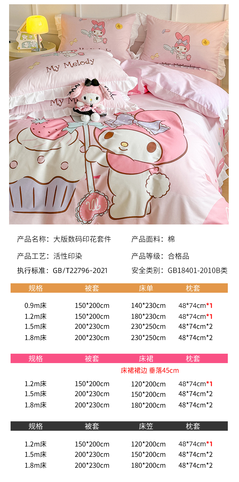 商品名称:(总)玉元坊 2025年新款三丽鸥系列数码印花纯棉全棉床裙三件套四件套-花边款式