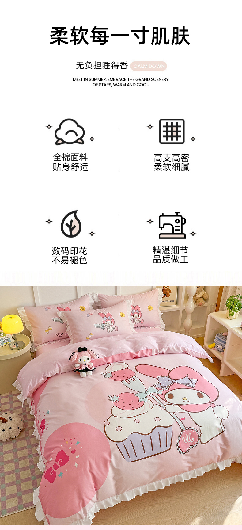 (总)玉元坊 2025新款正版授权三丽鸥系列全棉纯棉三四件套 基础款,蛋糕美乐蒂-基础款,粉兔草莓-基础款,粉兔亲亲-基础款,糖果美乐蒂-基础款,甜品美乐蒂-基础款,甜筒美乐蒂-基础款,甜心美乐蒂-基础款,玩偶美乐蒂-基础款,星黛美乐蒂-基础款