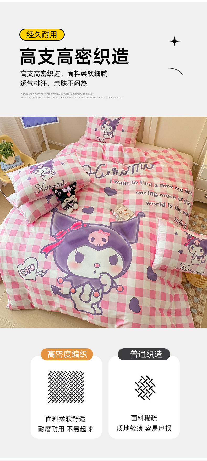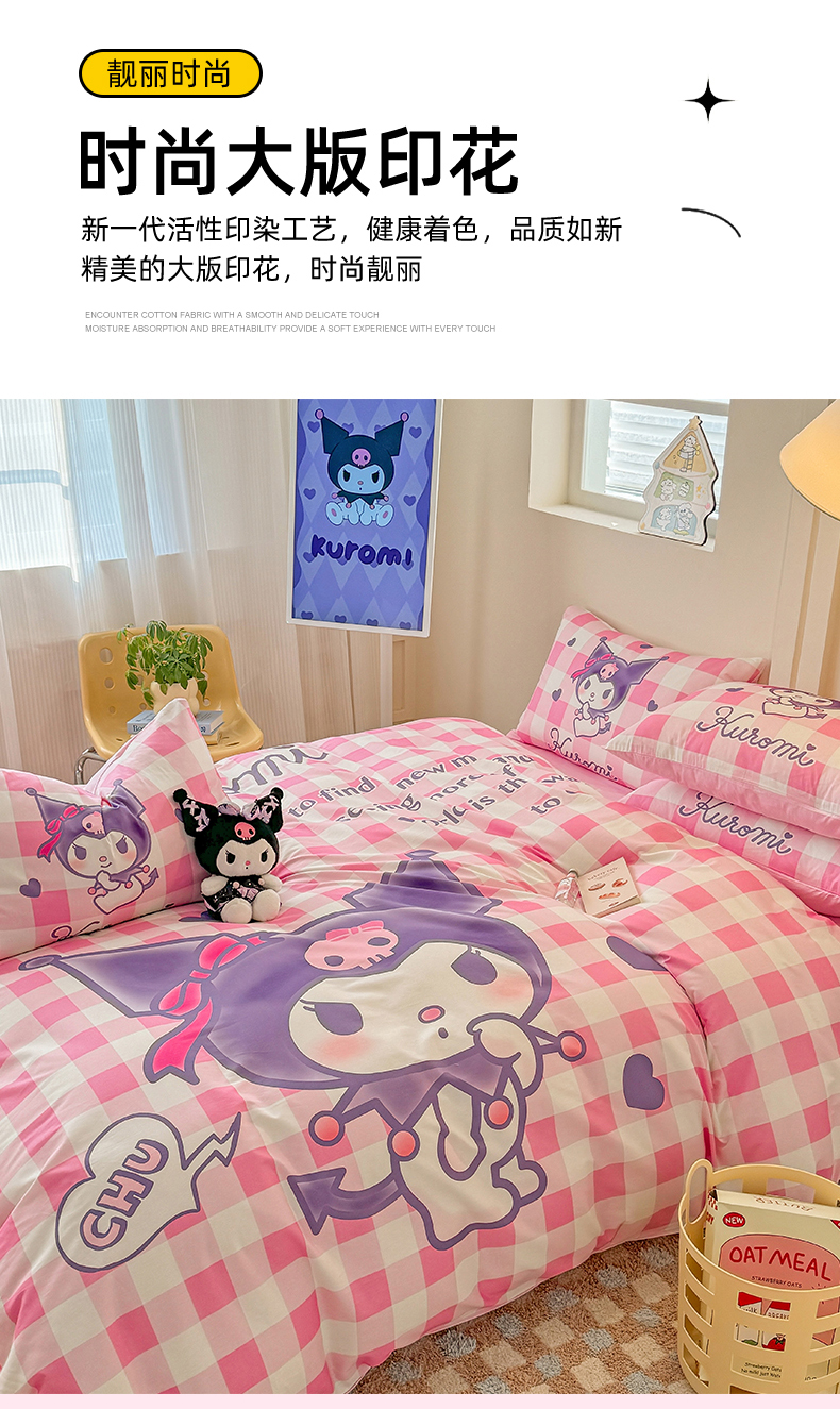 当前位置: 91家纺网 > 商品网购 > 床品套件 > 四件套 > 全棉普通四件套 > 玉元坊 2025年新款三丽鸥系列数码印花纯棉全棉床裙三件套四件套-简约基础款 大版简约-格子库洛米