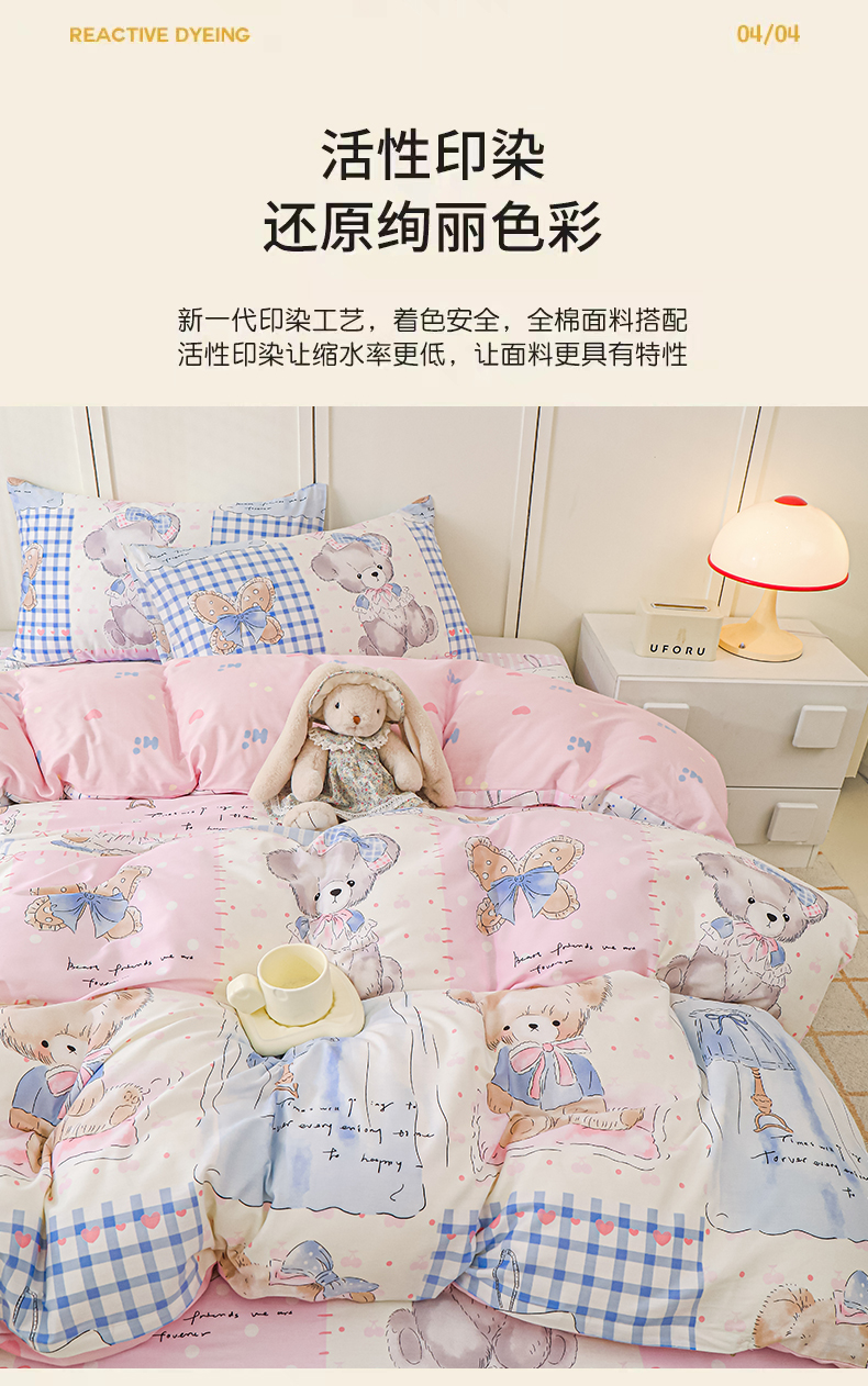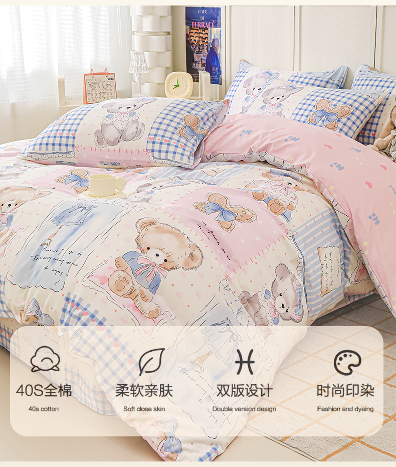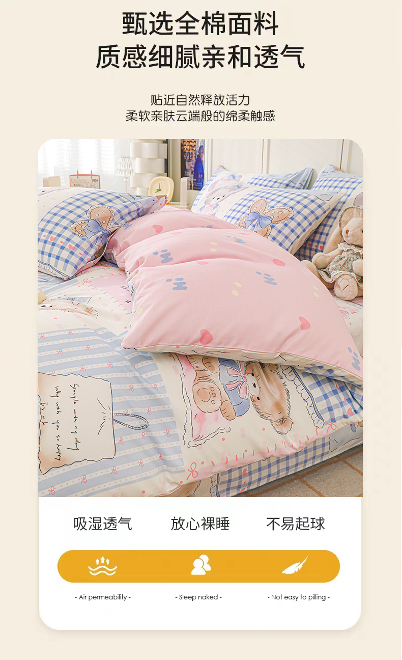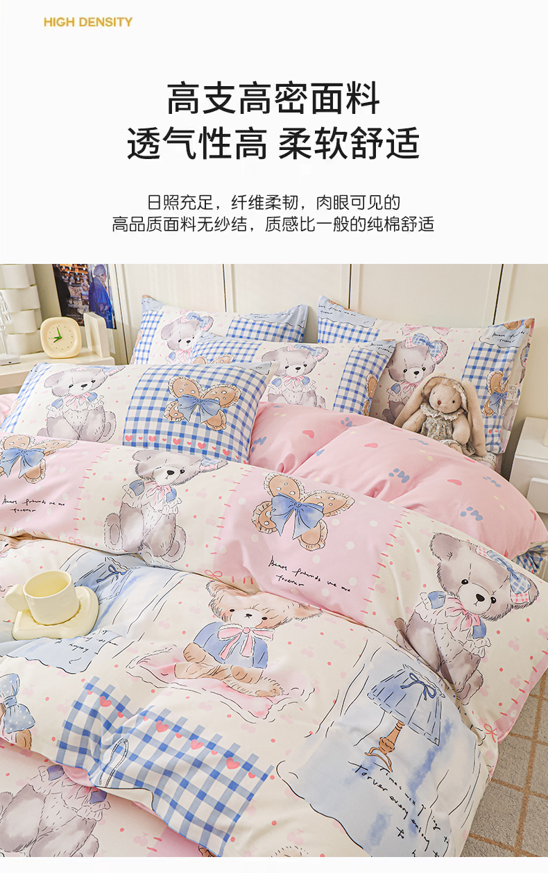 当前位置: 91家纺网 > 商品网购 > 床品套件 > 四件套 > 全棉普通四件套 > 金鑫汇家纺 2025新款全棉印花四件套 熊熊精灵