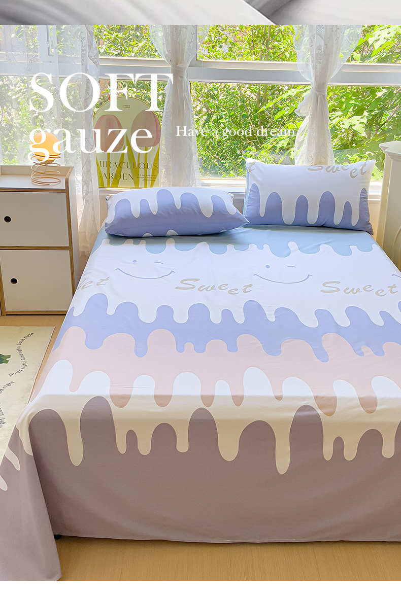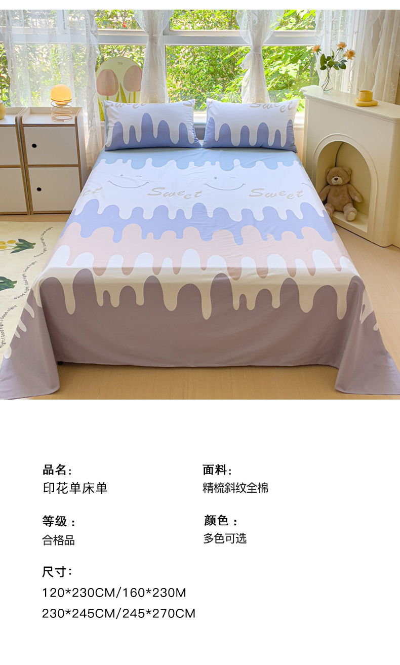 (总)金鑫汇家纺 2026新款全棉印花小清新单品床单系列-可露丽,海盐可露丽,浅咖可露丽,浅绿可露丽,月下花影-桔,月下花影-蓝,月下花影-绿