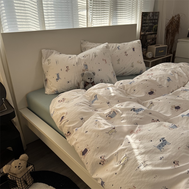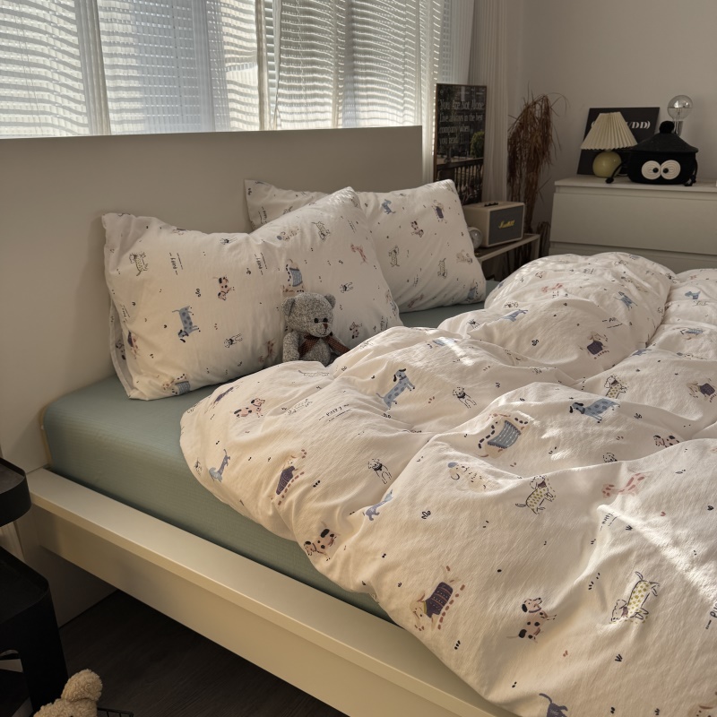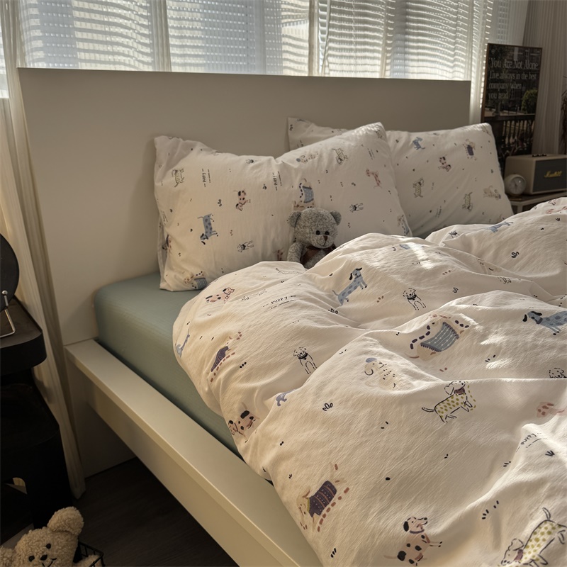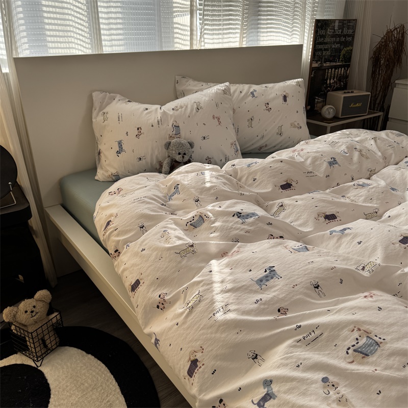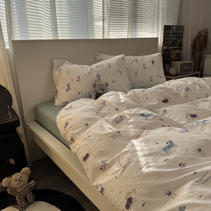 当前位置: 91家纺网 > 商品网购 > 床品套件 > 四件套 > 双层纱四件套 > 奈颜 2025新款云感双层纱爆款裸睡四件套-实拍图 提供买家秀 狗狗派对