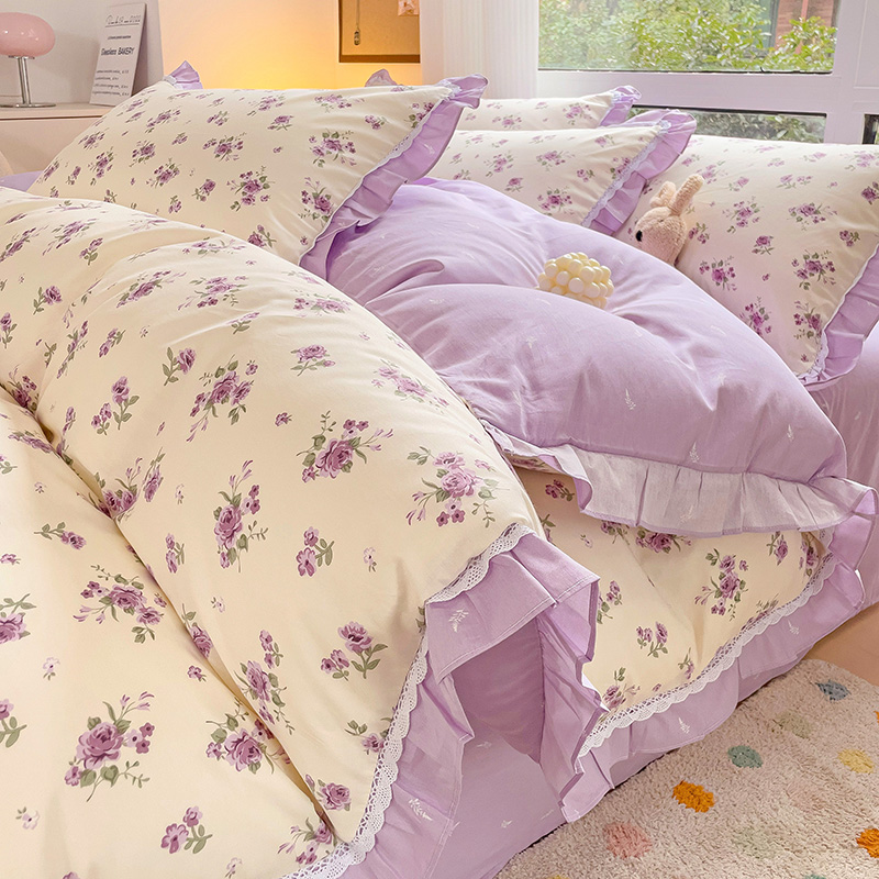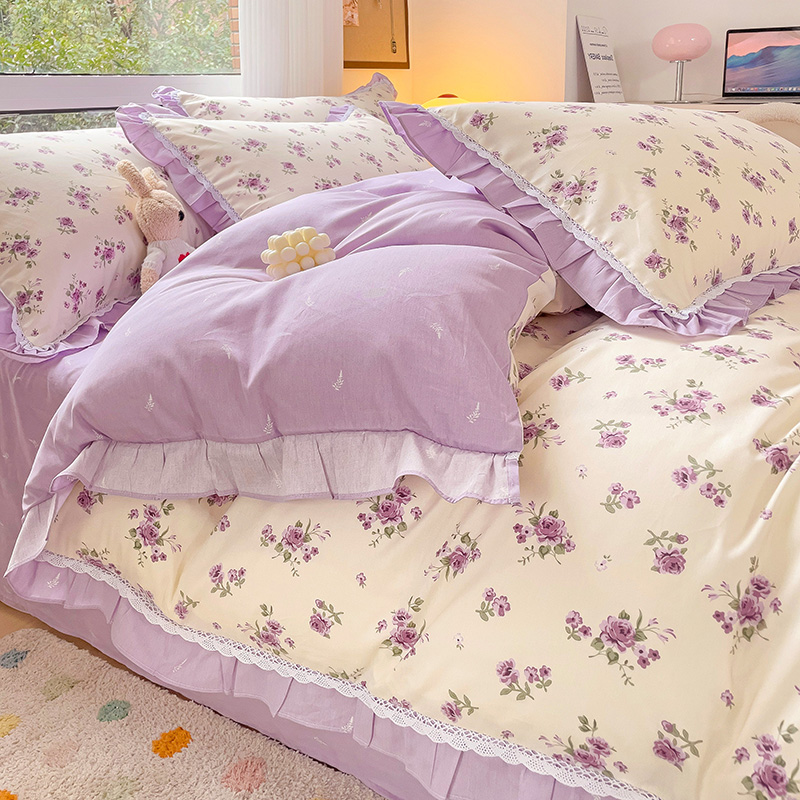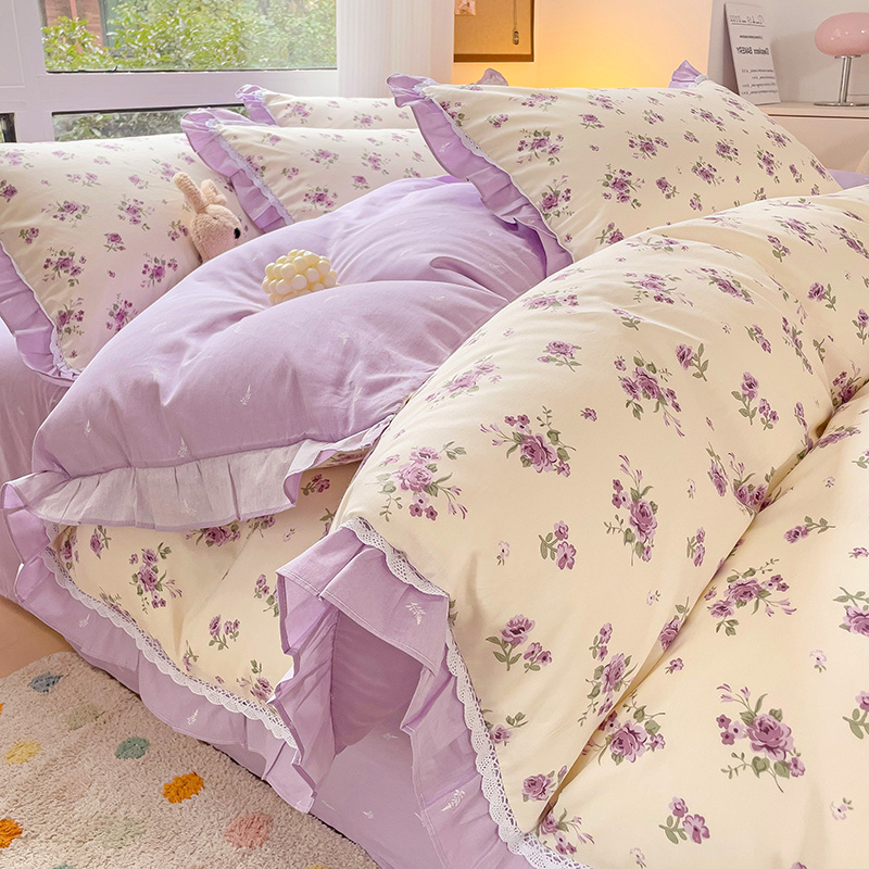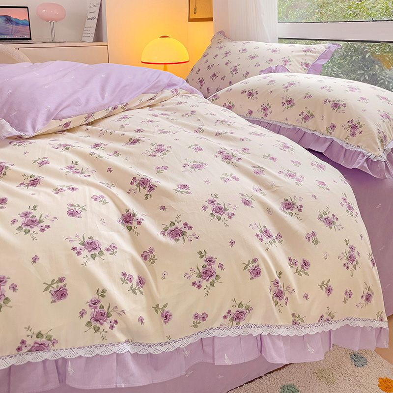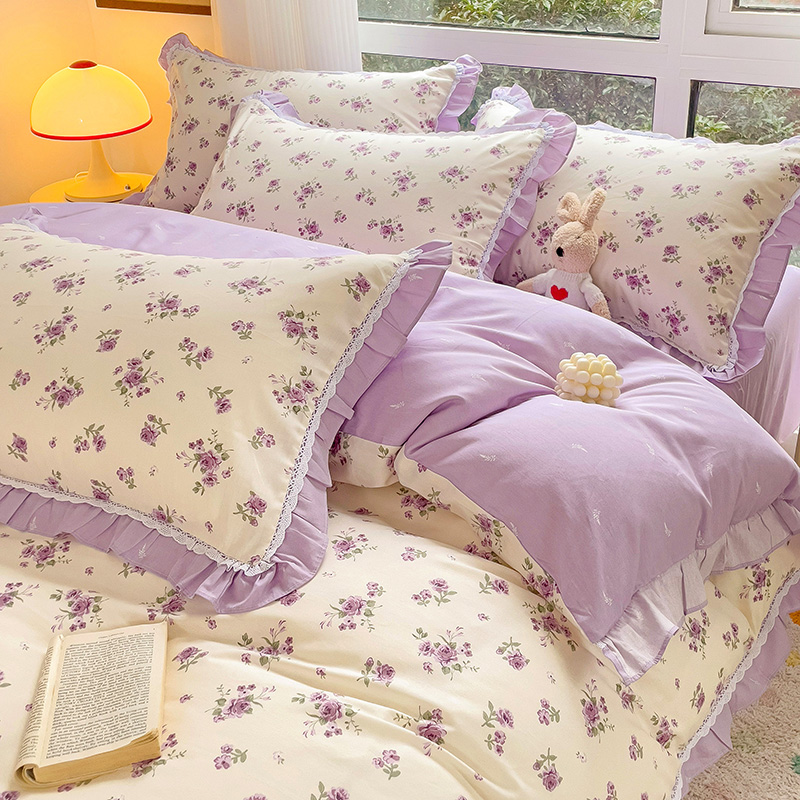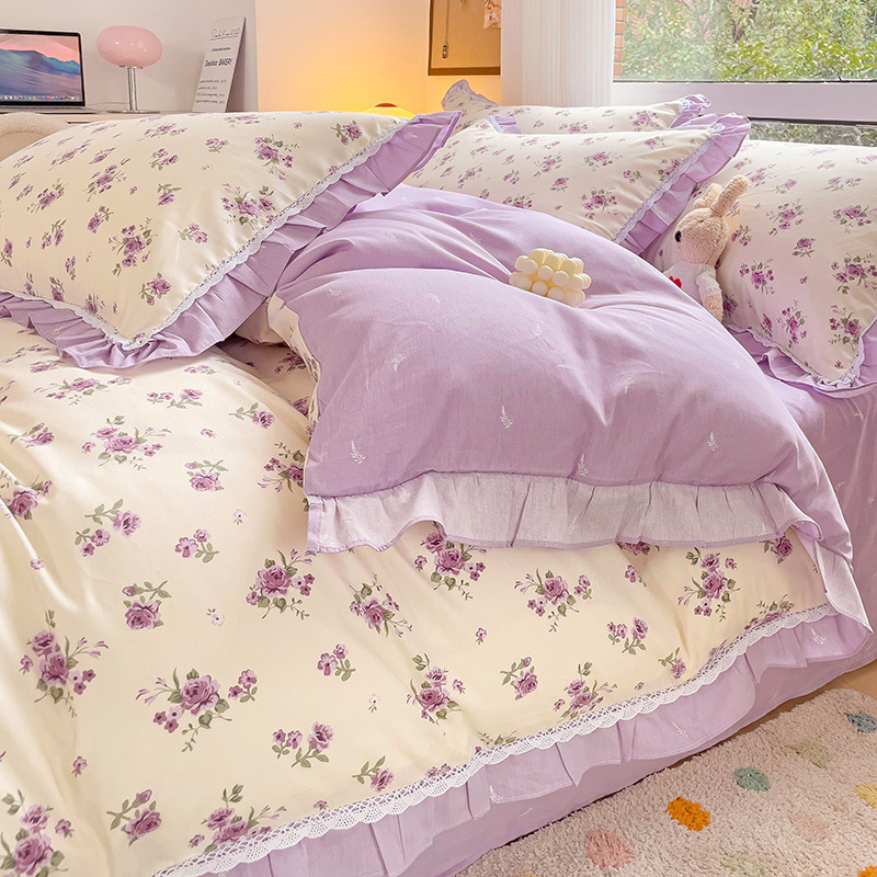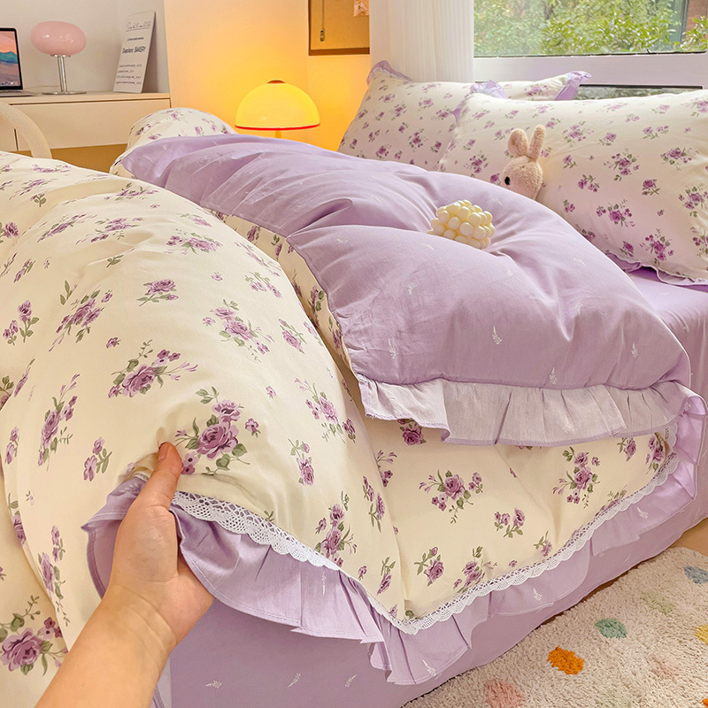 棉生活家纺 2025新款全棉小清新花边款蕾丝四件套 洛潇