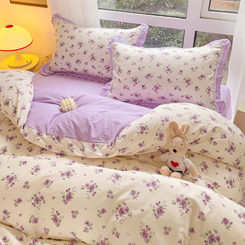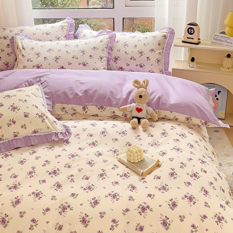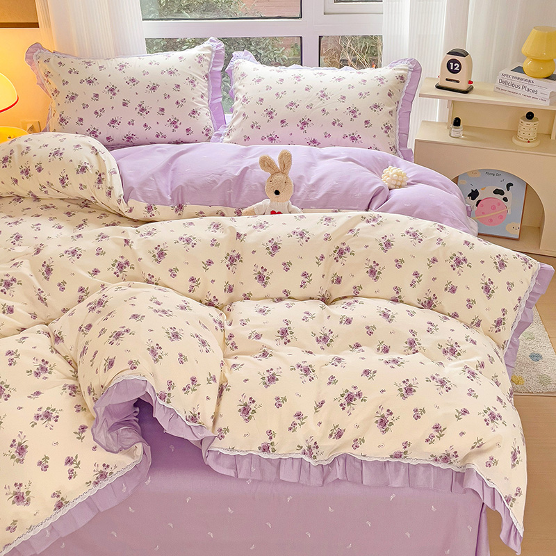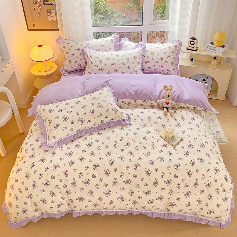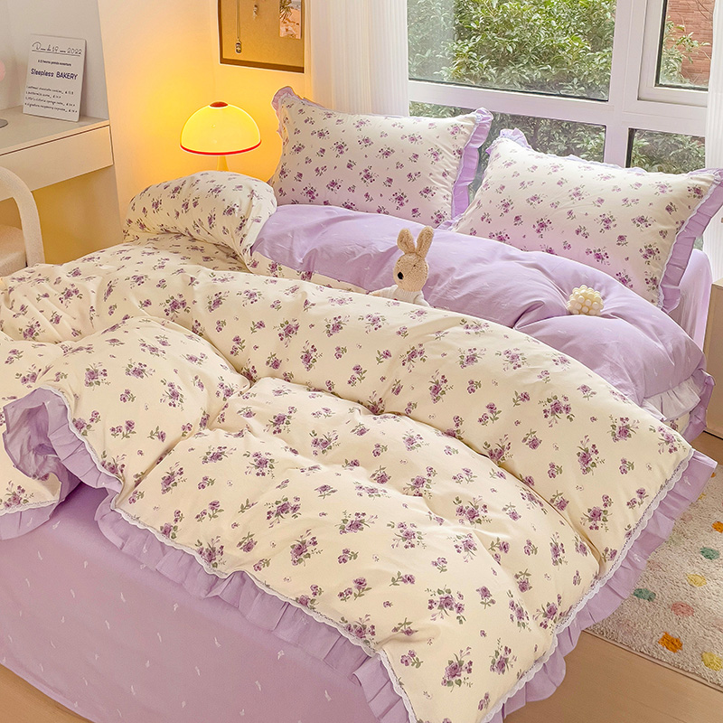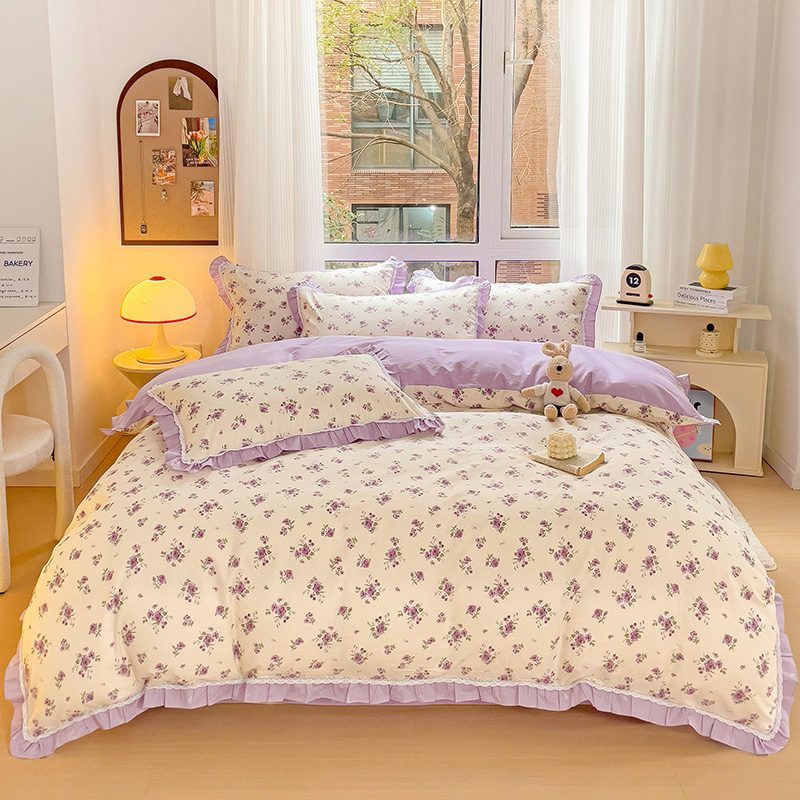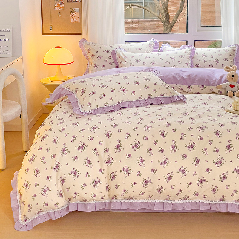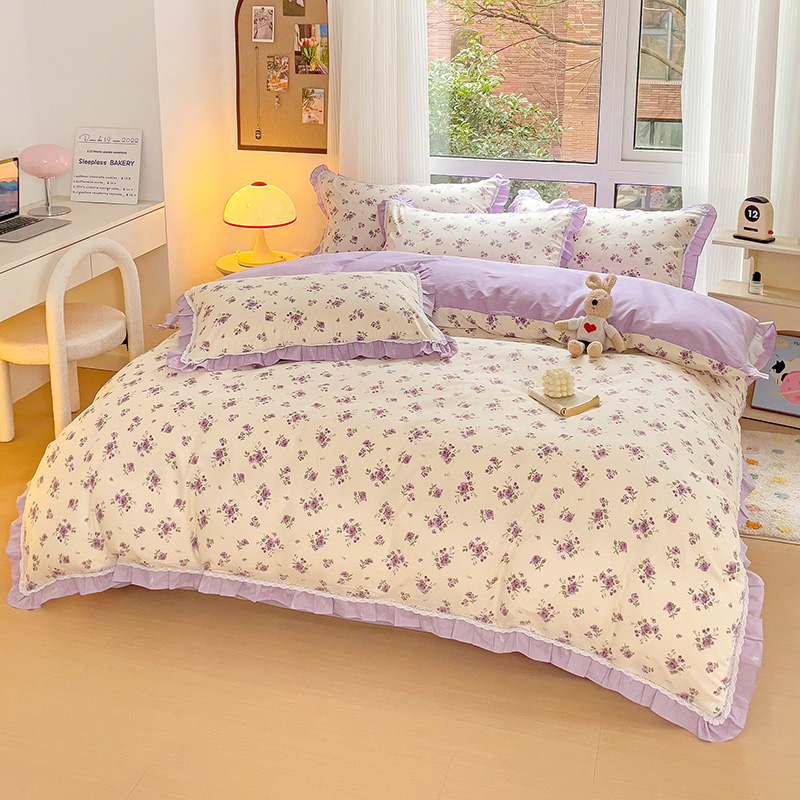 棉生活家纺 2025新款全棉小清新花边款蕾丝四件套 洛潇
