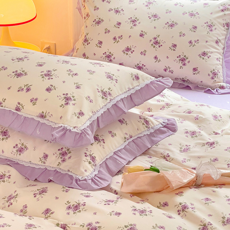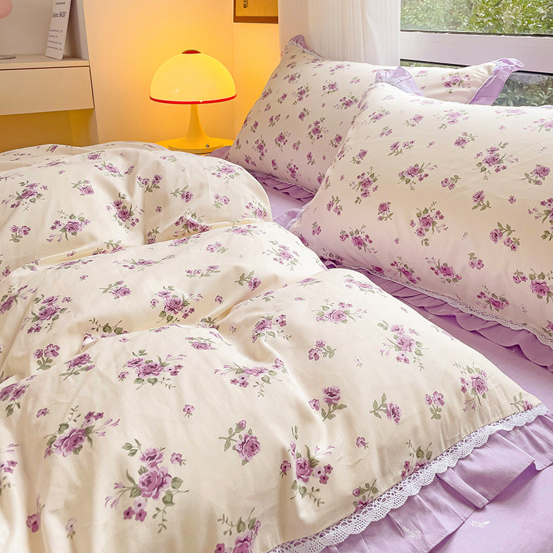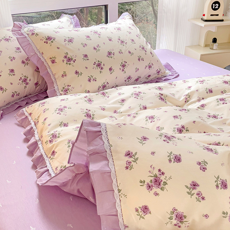 商品名称:棉生活家纺 2025新款全棉小清新花边款蕾丝四件套 洛潇