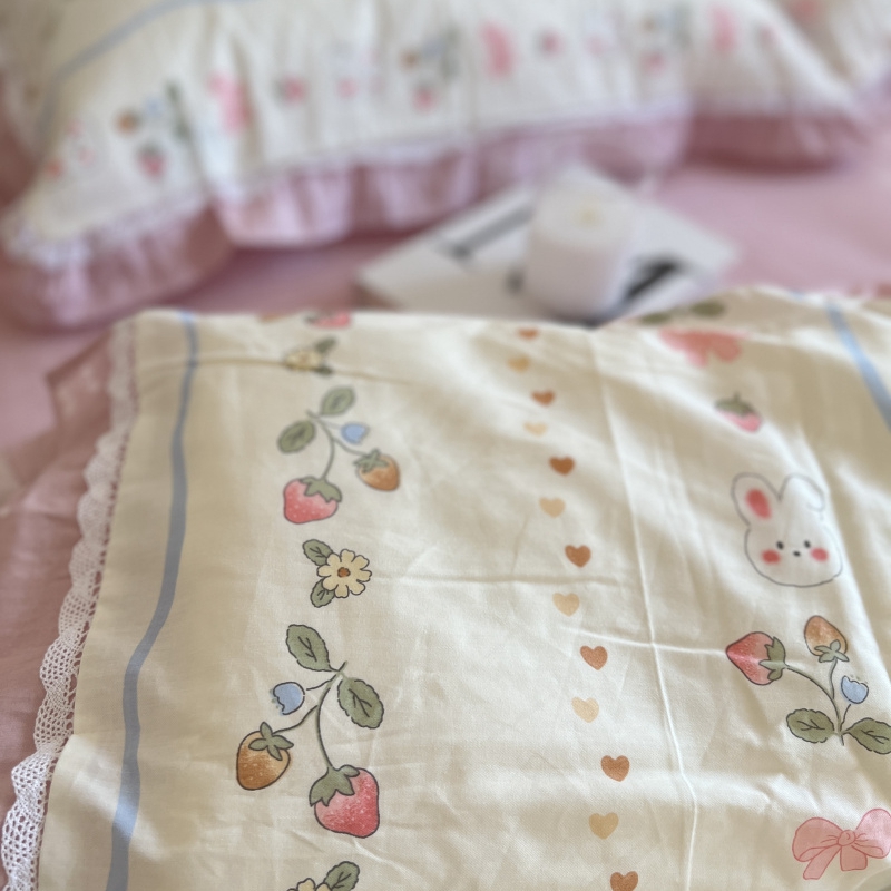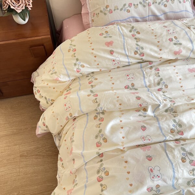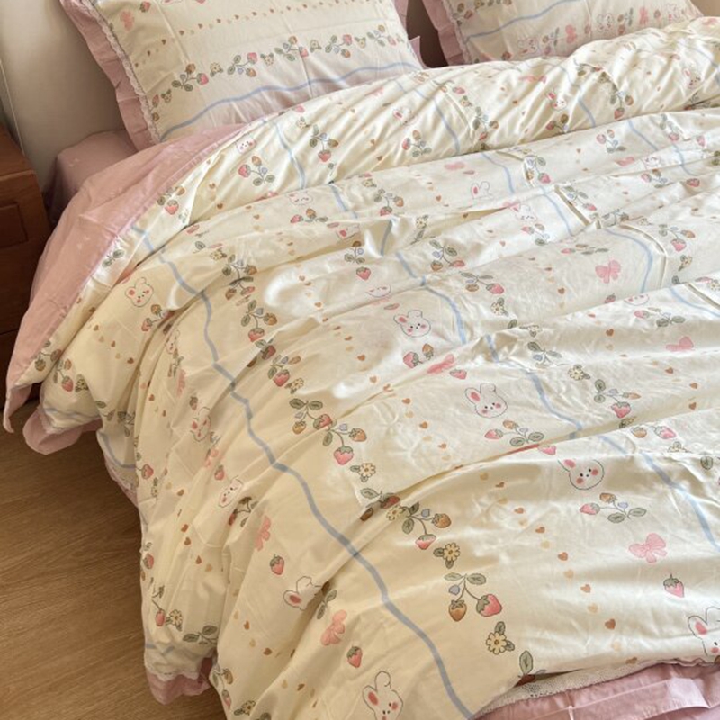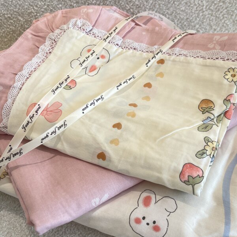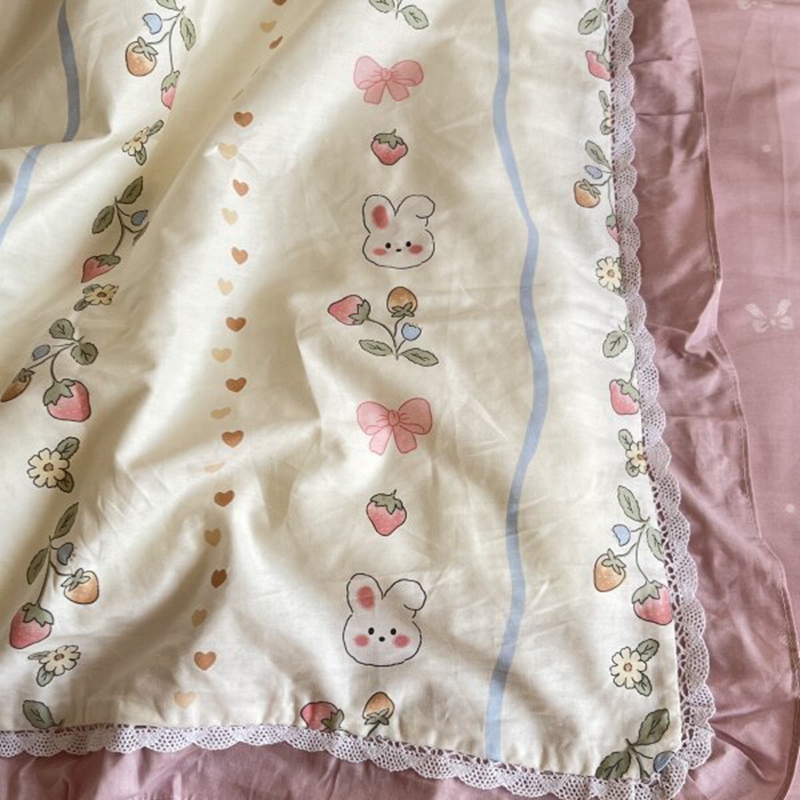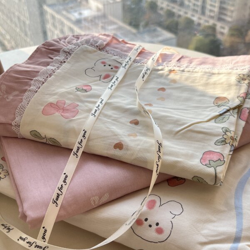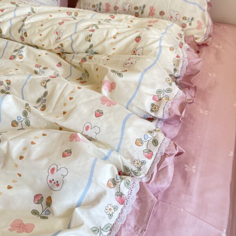 棉生活家纺 2025新款全棉小清新花边款蕾丝四件套 花野兔