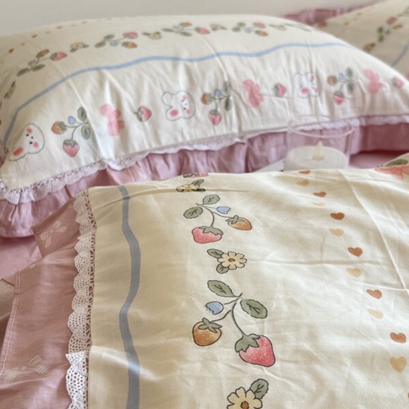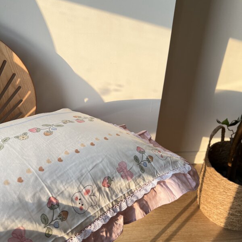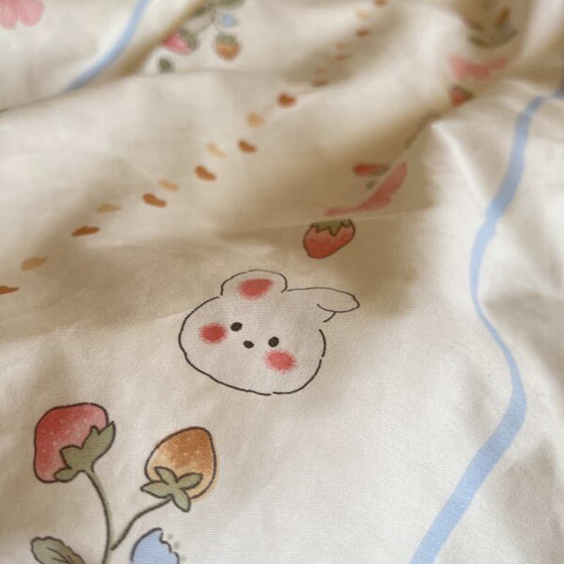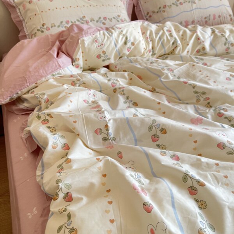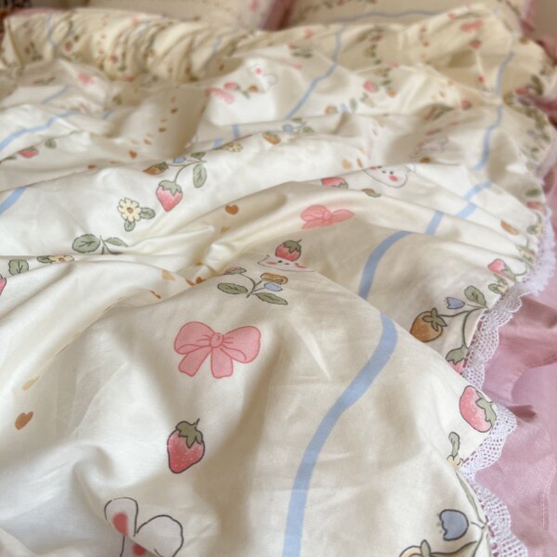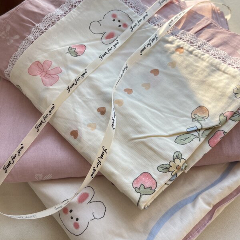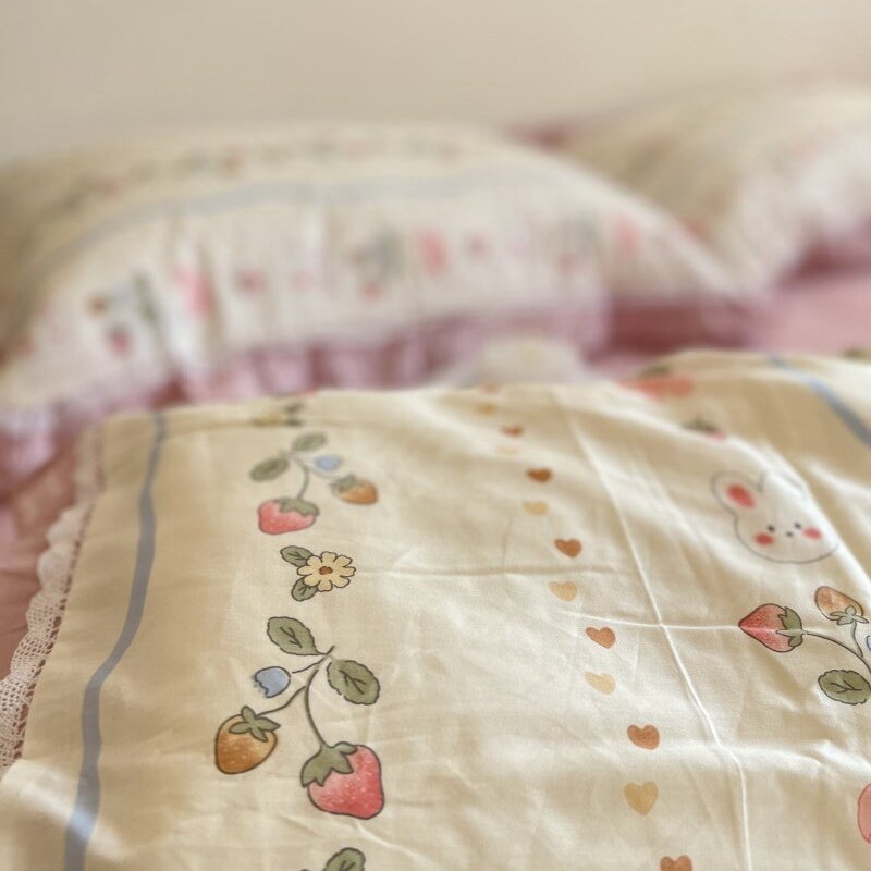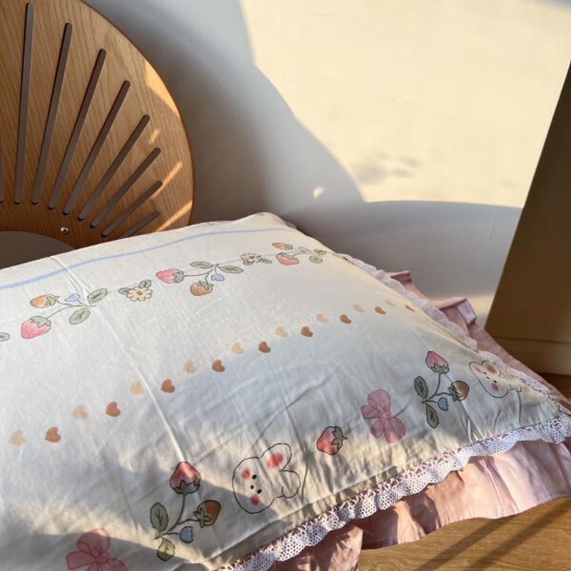 棉生活家纺 2025新款全棉小清新花边款蕾丝四件套 花野兔