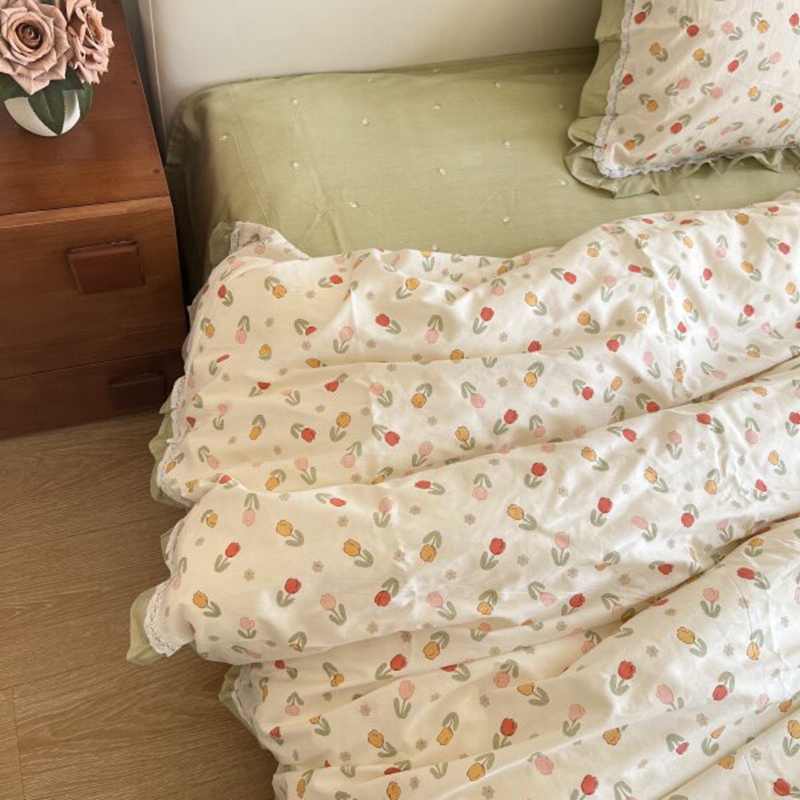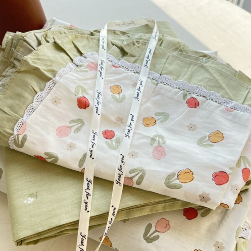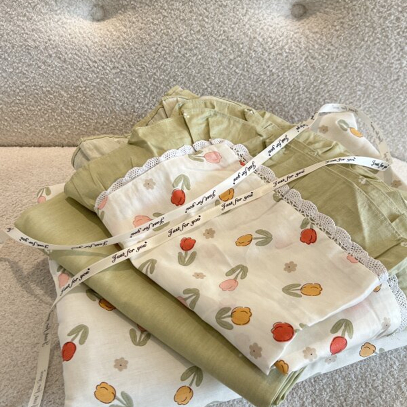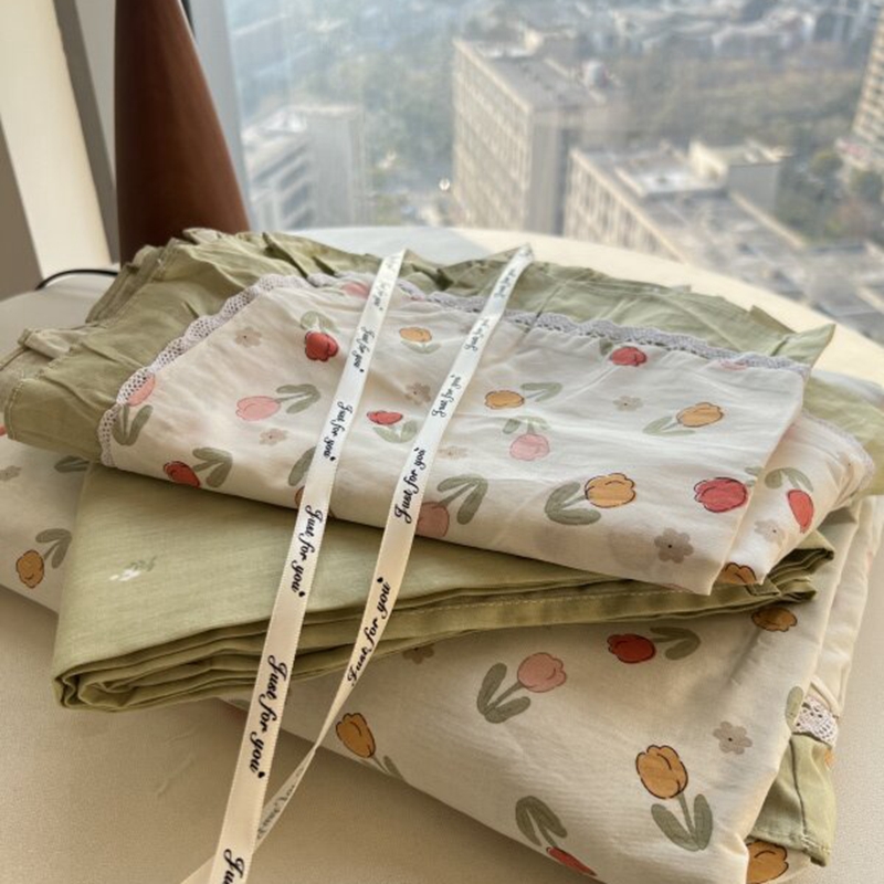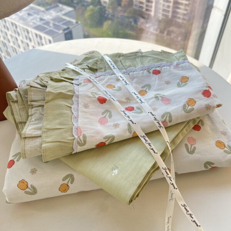 棉生活家纺 2025新款全棉小清新花边款蕾丝四件套 郁金香