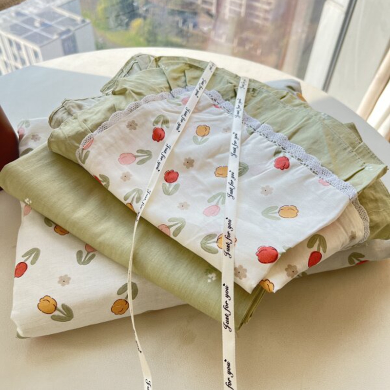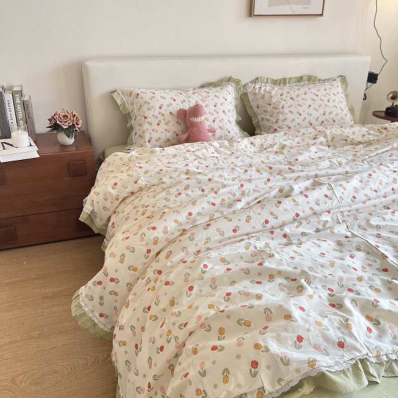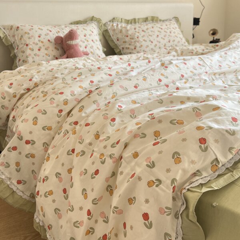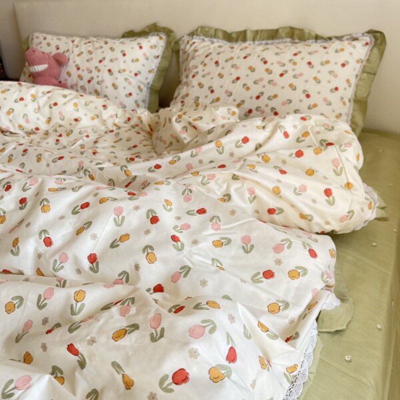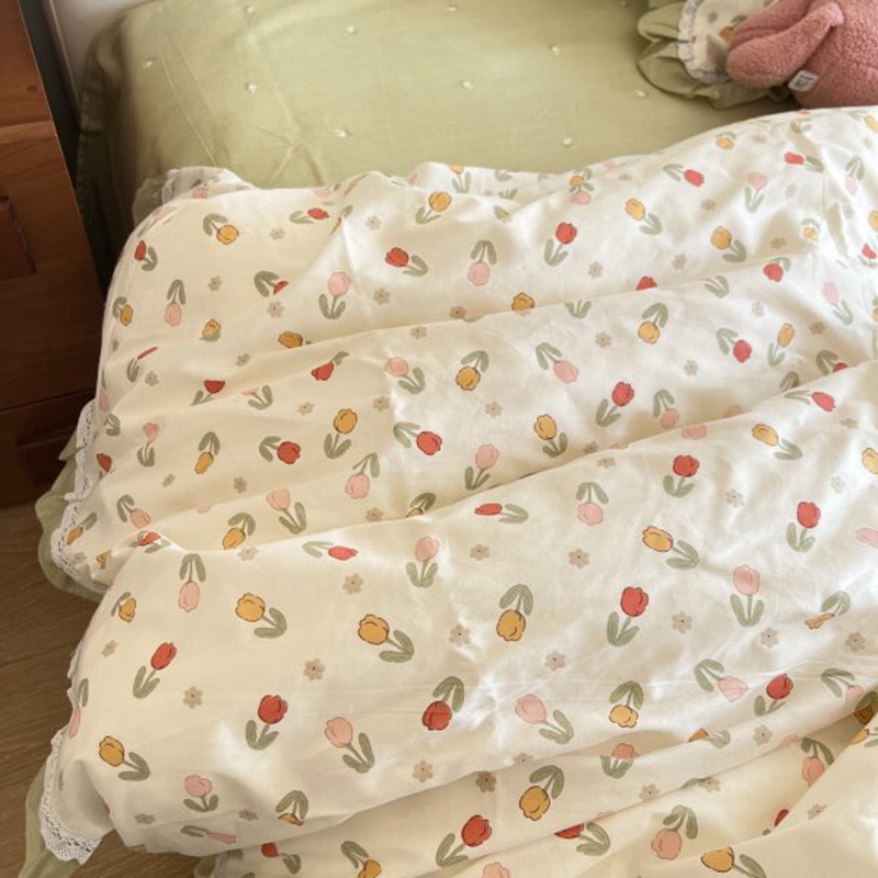 棉生活家纺 2025新款全棉小清新花边款蕾丝四件套 郁金香