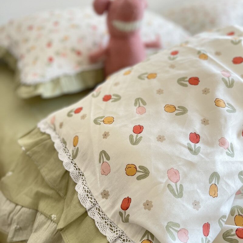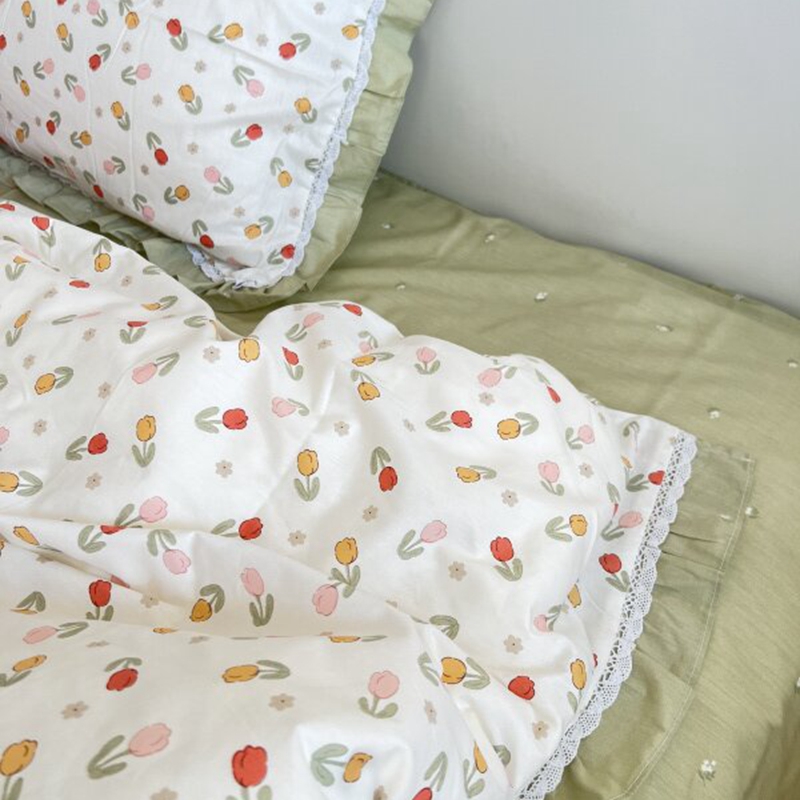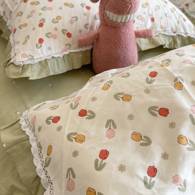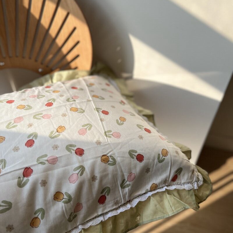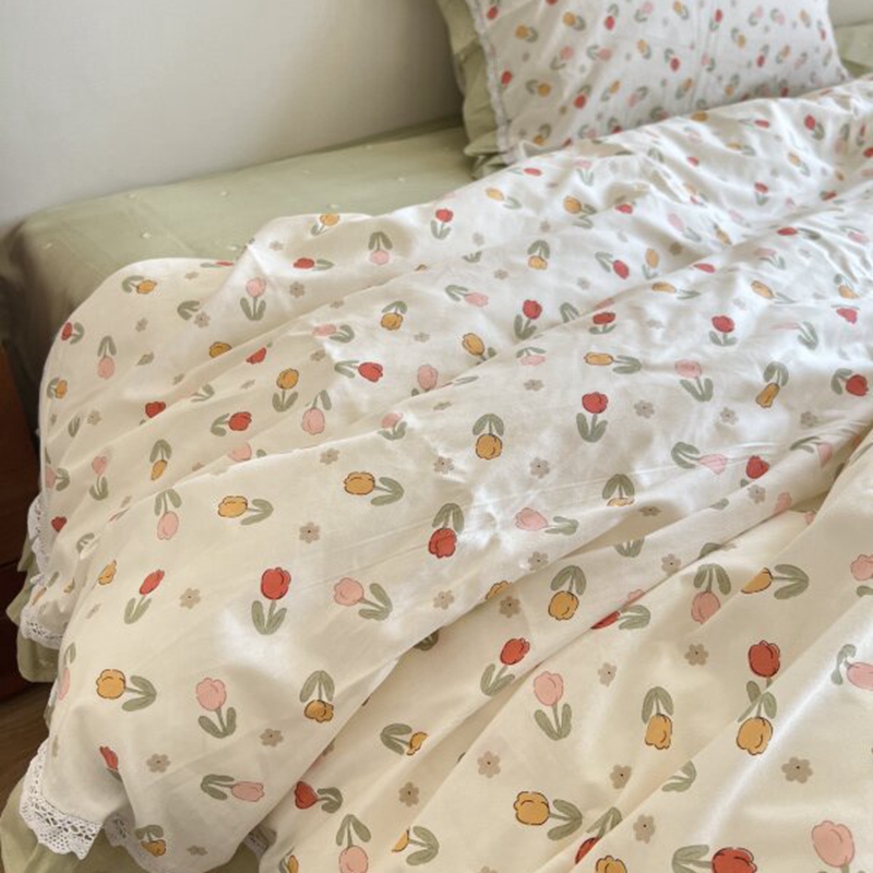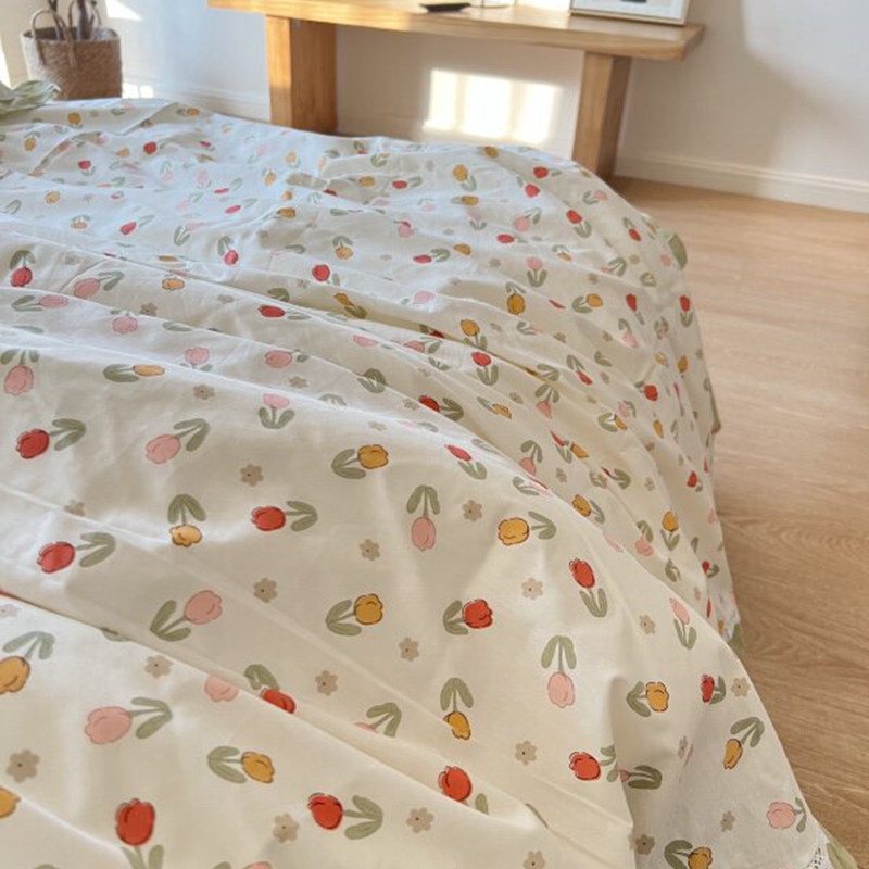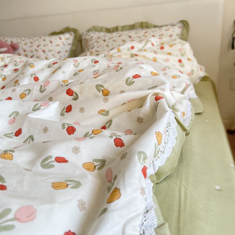 商品名称:棉生活家纺 2025新款全棉小清新花边款蕾丝四件套 郁金香