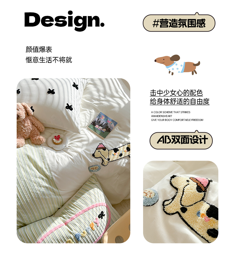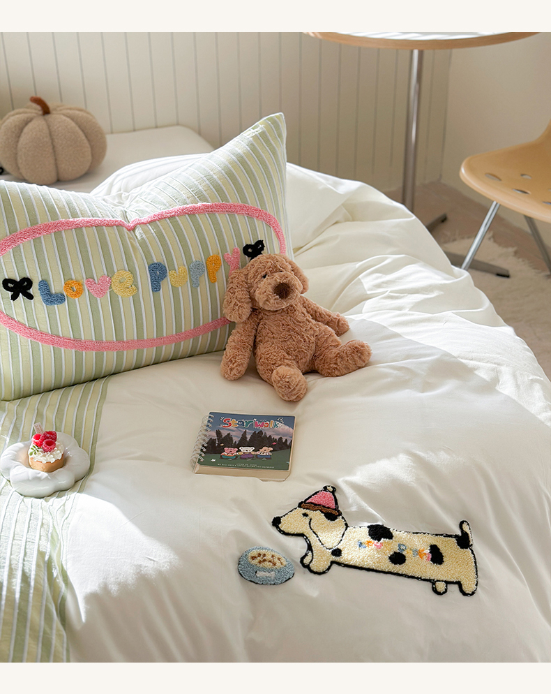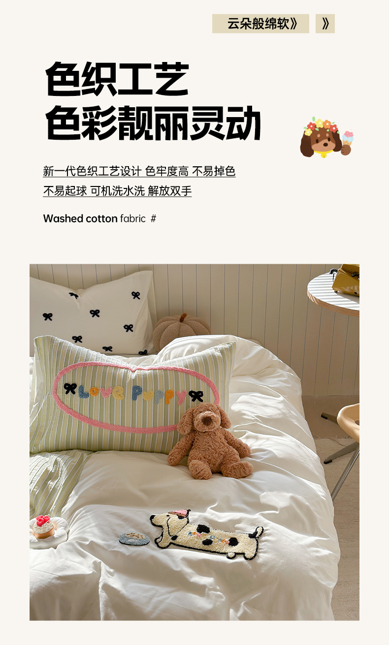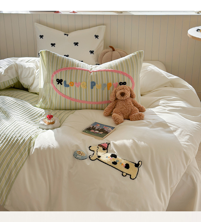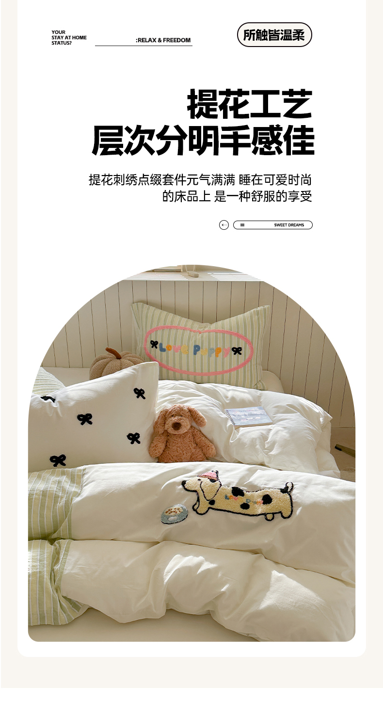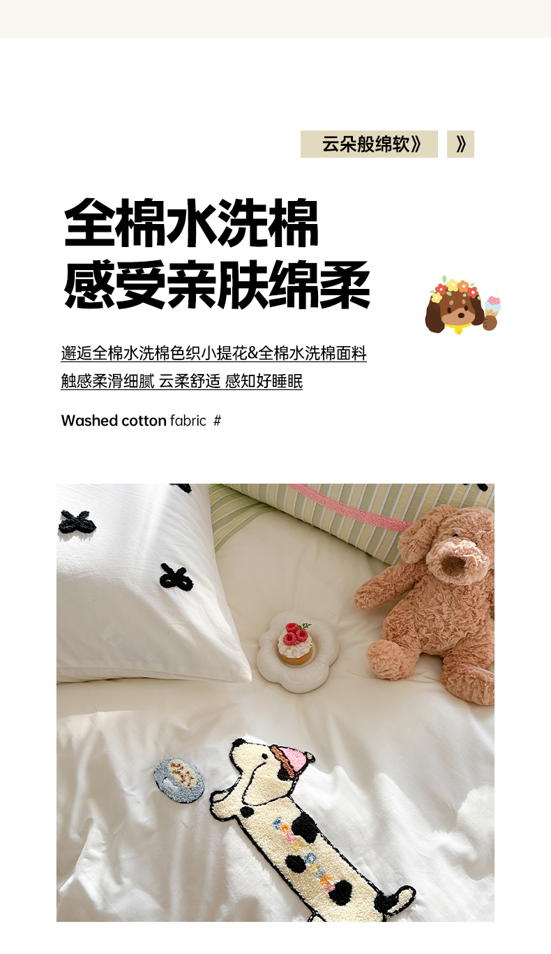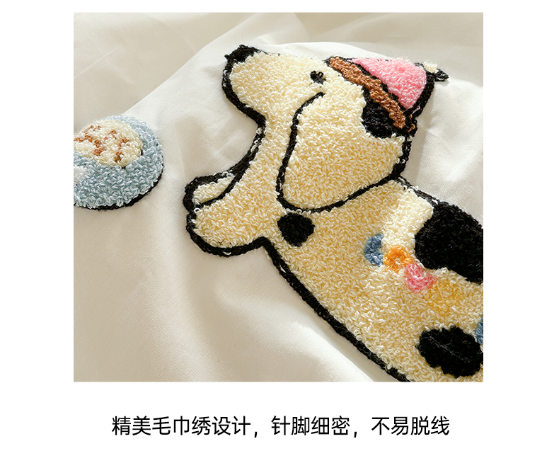 (总)暖生活 2025新款牛奶绒贴布绣工艺款床盖四件套 (会员-5元),排排队,小狗漫步