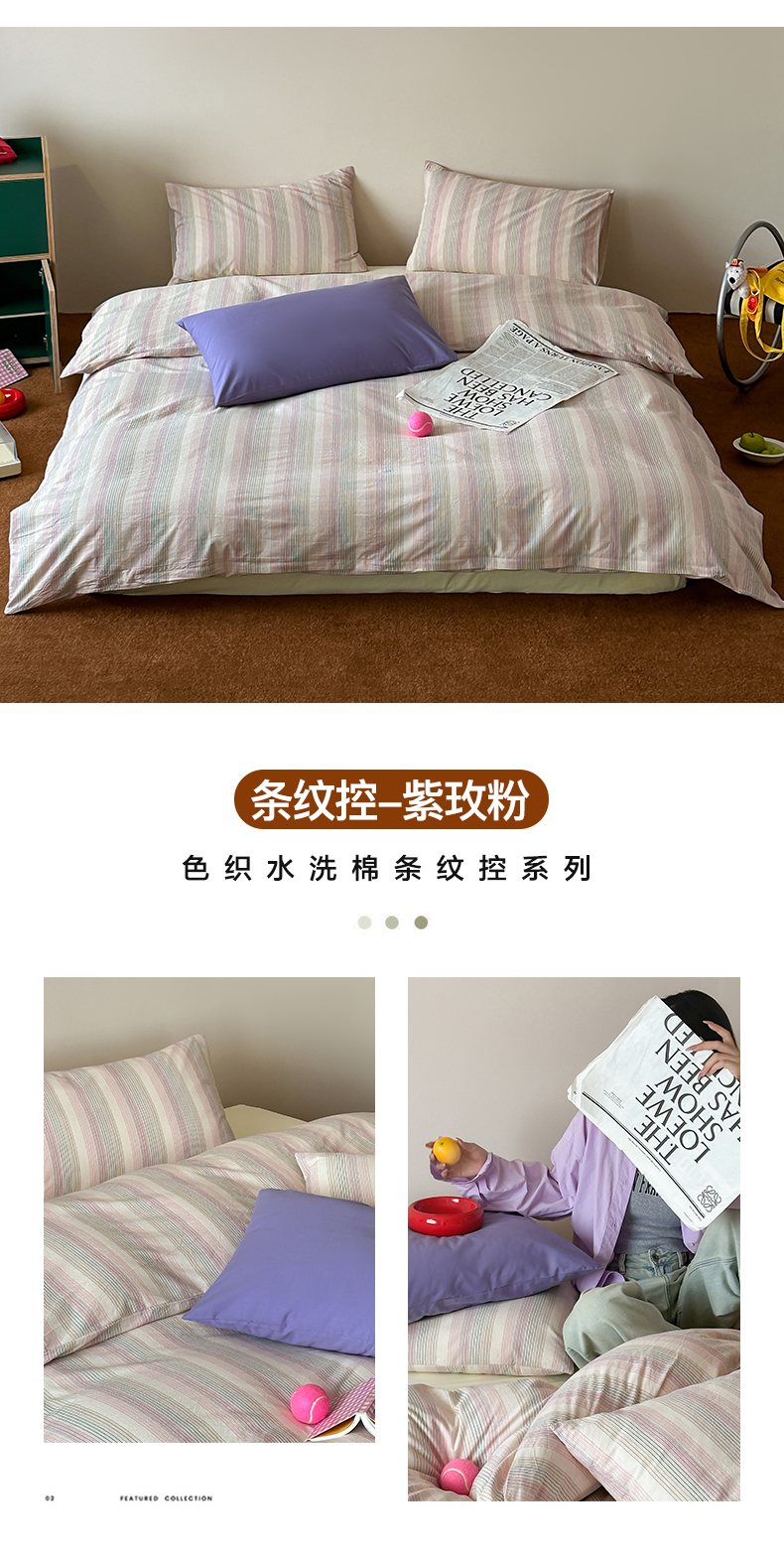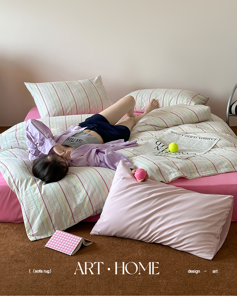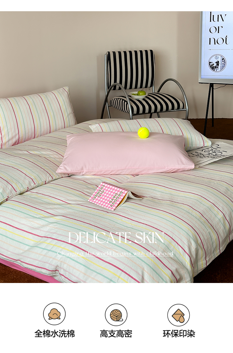 当前位置: 91家纺网 > 商品网购 > 床品套件 > 四件套 > 全棉普通四件套 > 例外Home 2025新款全棉色织水洗棉四件套-条纹控 条纹控-彩虹
