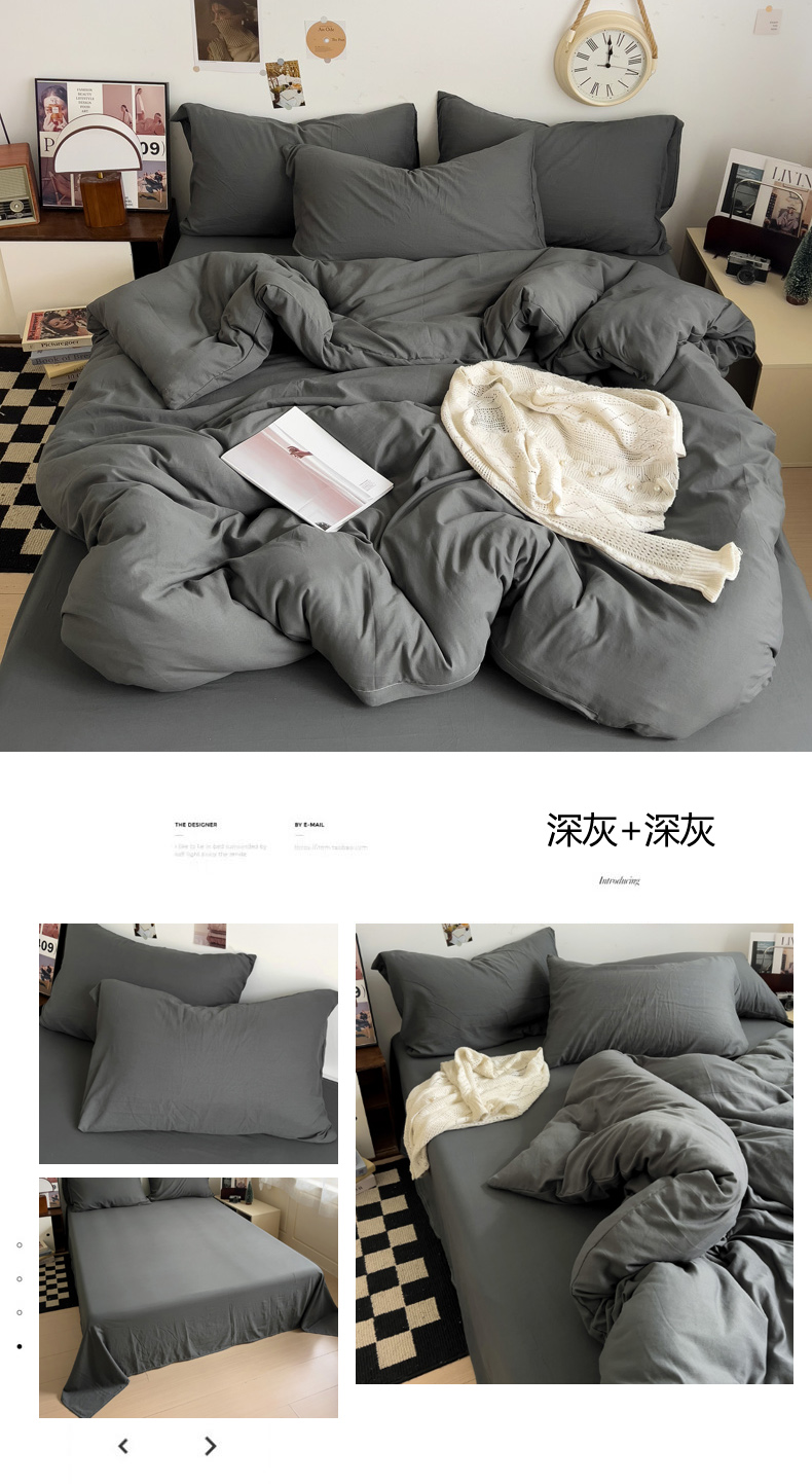 当前位置: 91家纺网 > 商品网购 > 床品套件 > 四件套 > 普通磨毛四件套 > 花伞家居 2025新款纯色拼色柔软亲肤水洗棉简约四件套 深灰+深灰