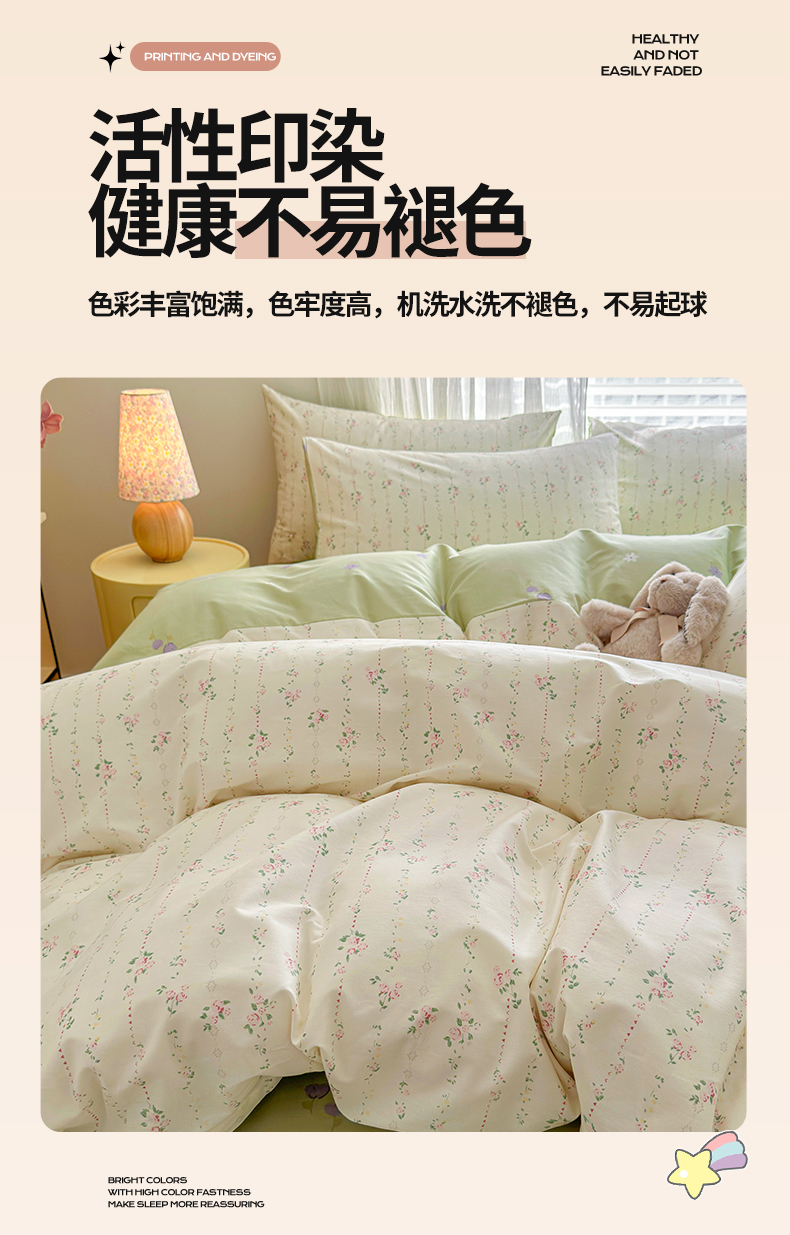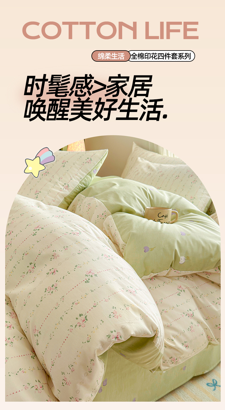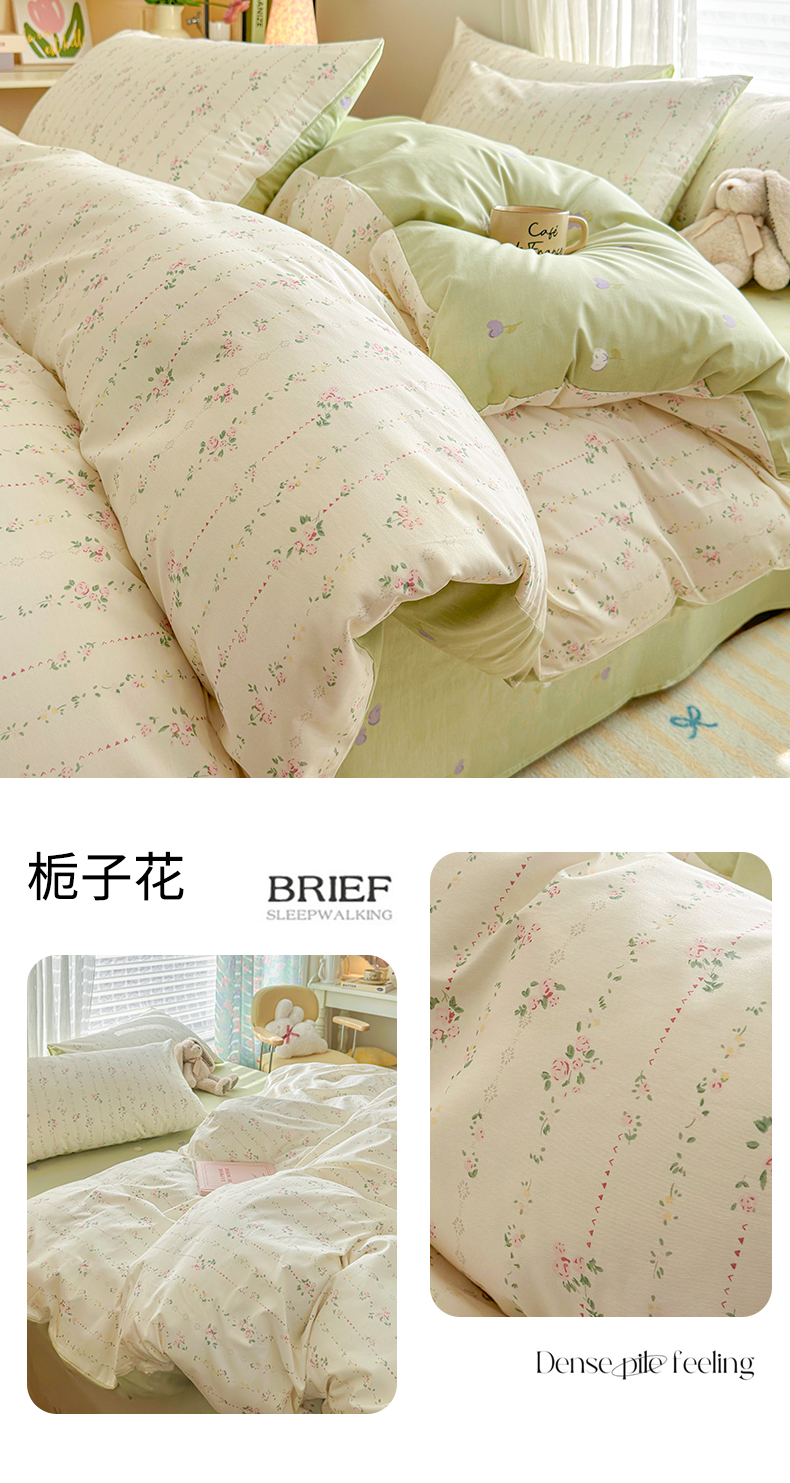 当前位置: 91家纺网 > 商品网购 > 床品套件 > 四件套 > 全棉普通四件套 > 名兮家居 2025年新款13372全棉印花四件套-卡通系列 栀子花