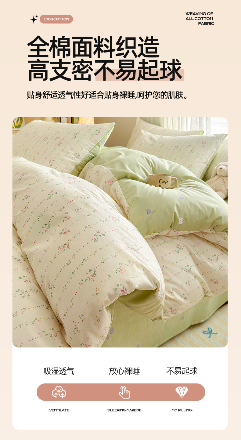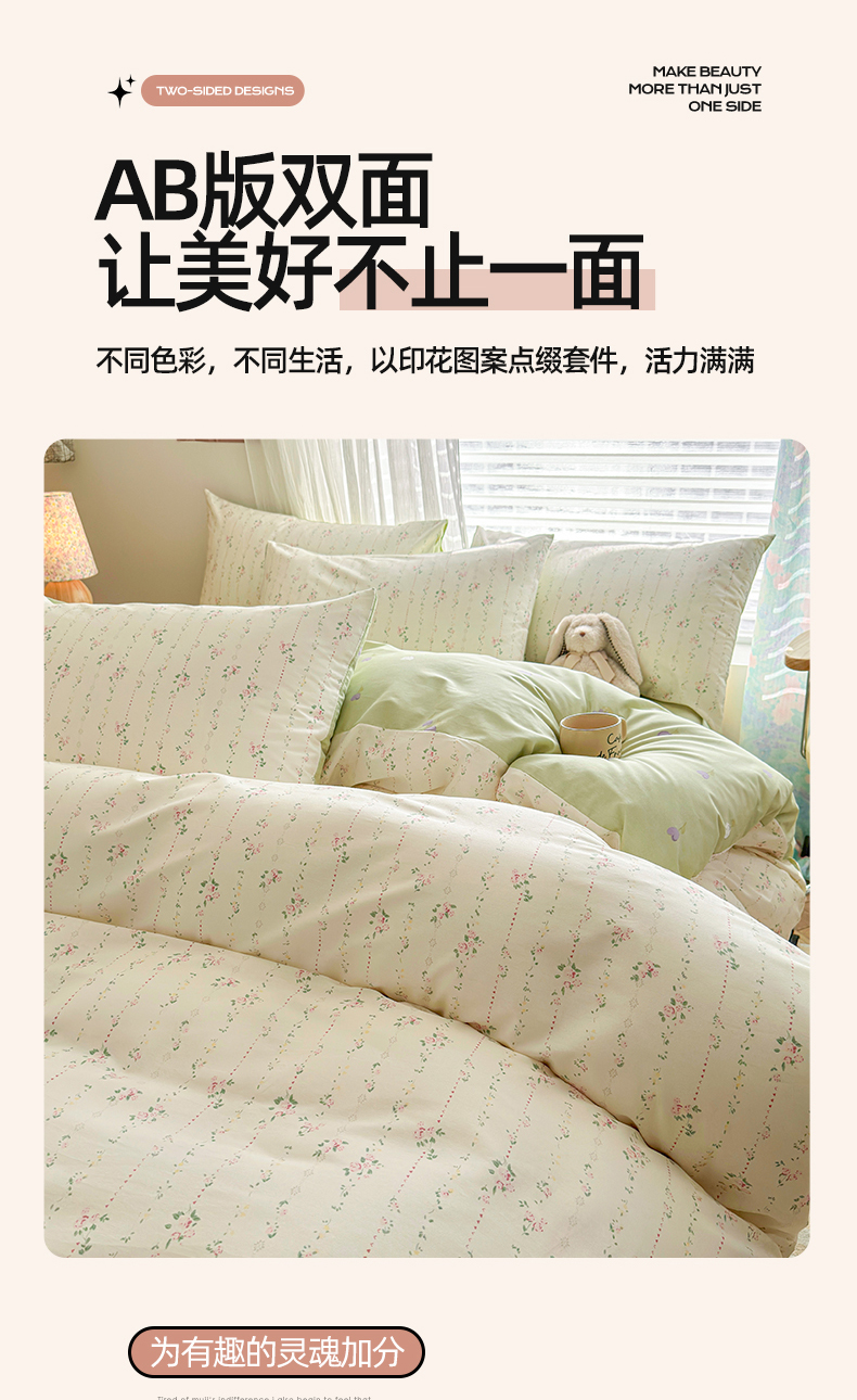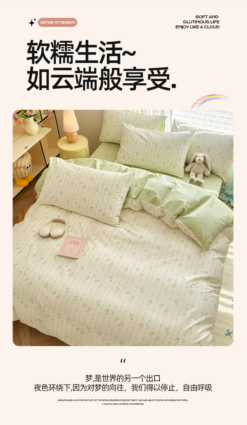 当前位置: 91家纺网 > 商品网购 > 床品套件 > 四件套 > 全棉普通四件套 > 名兮家居 2025年新款13372全棉印花四件套-卡通系列 栀子花