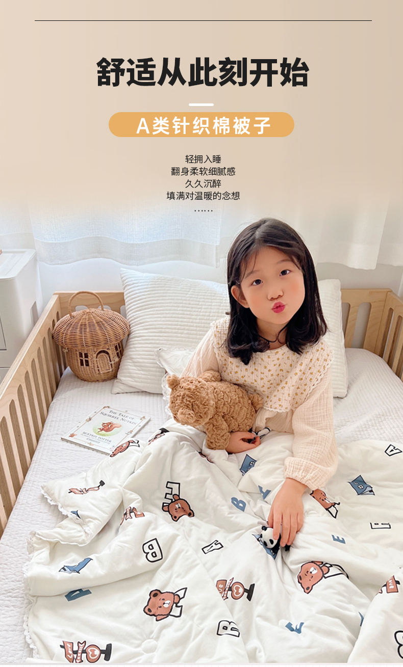 心卓婴童馆 2025新款A类针织棉被芯—儿童图 字母熊