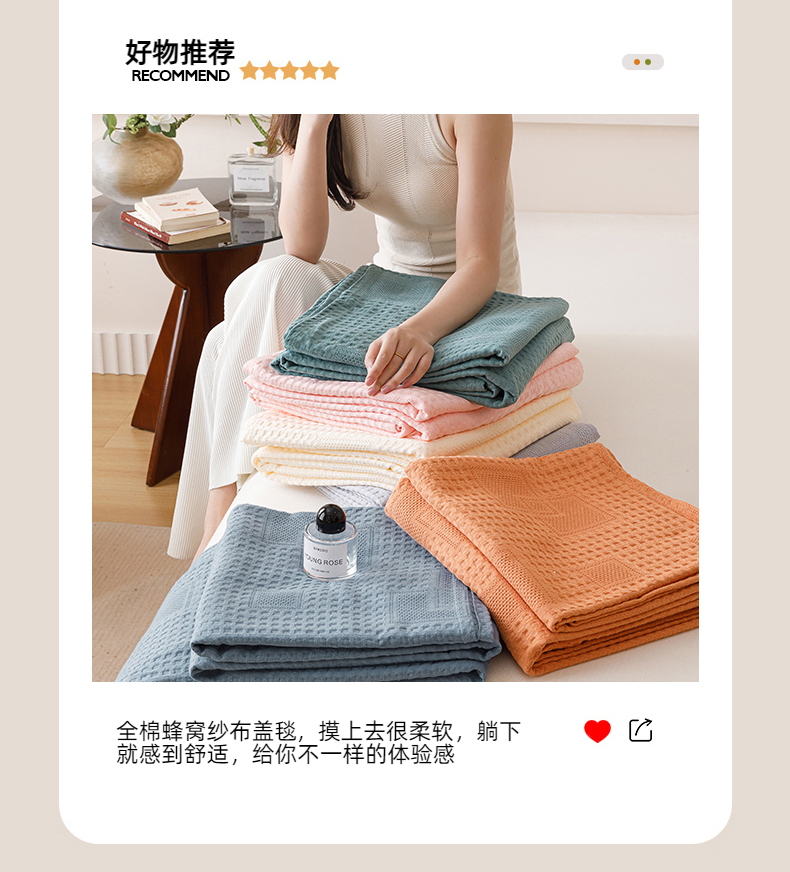 悦然毛巾被 2025新款蜂窝纱布盖毯 星光白