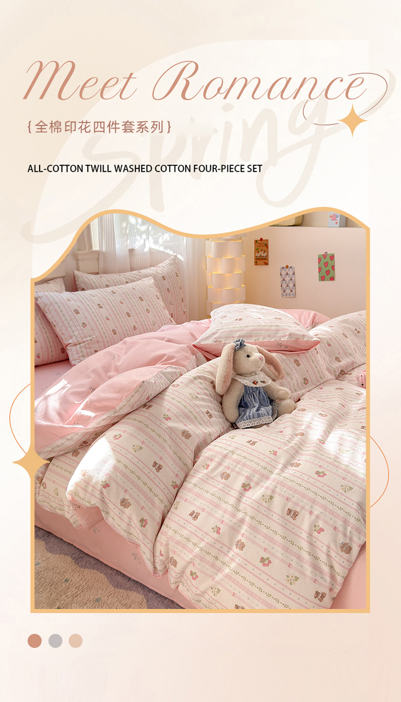 当前位置: 91家纺网 > 商品网购 > 床品套件 > 四件套 > 全棉普通四件套 > 清雅福 2025全棉13372小清新四件套和单品早春系列第一批-四件套 心动萌趣