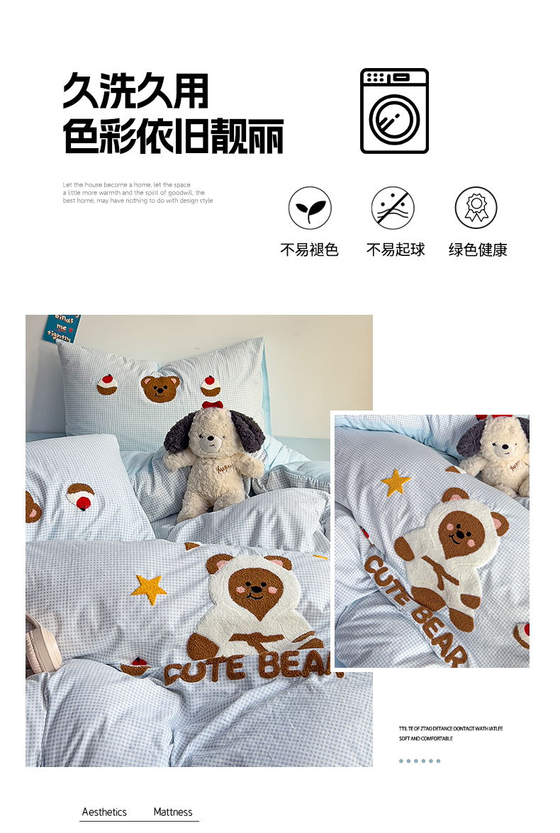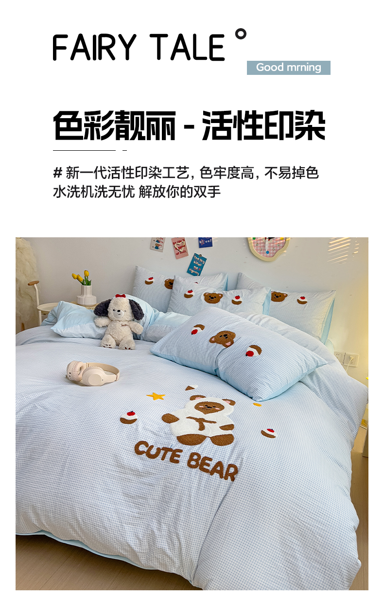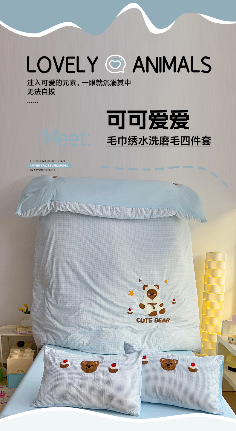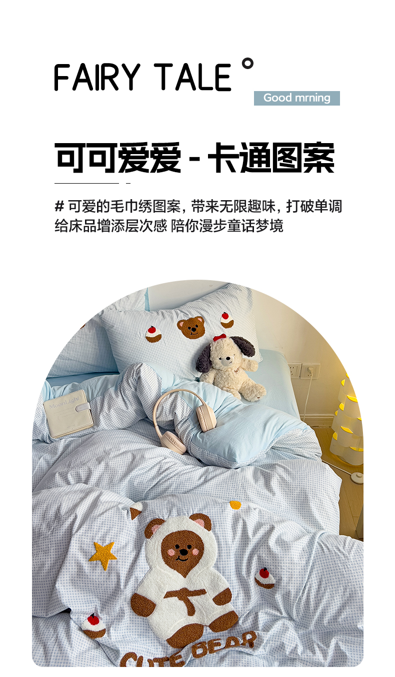 当前位置: 91家纺网 > 商品网购 > 床品套件 > 四件套 > 水洗棉四件套 > 逸尚阁 2025新款腊肠狗睡衣熊毛巾绣水洗棉四件套【提供买家秀】 睡衣熊-蓝格
