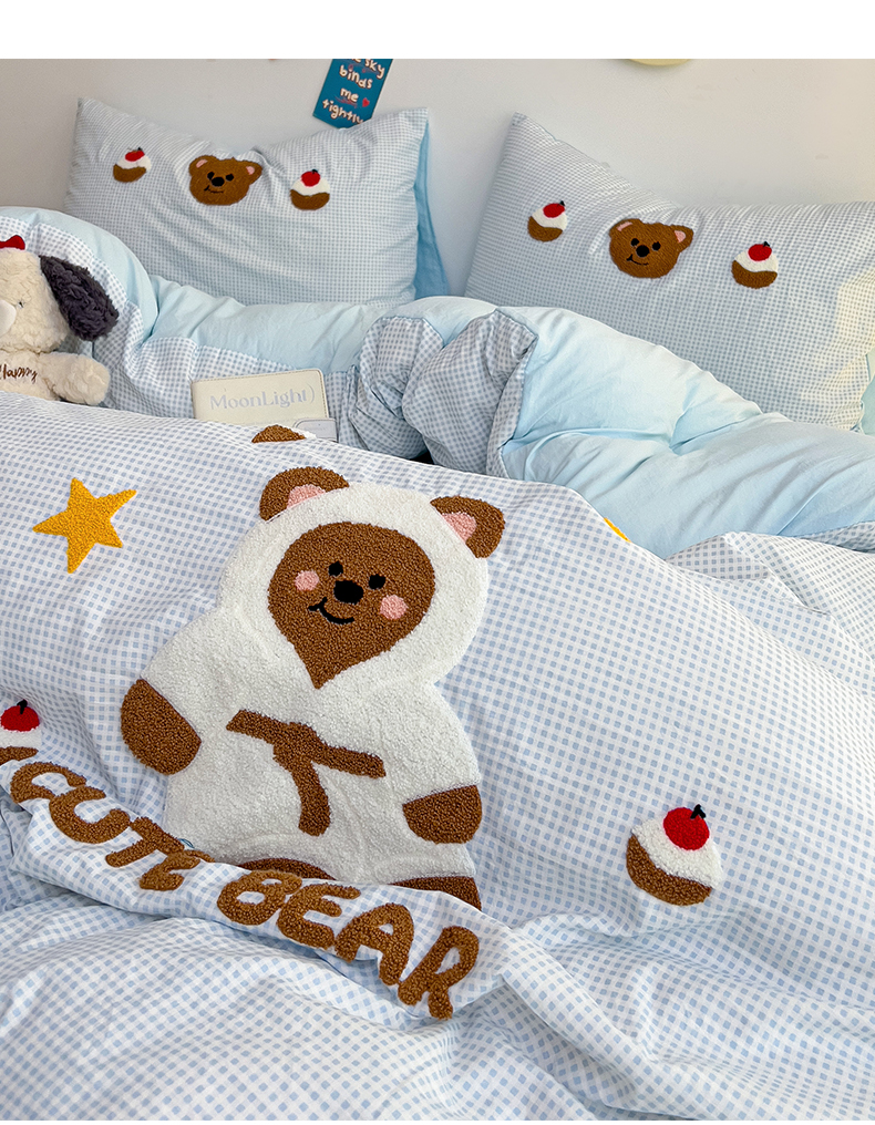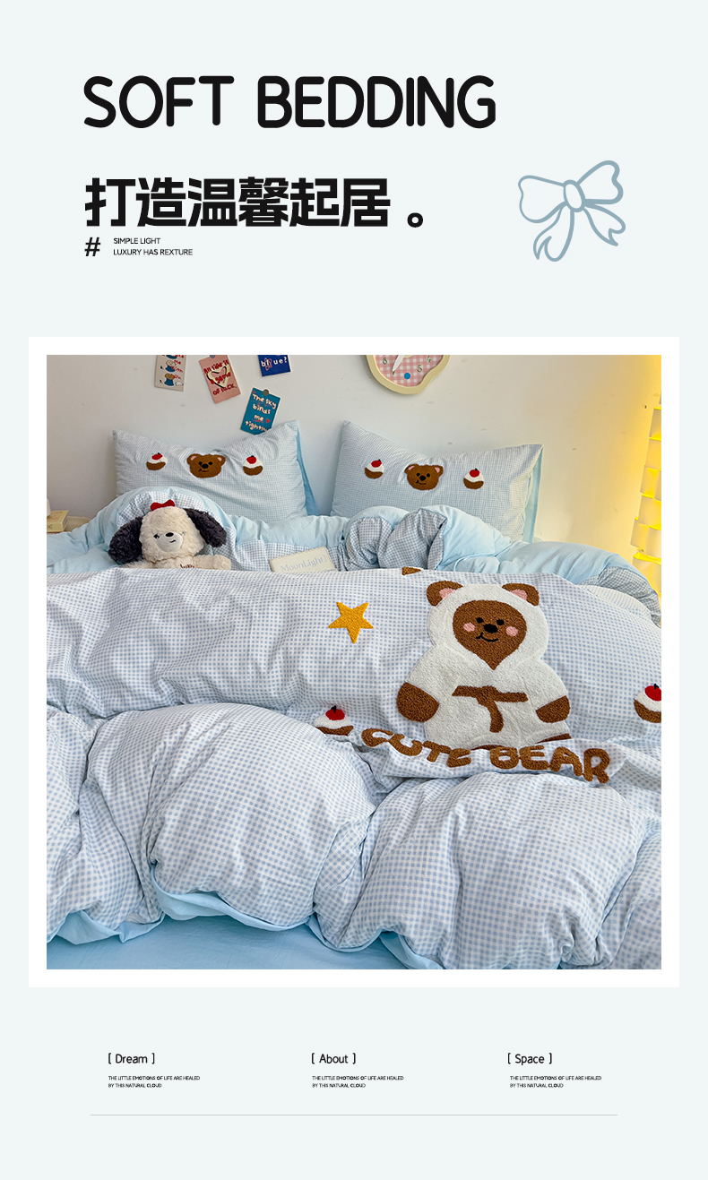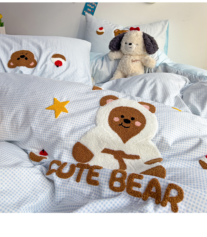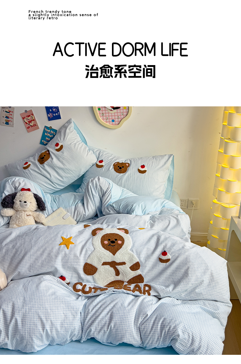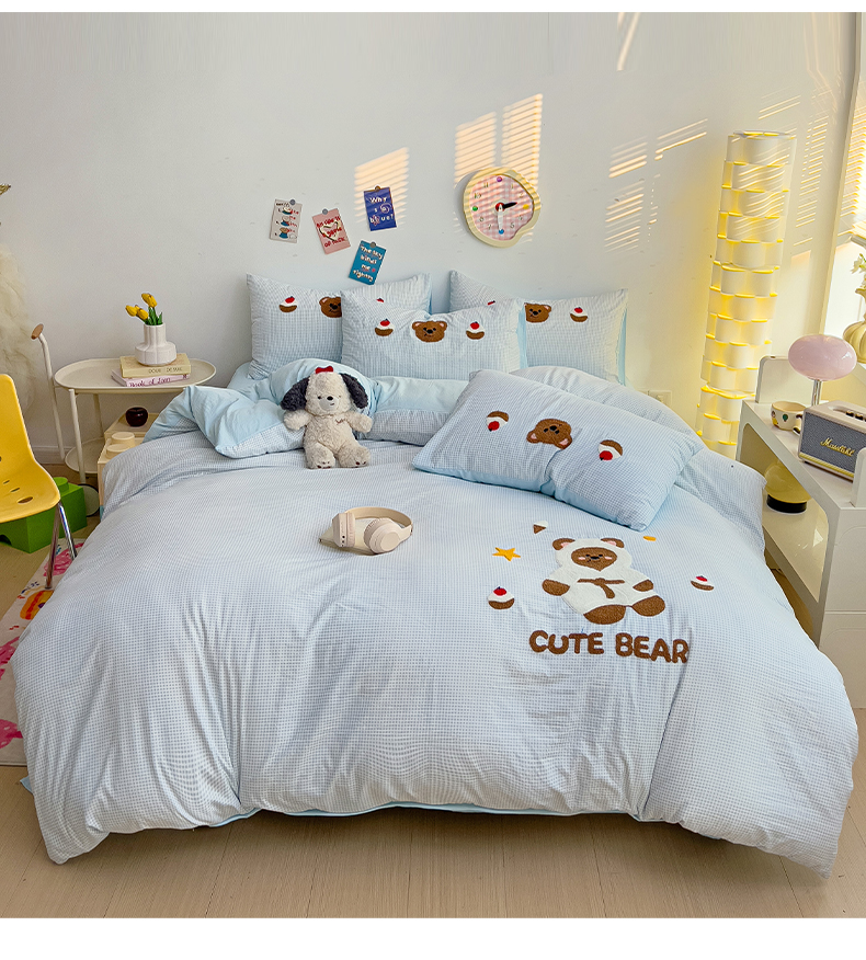 当前位置: 91家纺网 > 商品网购 > 床品套件 > 四件套 > 水洗棉四件套 > 逸尚阁 2025新款腊肠狗睡衣熊毛巾绣水洗棉四件套【提供买家秀】 睡衣熊-蓝格