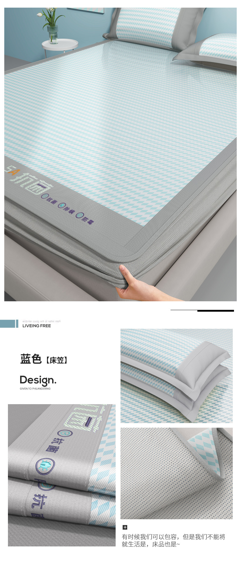 (总)阿牛席业2025新款冰藤凉席系列冰藤清爽床笠席,清爽-蓝【床笠款】,清爽-咖【床笠款】