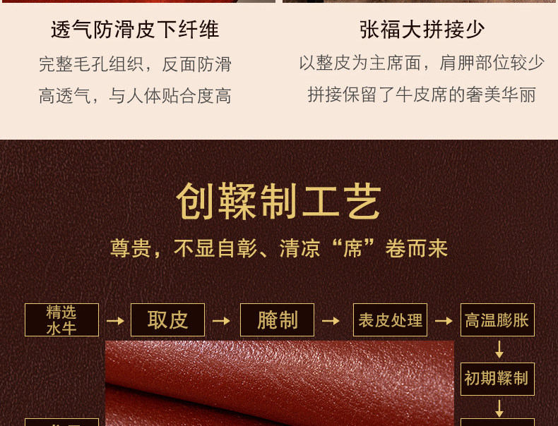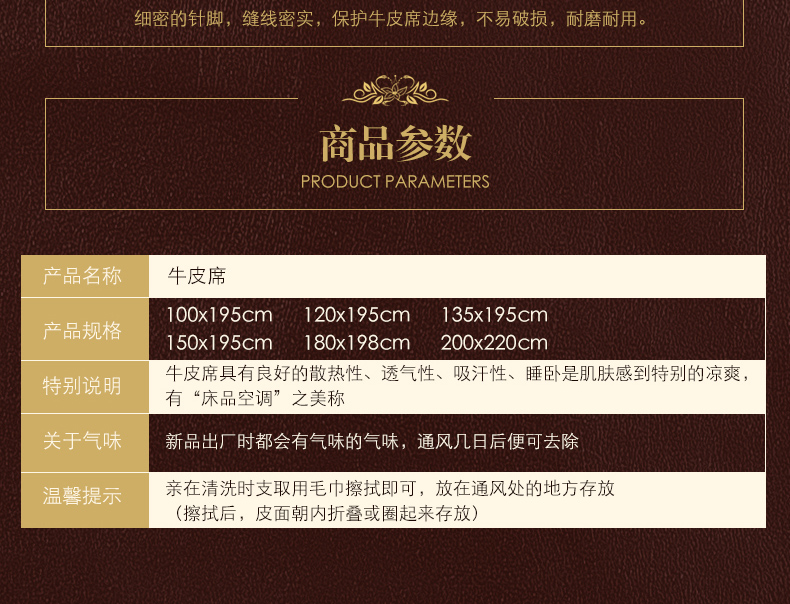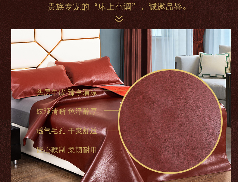 商品名称:阿牛席业 2025新款牛皮凉席系列 牛气冲天-经典棕色