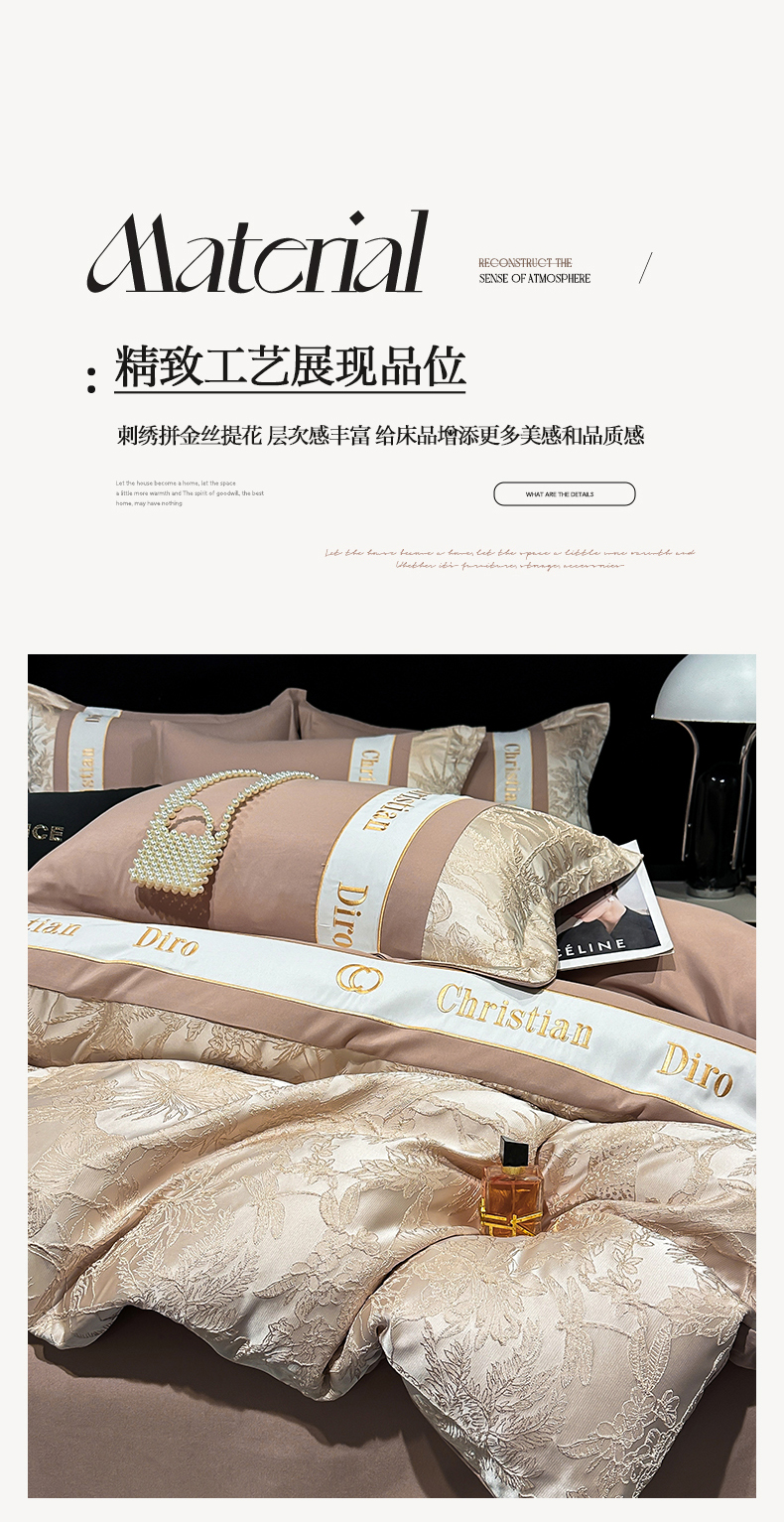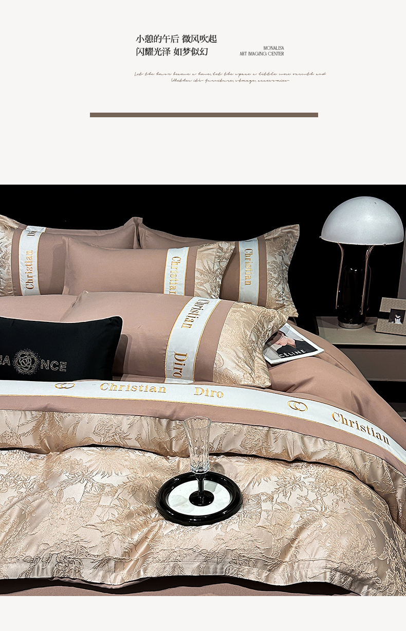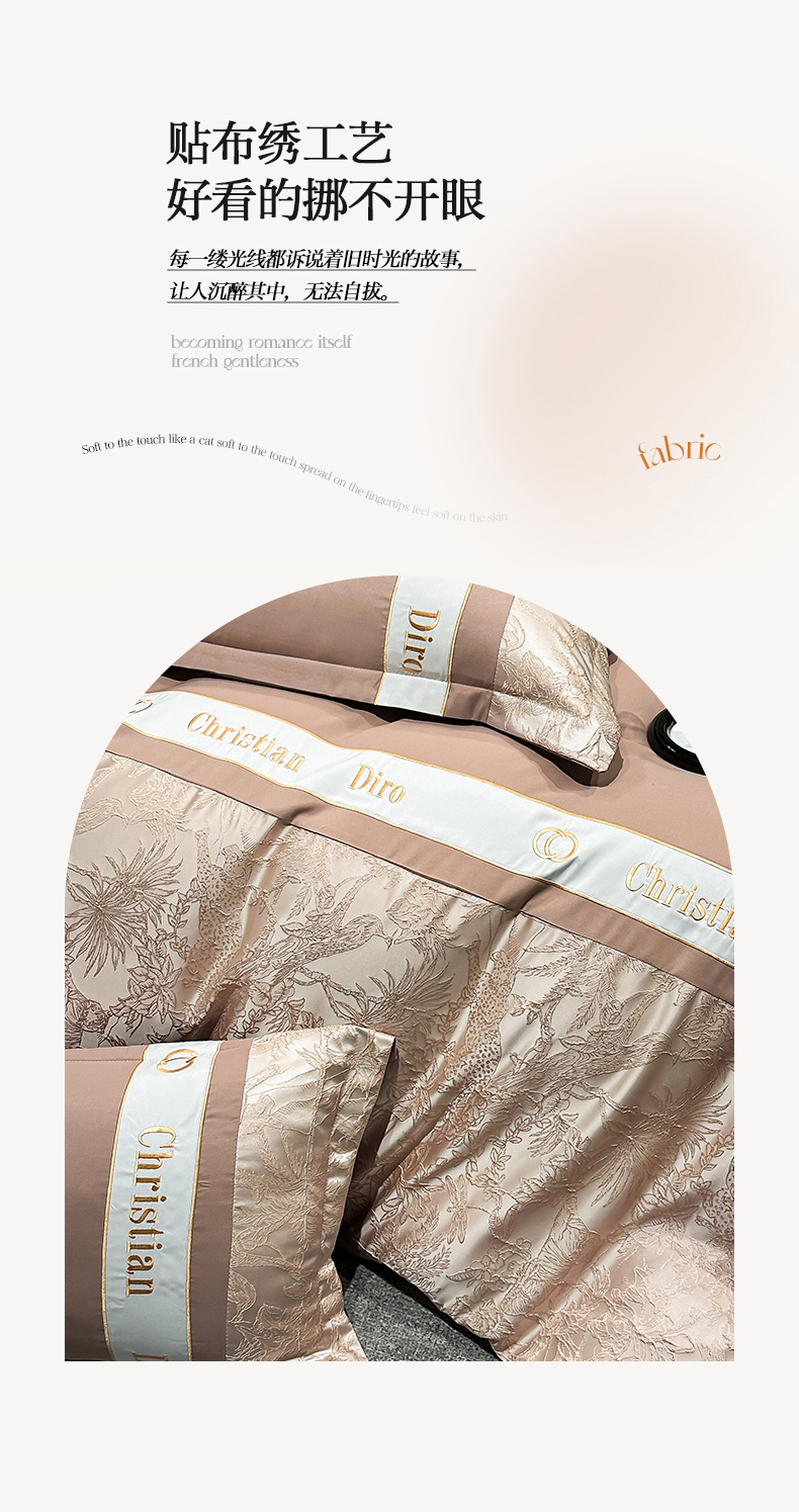 富宁家纺 2025新款刺绣拼金丝提花磨毛四件套-森林奇境 森林奇境-香槟