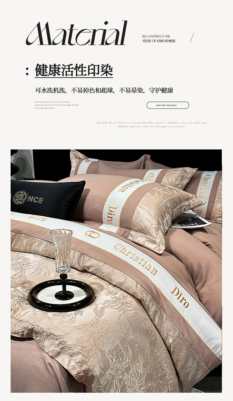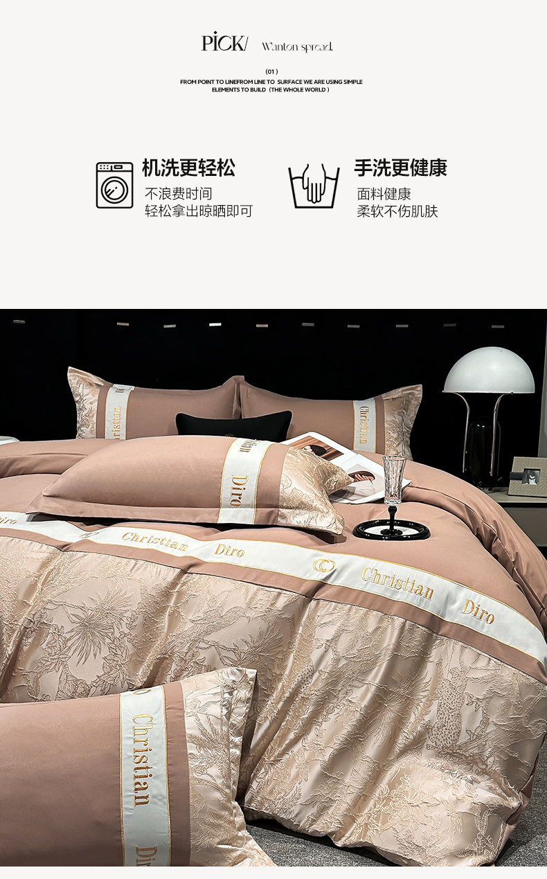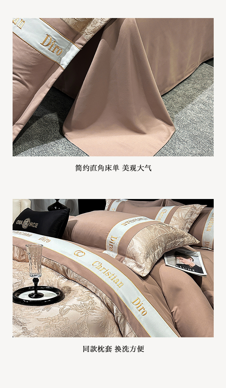 富宁家纺 2025新款刺绣拼金丝提花磨毛四件套-森林奇境 森林奇境-香槟