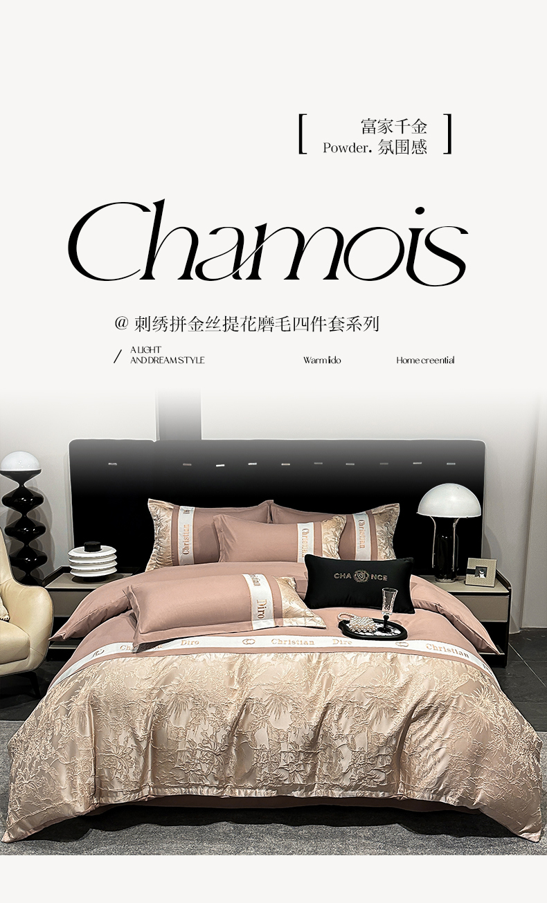 (总)富宁家纺 2025新款立体雕花牛奶绒绣花四件套-洛卡玫瑰系列,洛卡白,玫瑰灰,洛卡咖,玫瑰粉,洛卡蓝