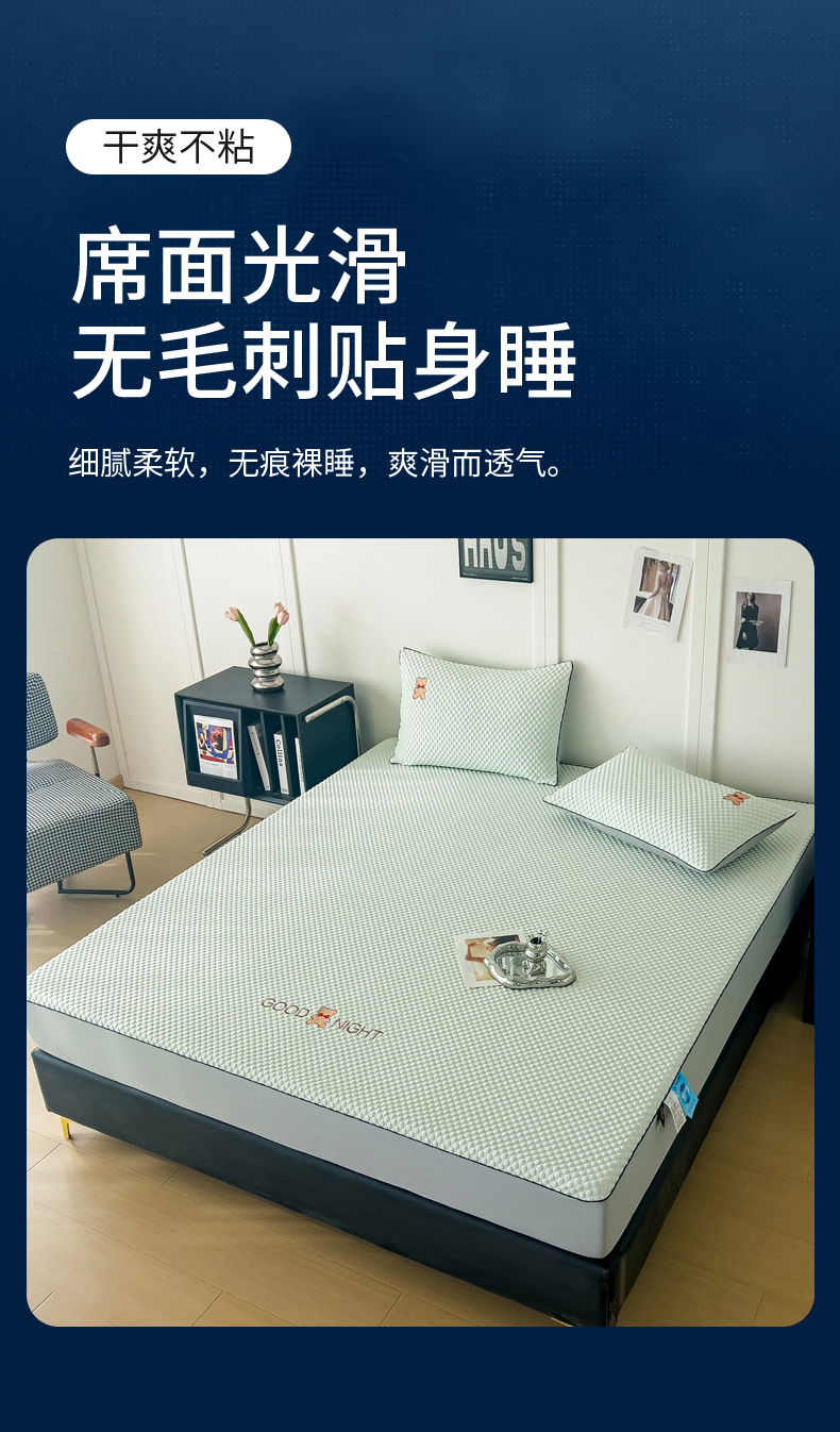当前位置: 91家纺网 > 商品网购 > 床上用品 > 凉席 > 其他凉席 > 阿牛席业2025新款凉感软席系列-E-凉感嵌边豆豆床笠 晚安-绿(嵌边床笠)