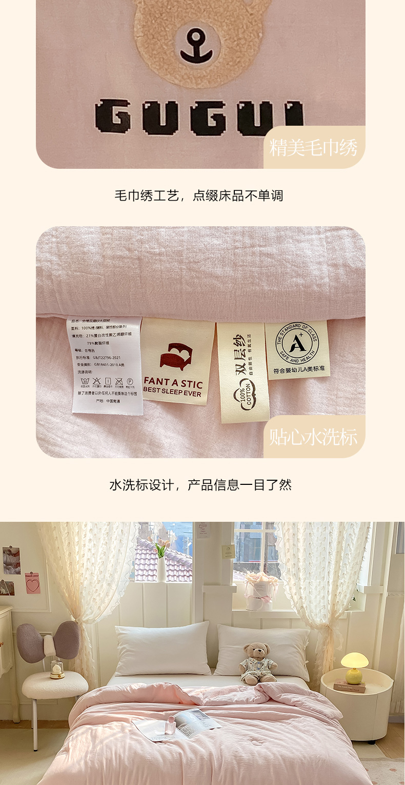 • 91家纺网 家纺一手货源 找家纺 (总)风蝴蝶 2025新款水洗全棉双层纱夏被空调被大豆被夏凉被纯色春秋被子被芯,小熊-米白色,小熊-浅粉色,小熊-浅灰色,小熊-浅绿色