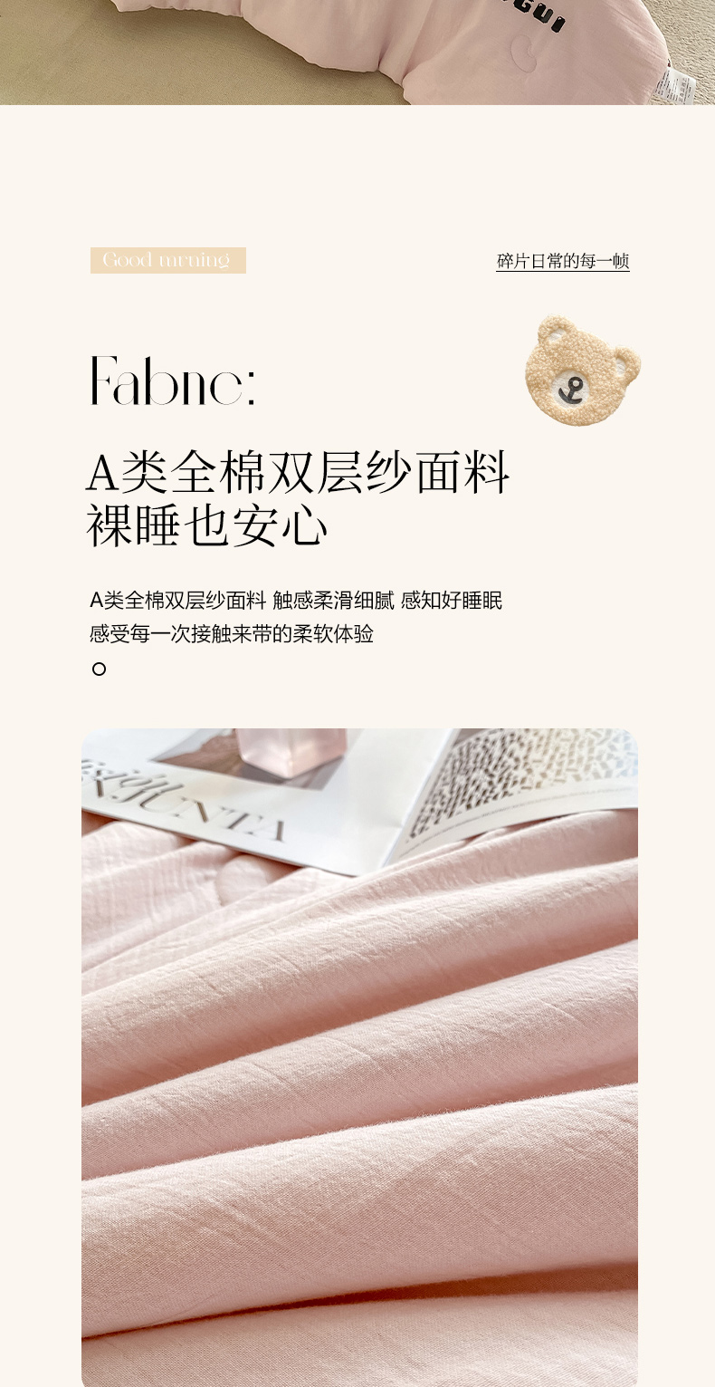 • 91家纺网 家纺一手货源 找家纺 风蝴蝶 2025新款水洗全棉双层纱夏被空调被大豆被夏凉被纯色春秋被子被芯 小熊-浅粉色