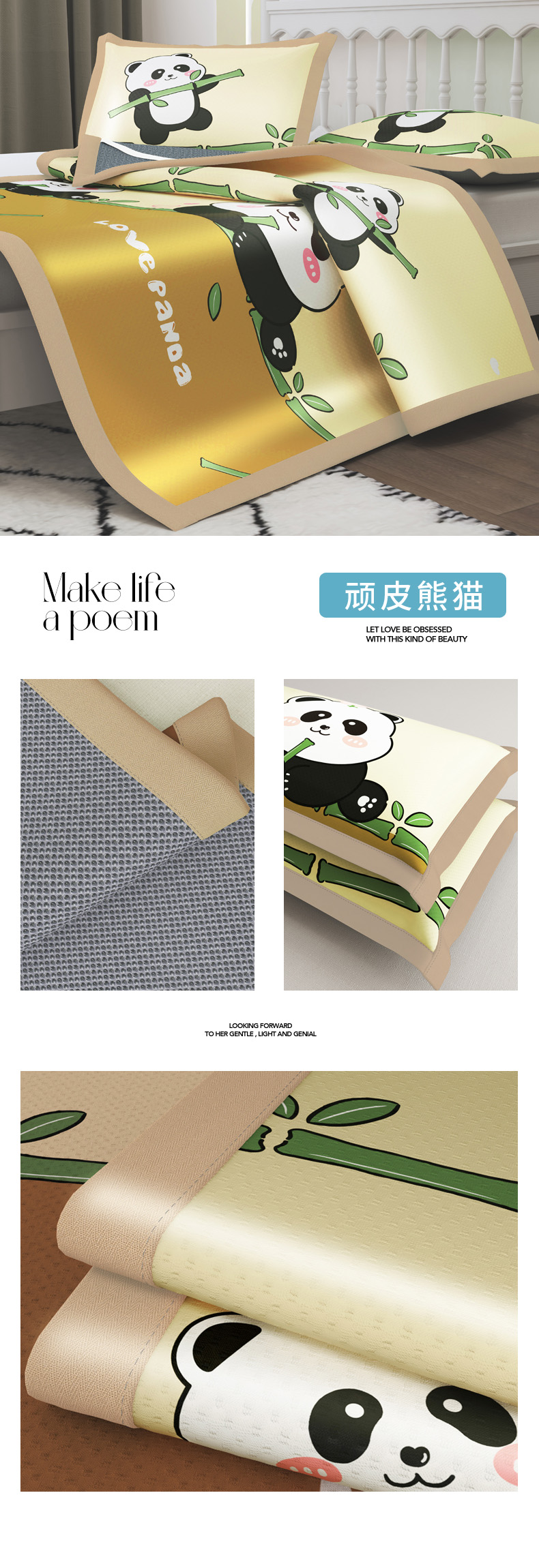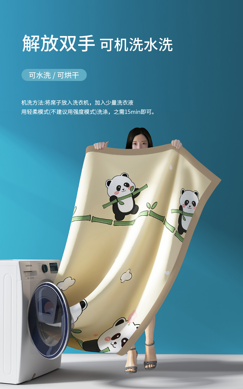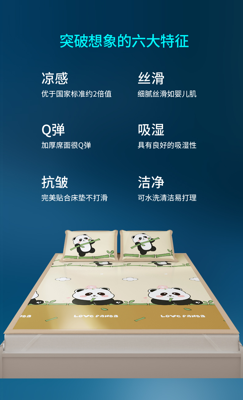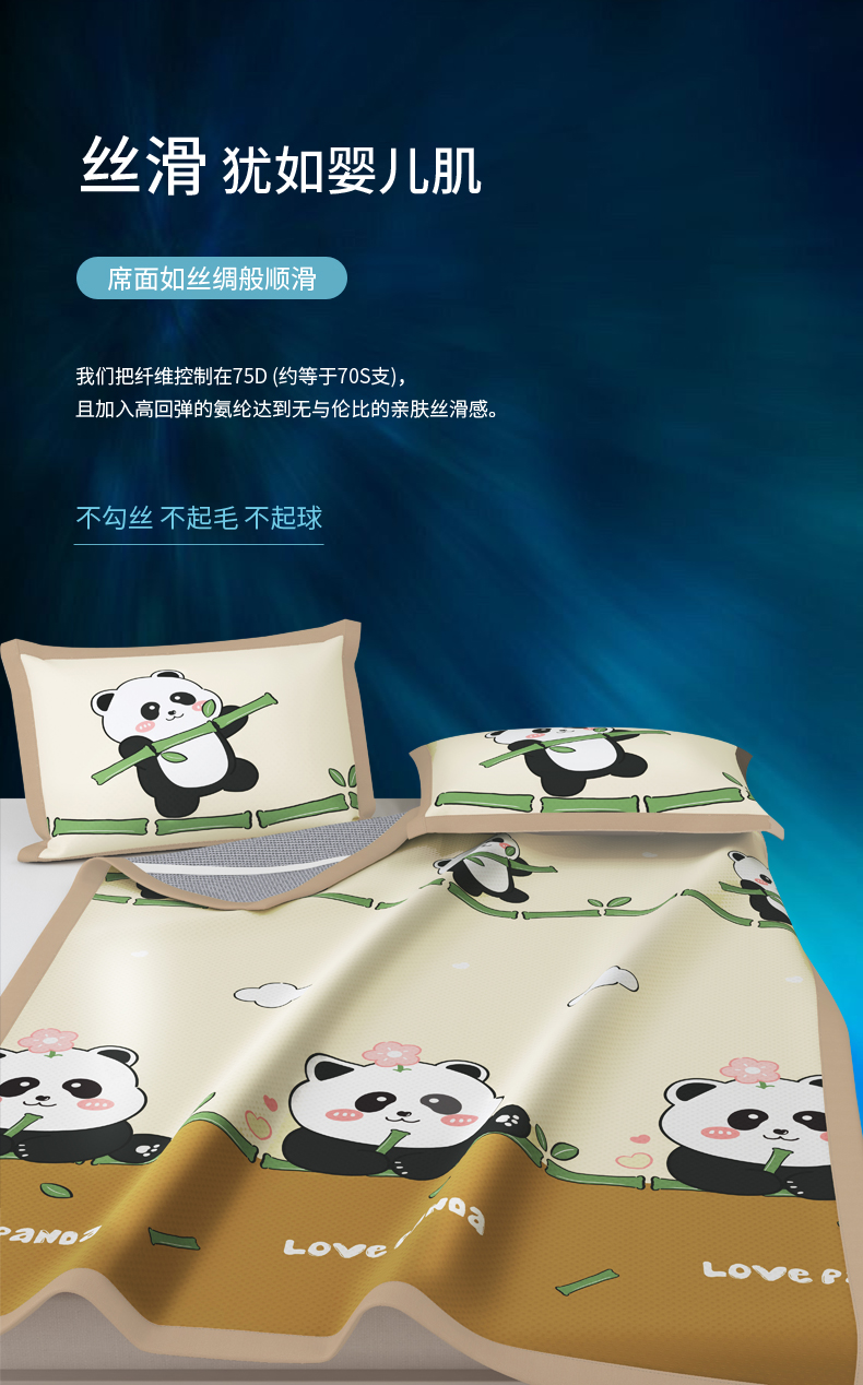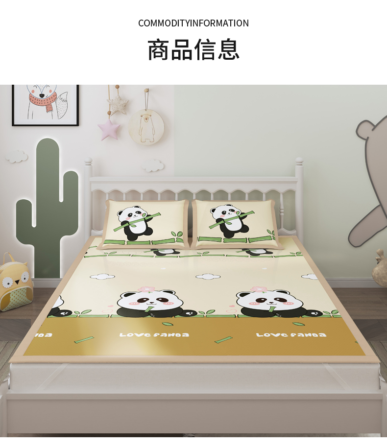 商品名称:阿牛席业 2025新款凉感印花软席系列二条席款 顽皮熊猫