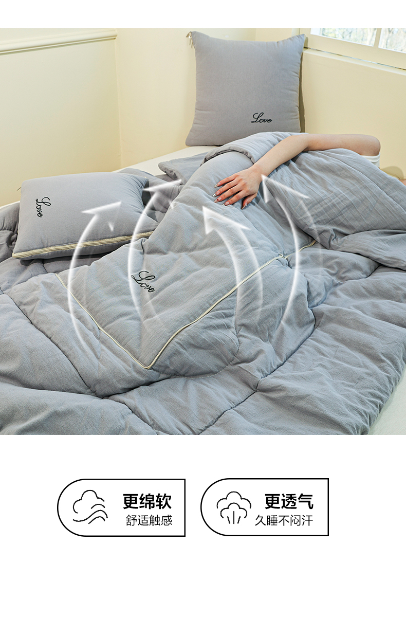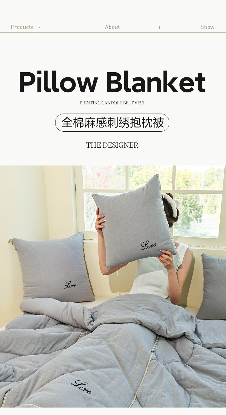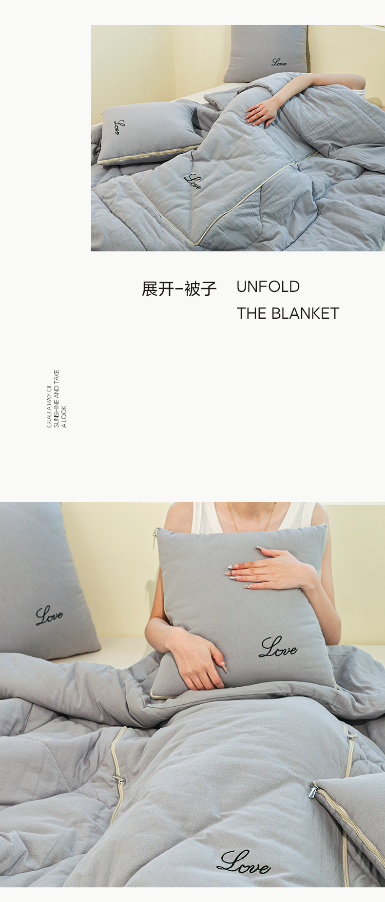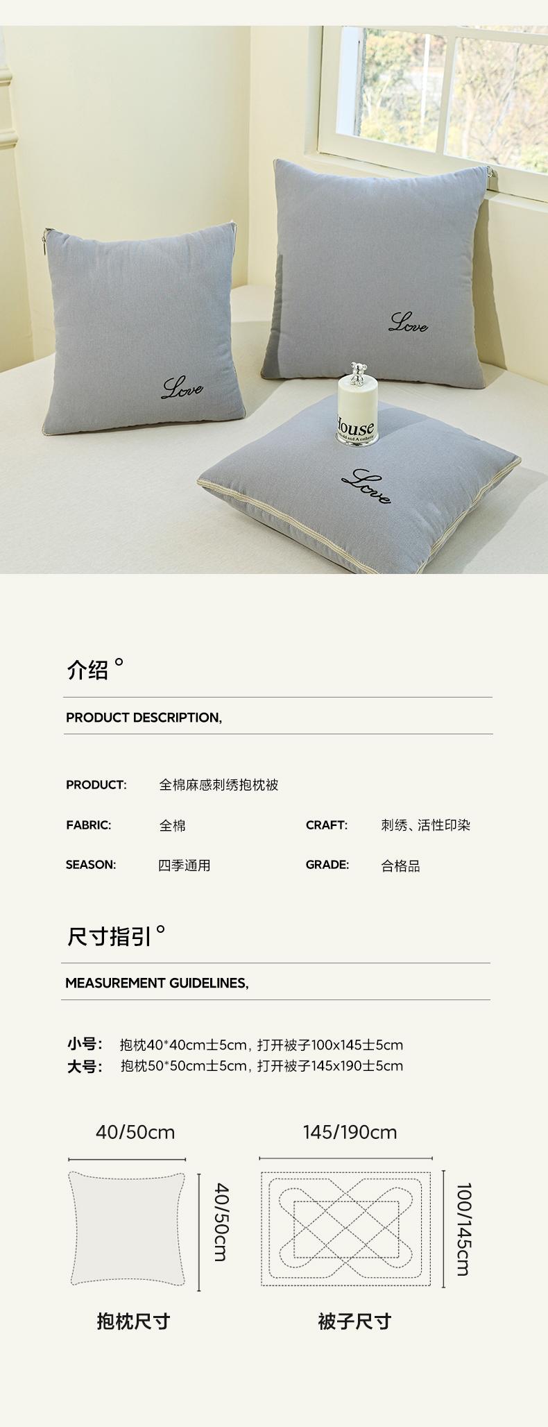 商品名称:番茄+ 2025新款全棉麻感纯色抱枕被 灰色
