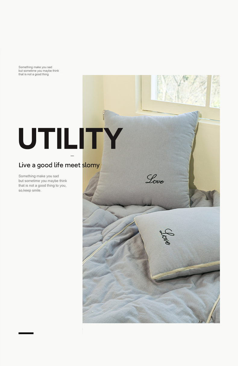 番茄+ 2025新款全棉麻感纯色抱枕被 灰色