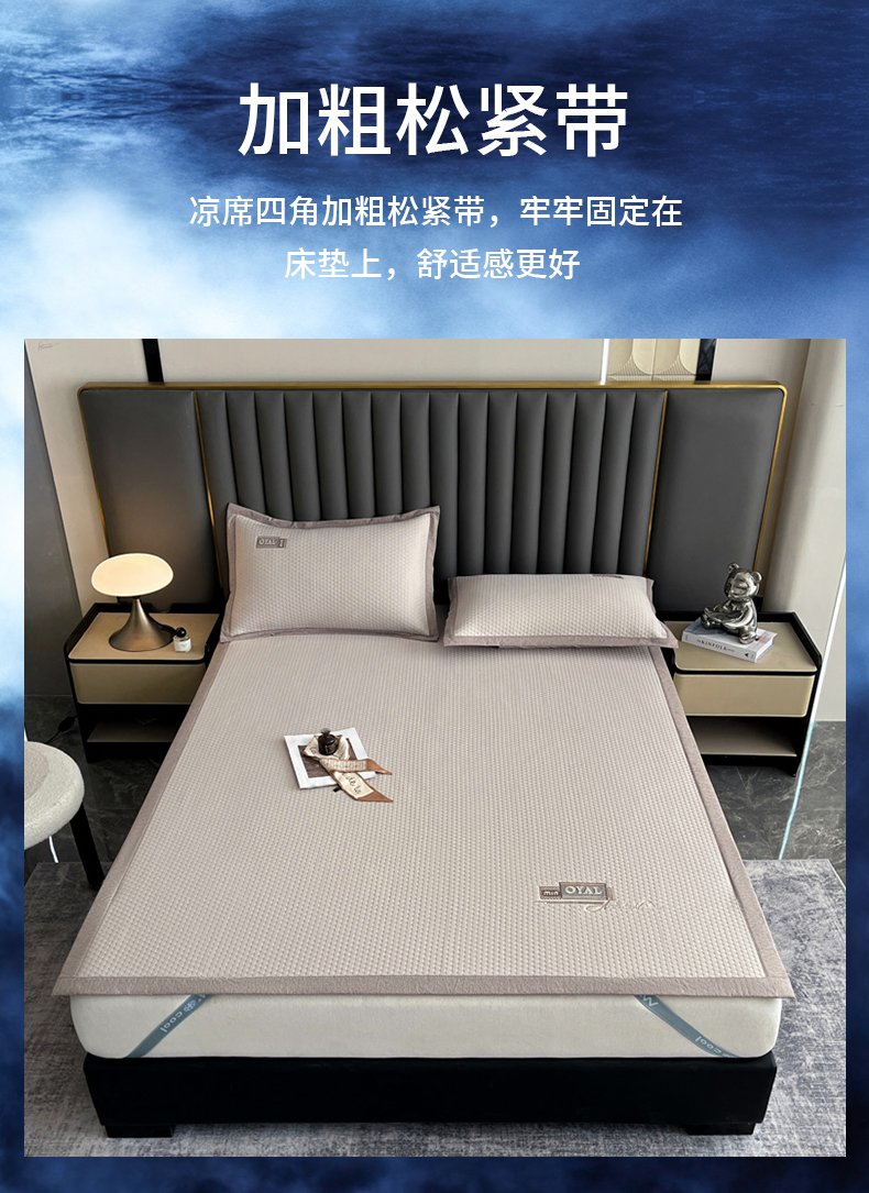(总)阿牛席业2025新款冰藤凉席系列冰藤清爽床笠席,清爽-蓝【床笠款】,清爽-咖【床笠款】