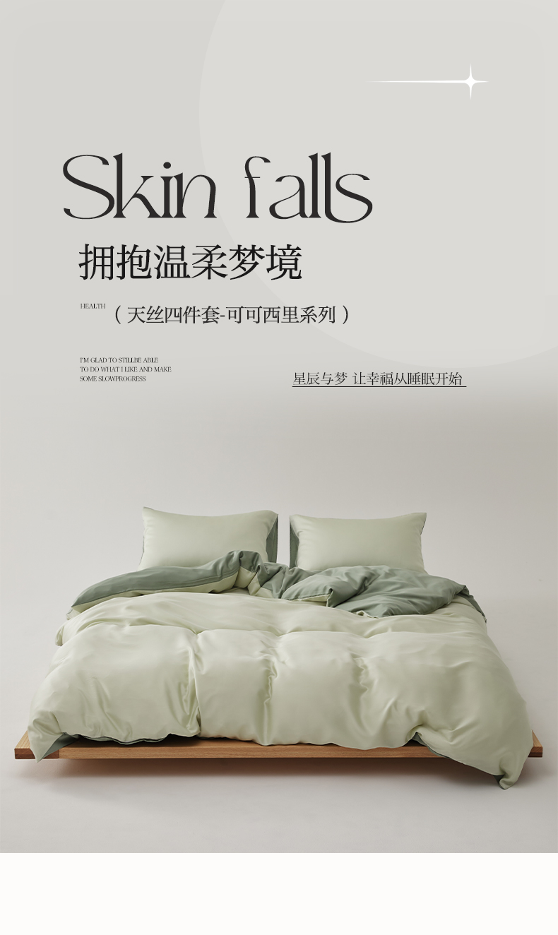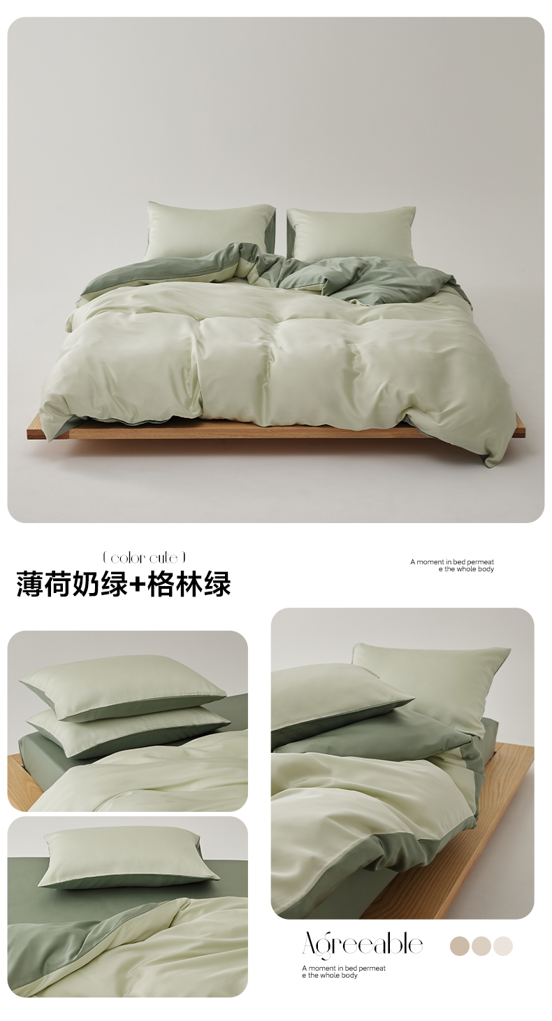 当前位置: 91家纺网 > 商品网购 > 床品套件 > 四件套 > 莱赛尔四件套 > EH2025春夏新款60s天丝四件套-可可西里系列 薄荷奶绿+格林绿