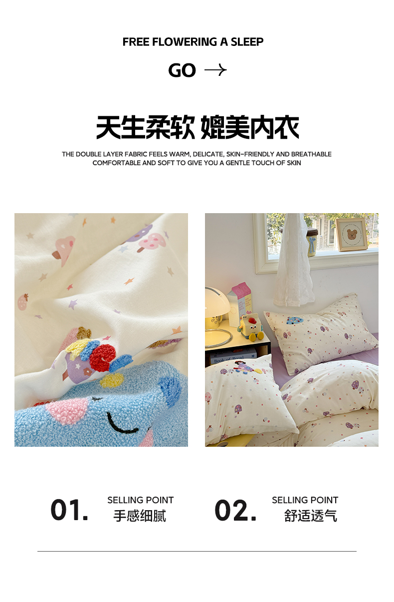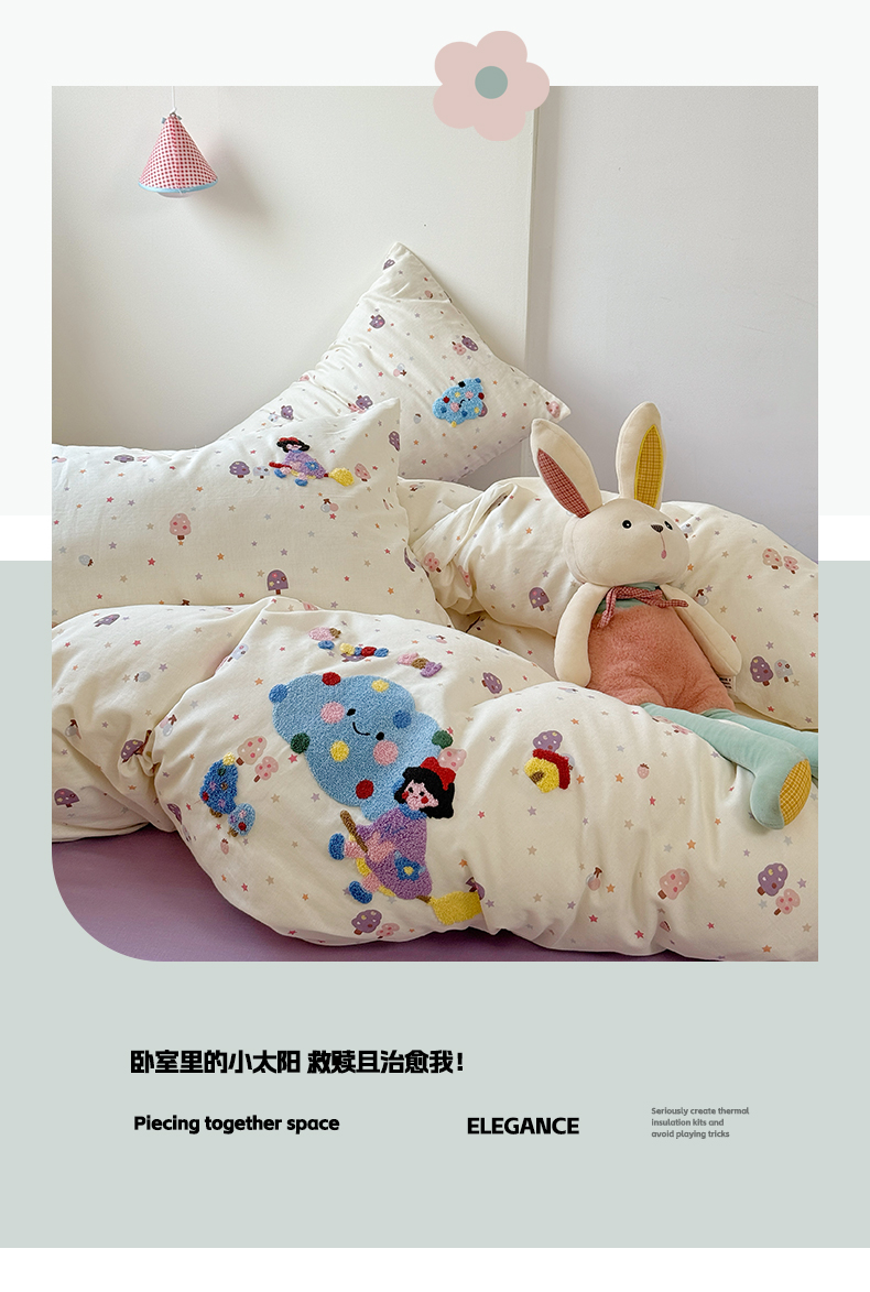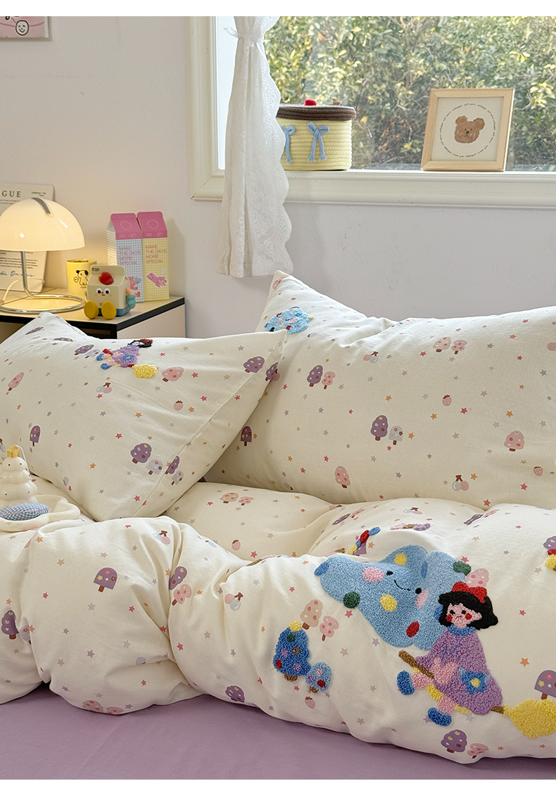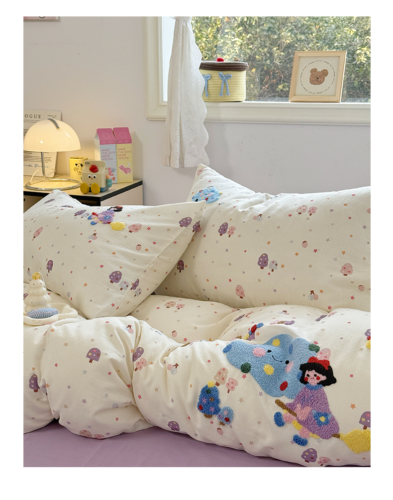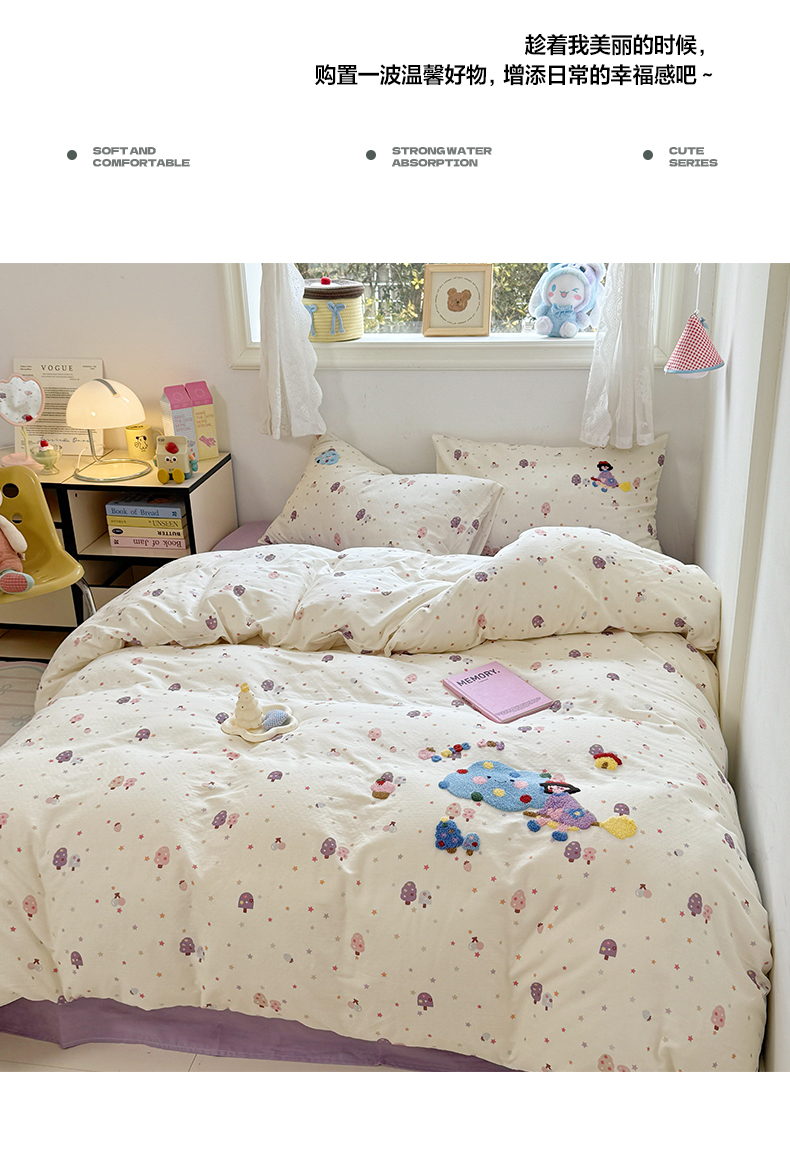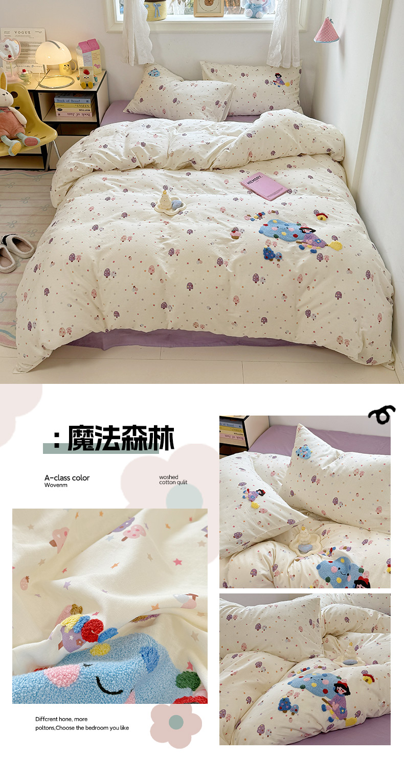 商品名称:澳萝拉2025春夏新款全棉纯棉双层纱毛巾绣四件套 魔法森林