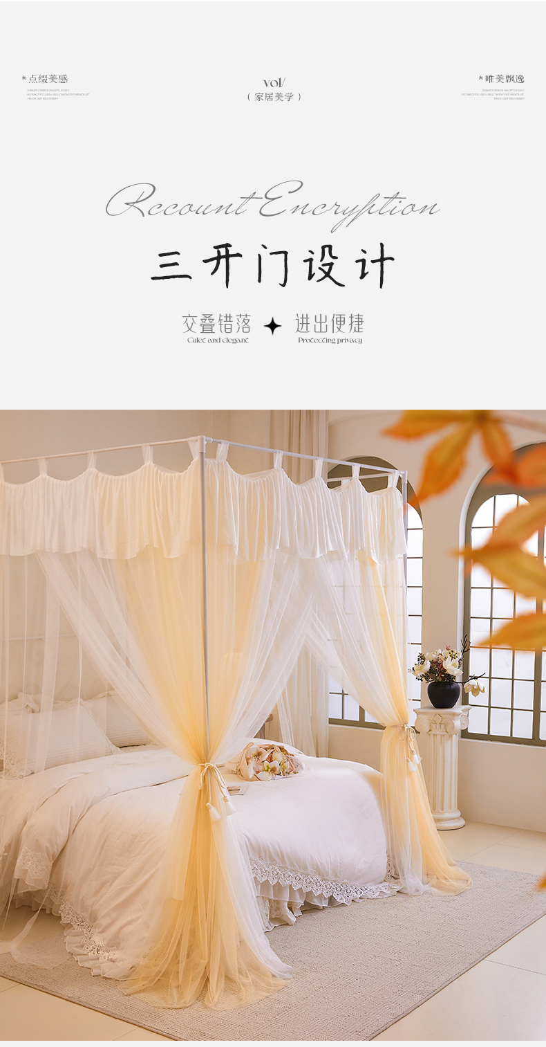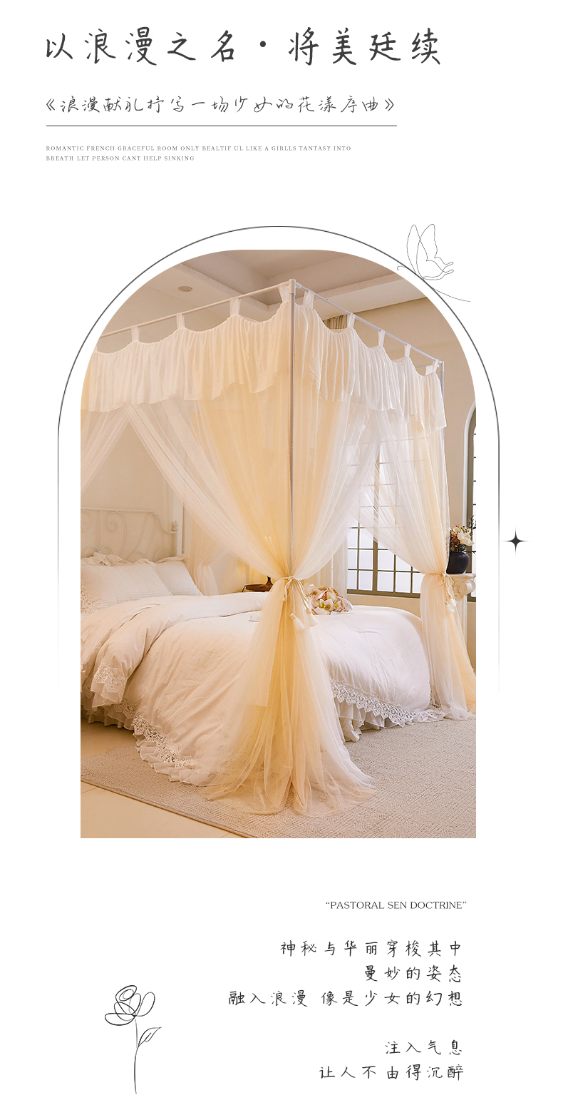 当前位置: 91家纺网 > 商品网购 > 床上用品 > 蚊帐 > 宫廷蚊帐 > 都市缘蚊帐 2025新款A200双层纱落地宫廷蚊帐烤漆支架 姜黄色